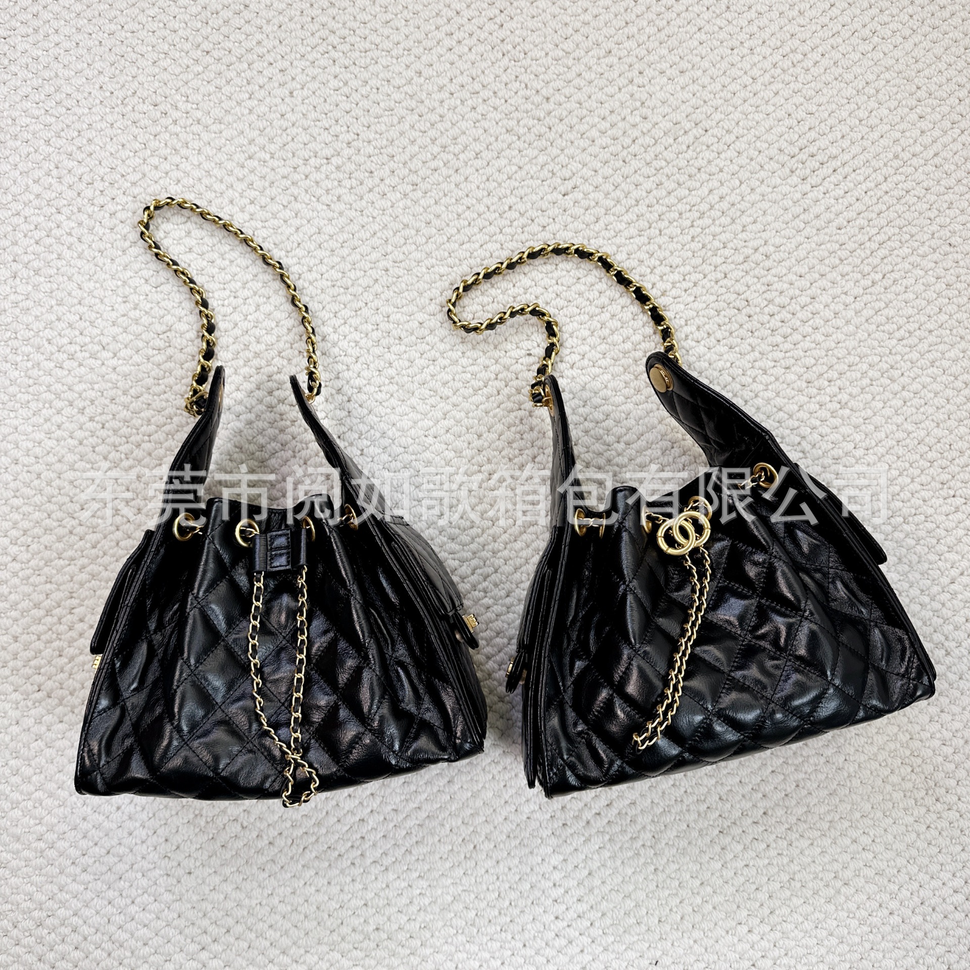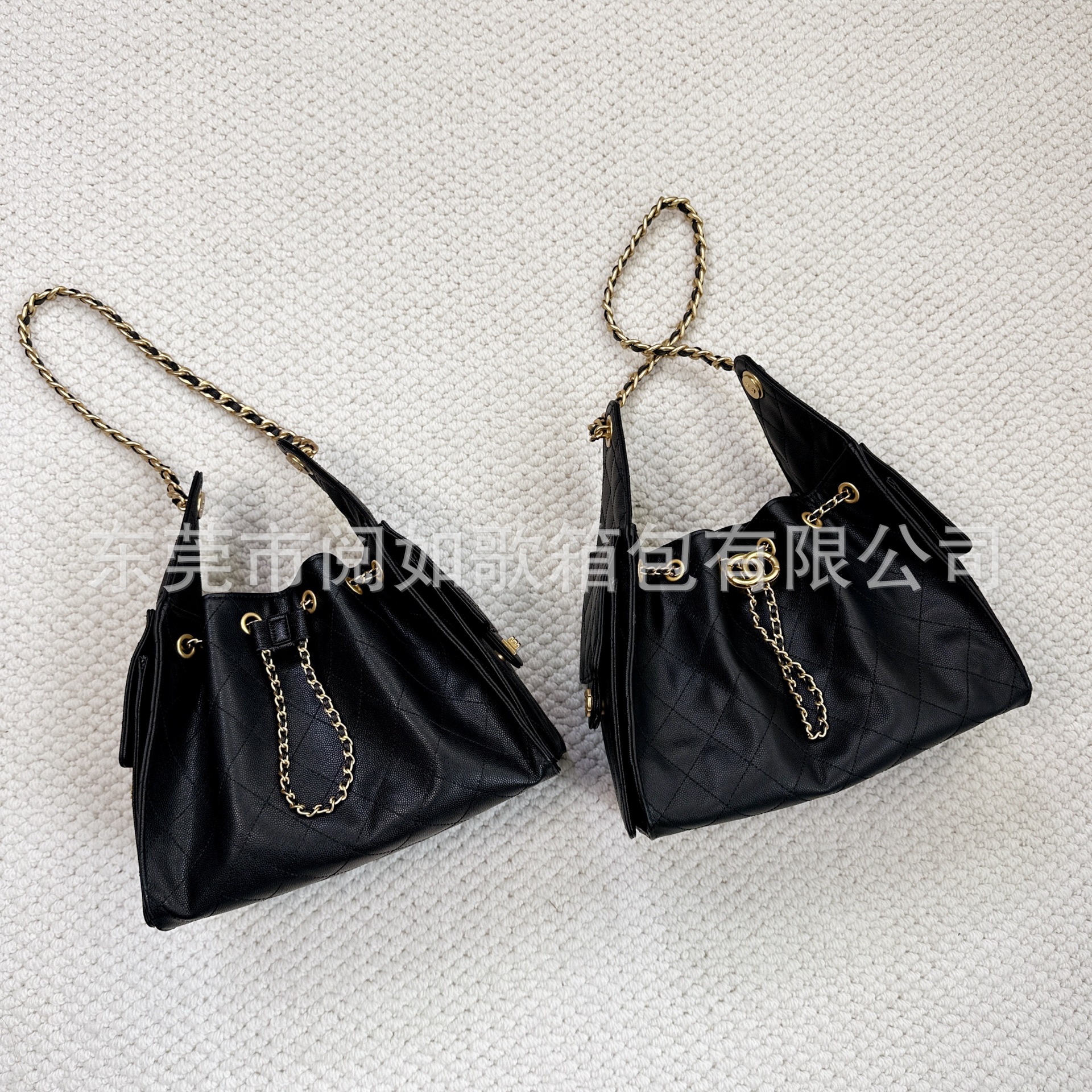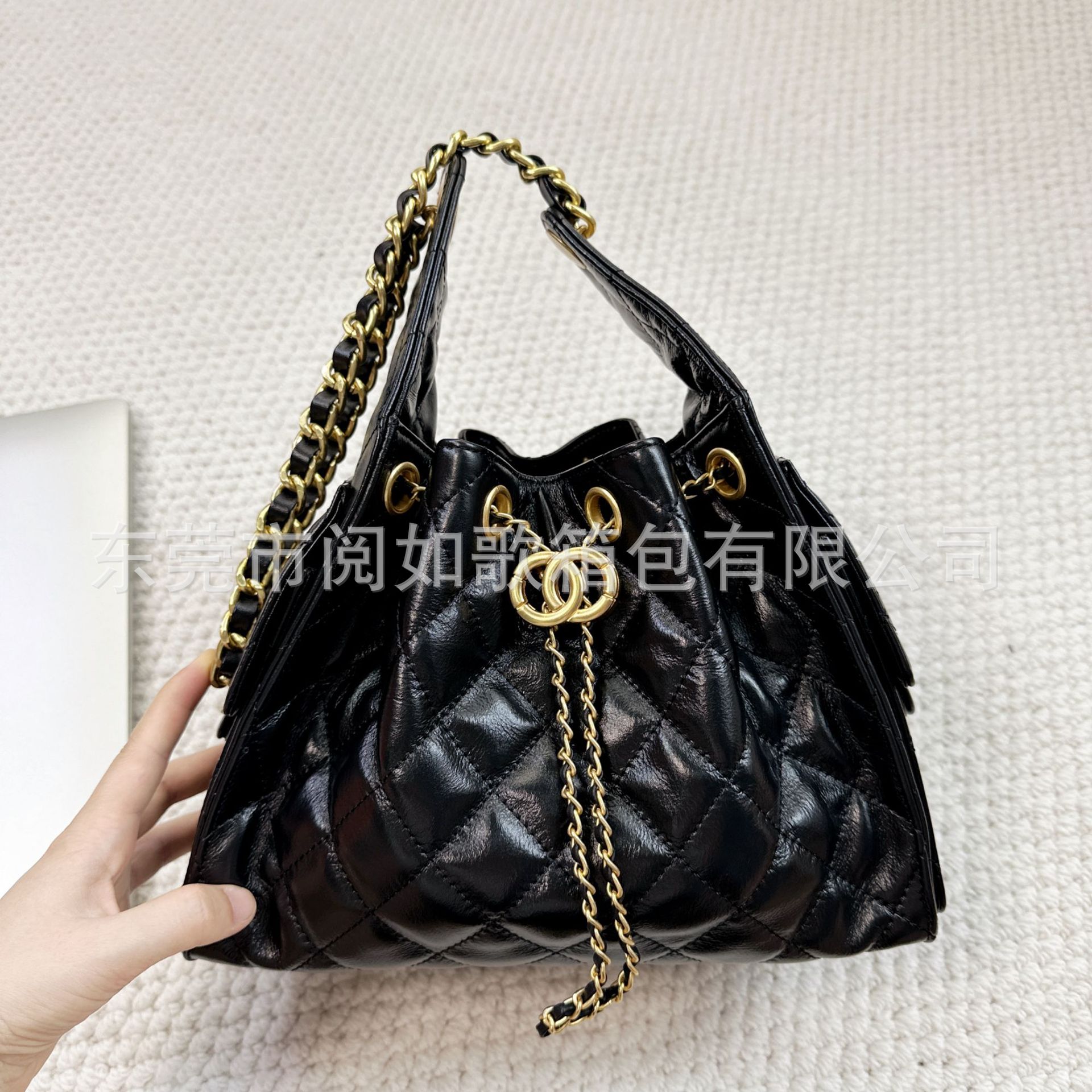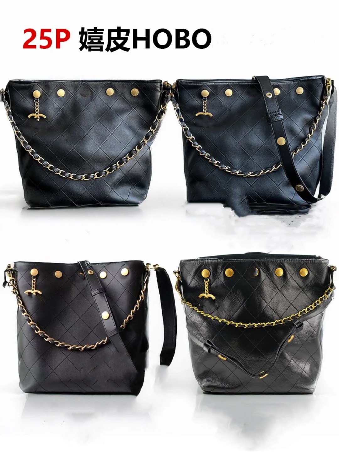 时尚简约小香25C hobo菱格抽绳水桶包复古腋下包单肩手提嬉皮女包