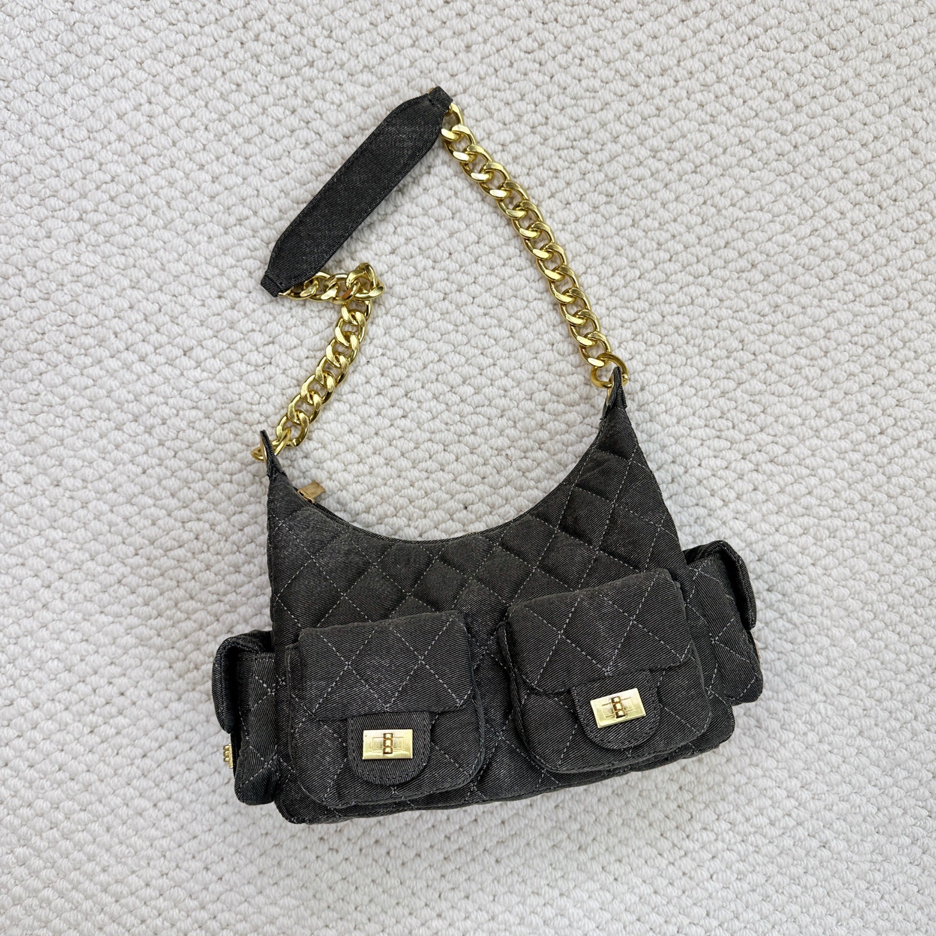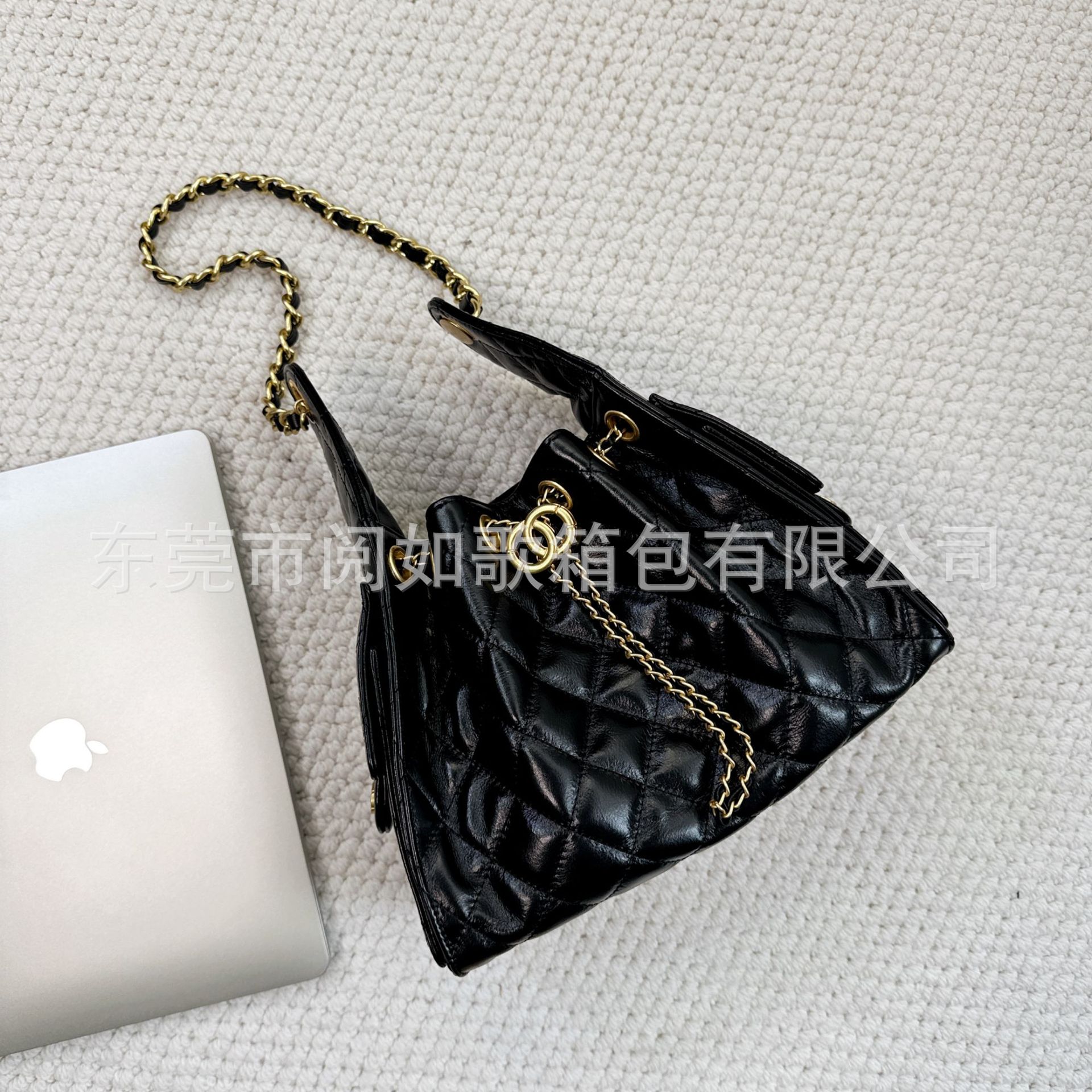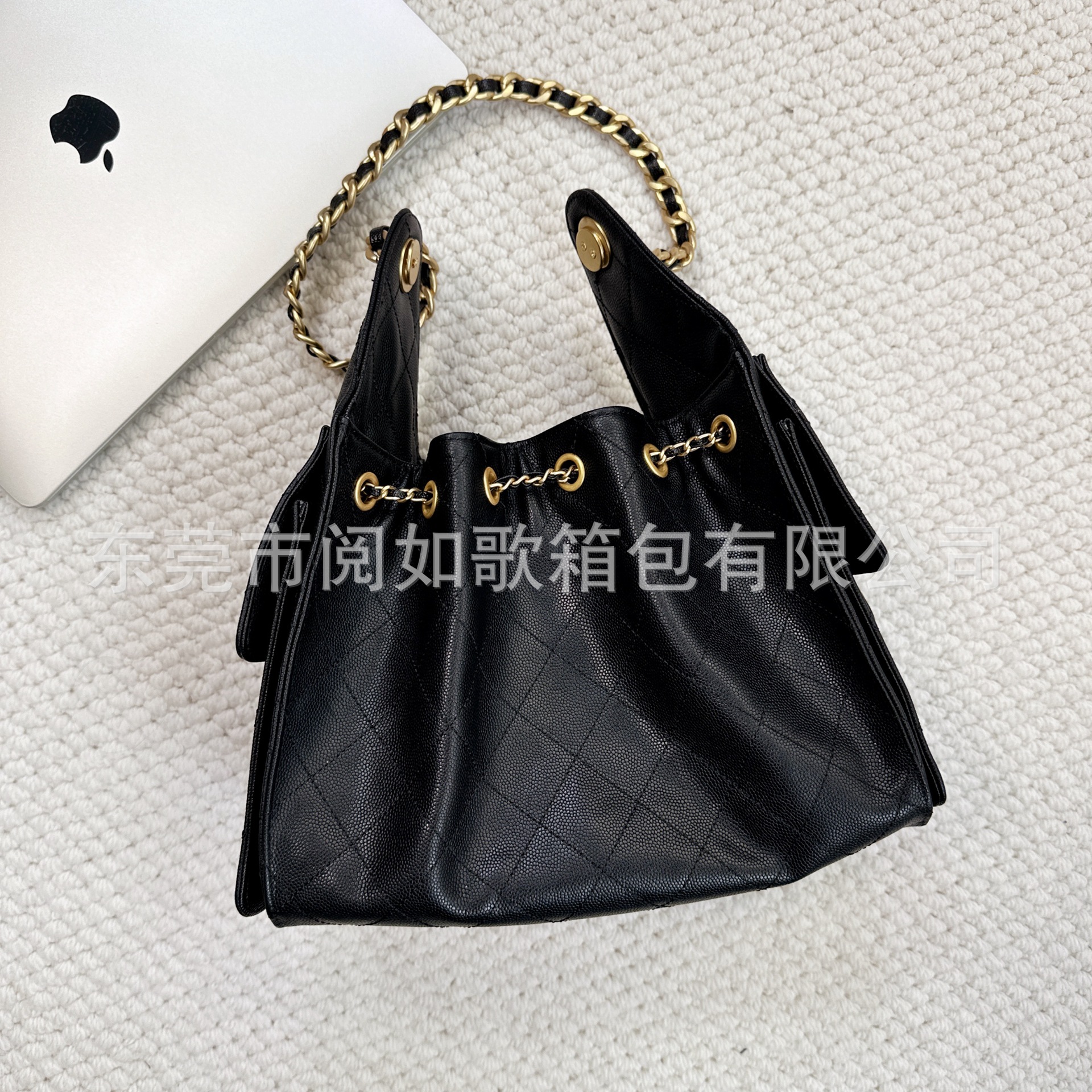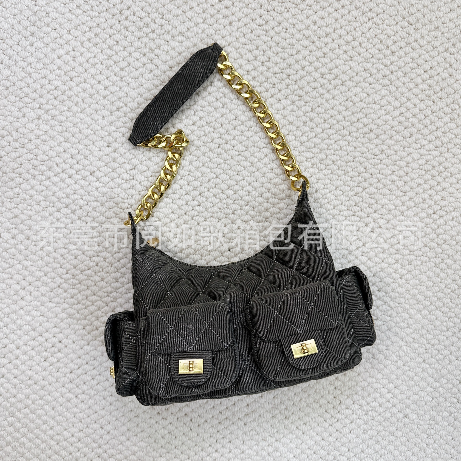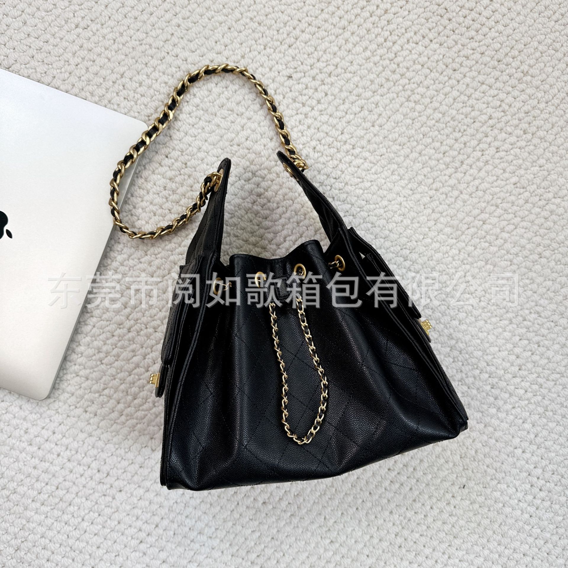 时尚简约小香25C hobo菱格抽绳水桶包复古腋下包单肩手提嬉皮女包