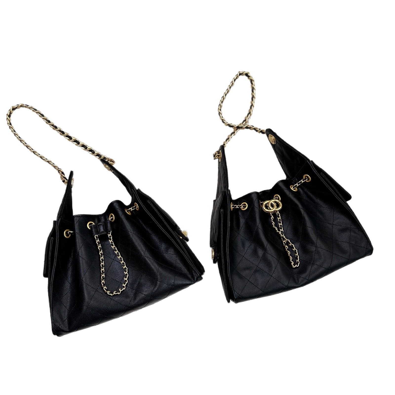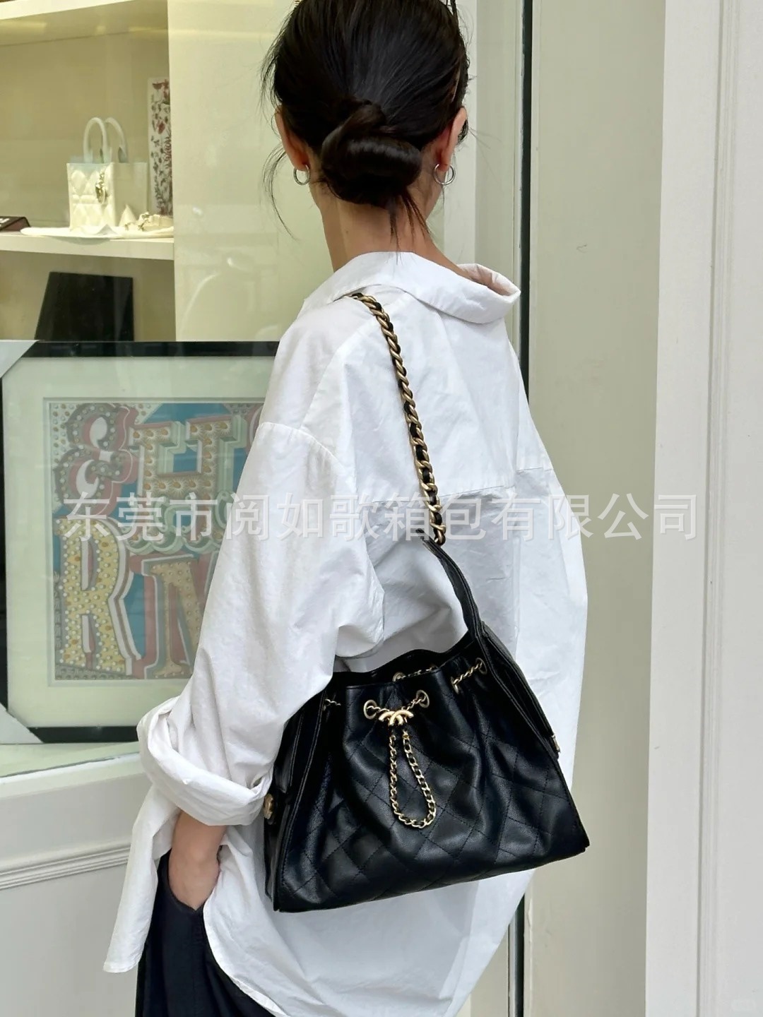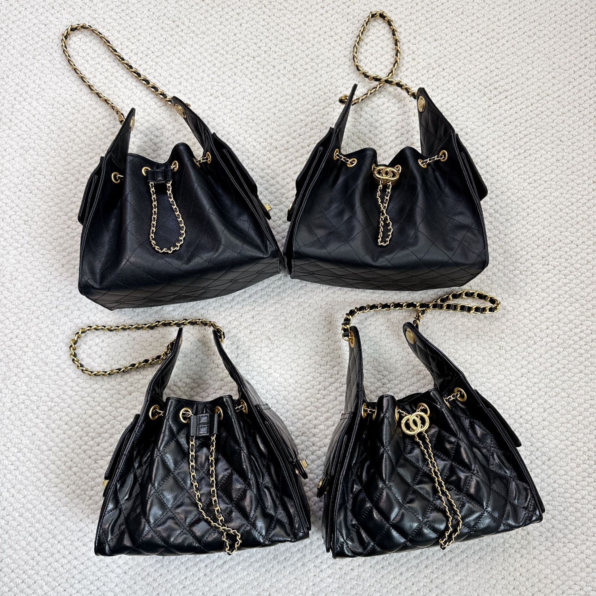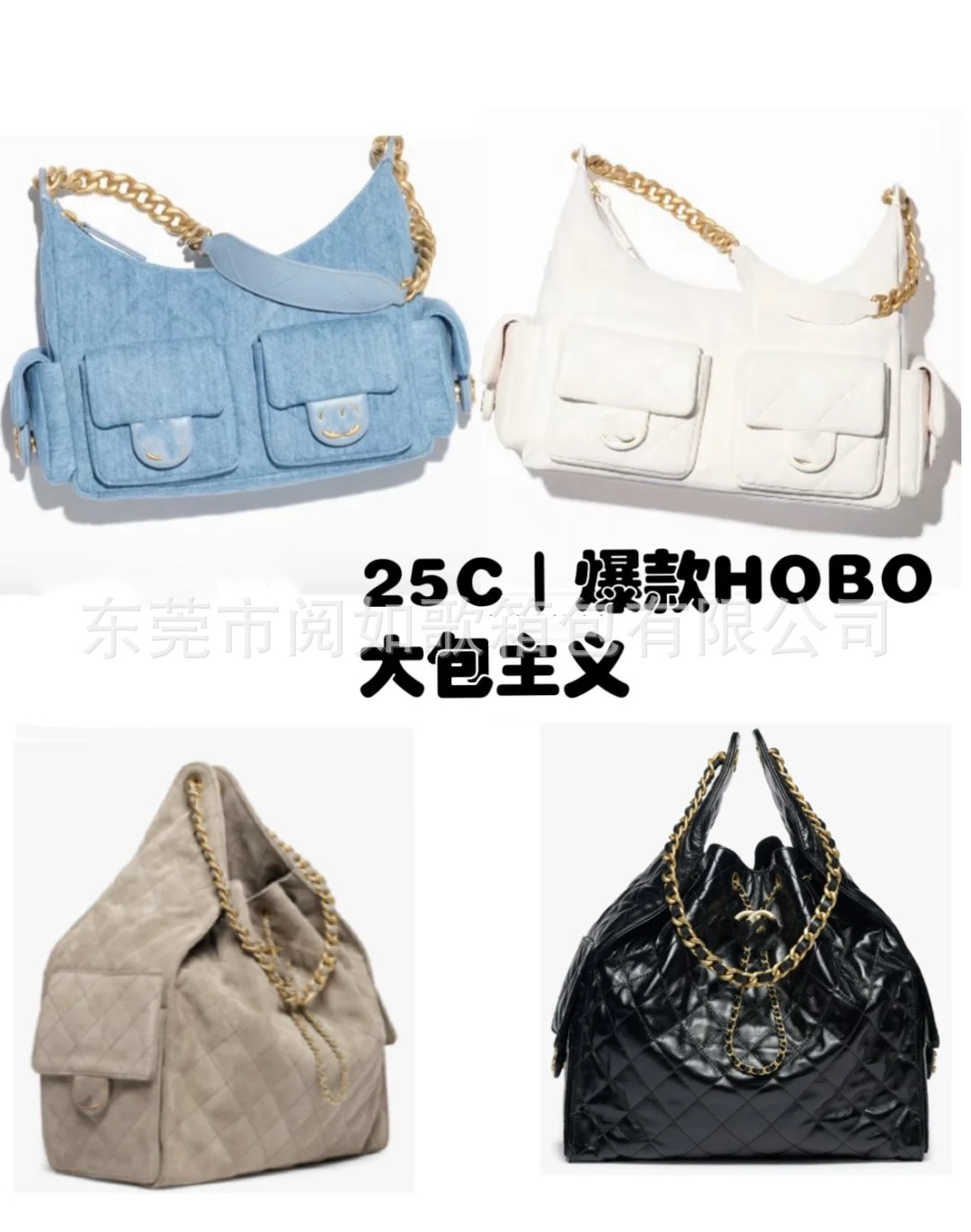 时尚简约小香25C hobo菱格抽绳水桶包复古腋下包单肩手提嬉皮女包