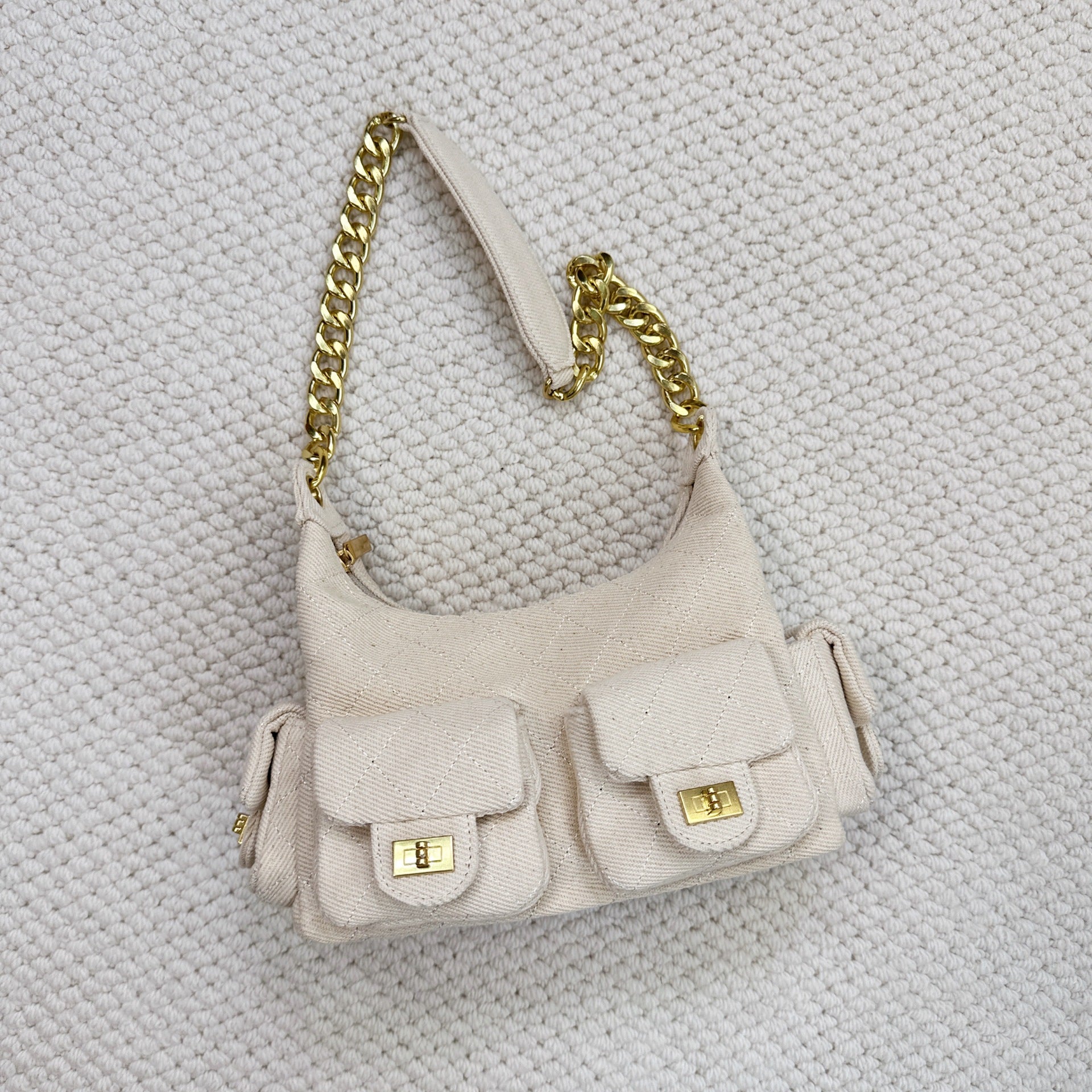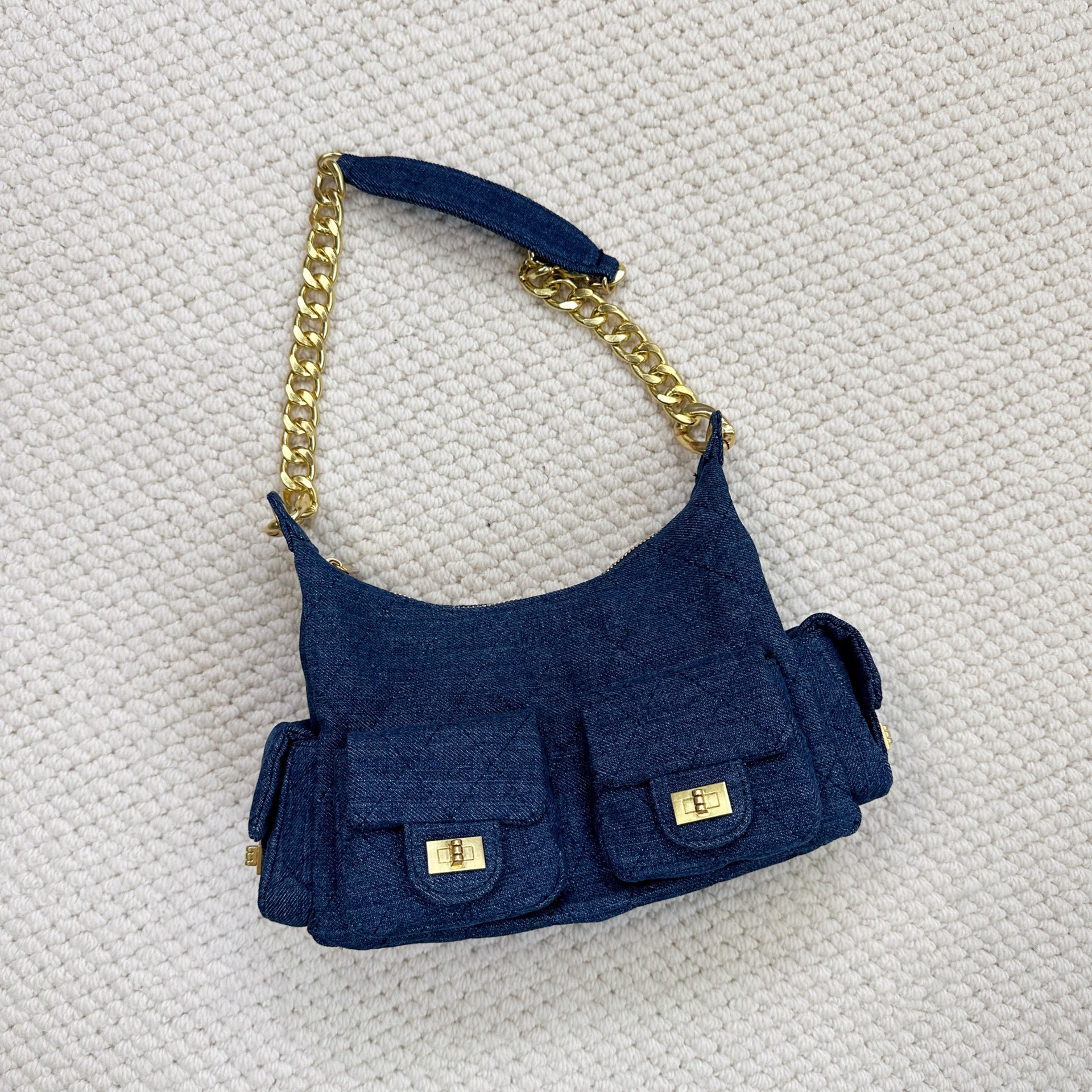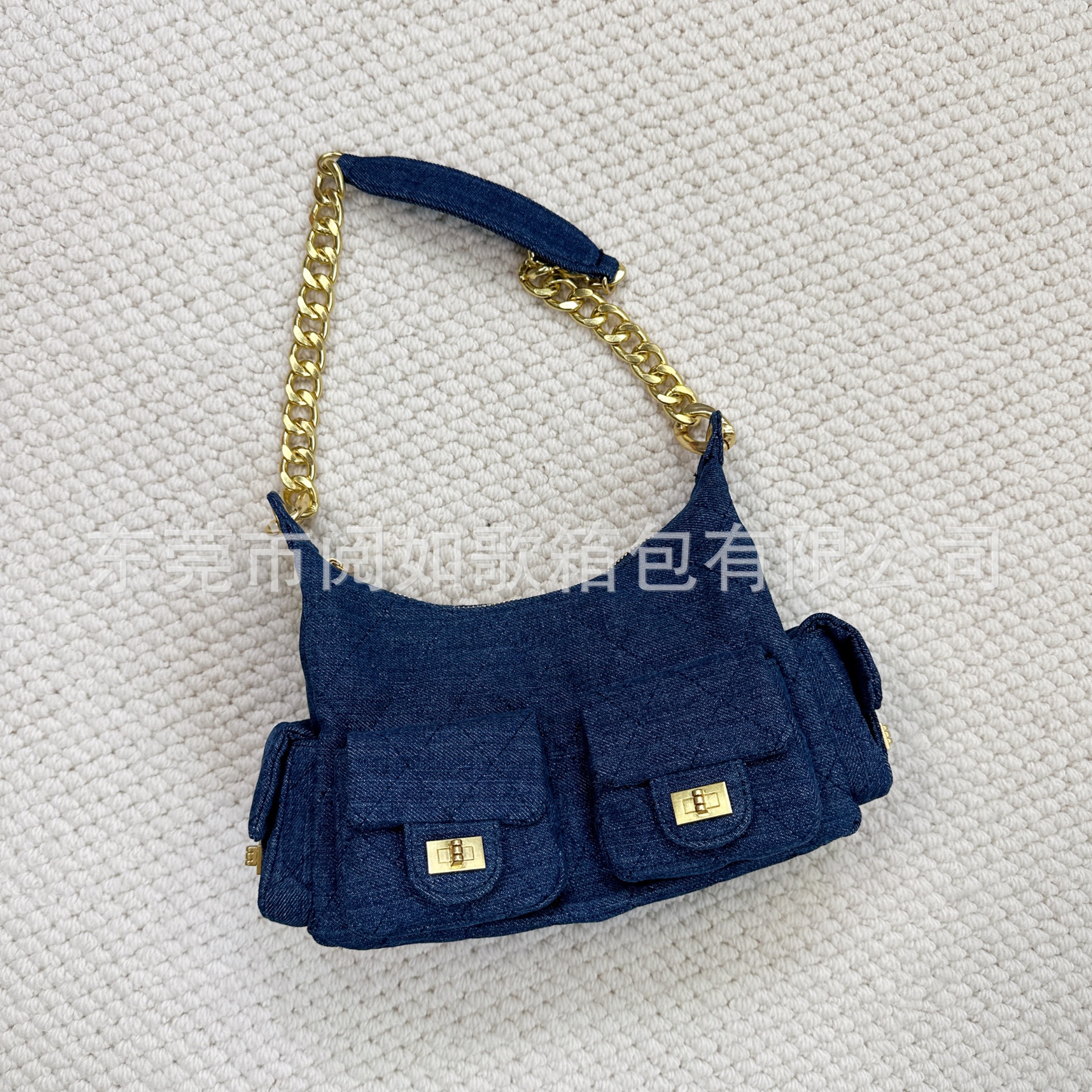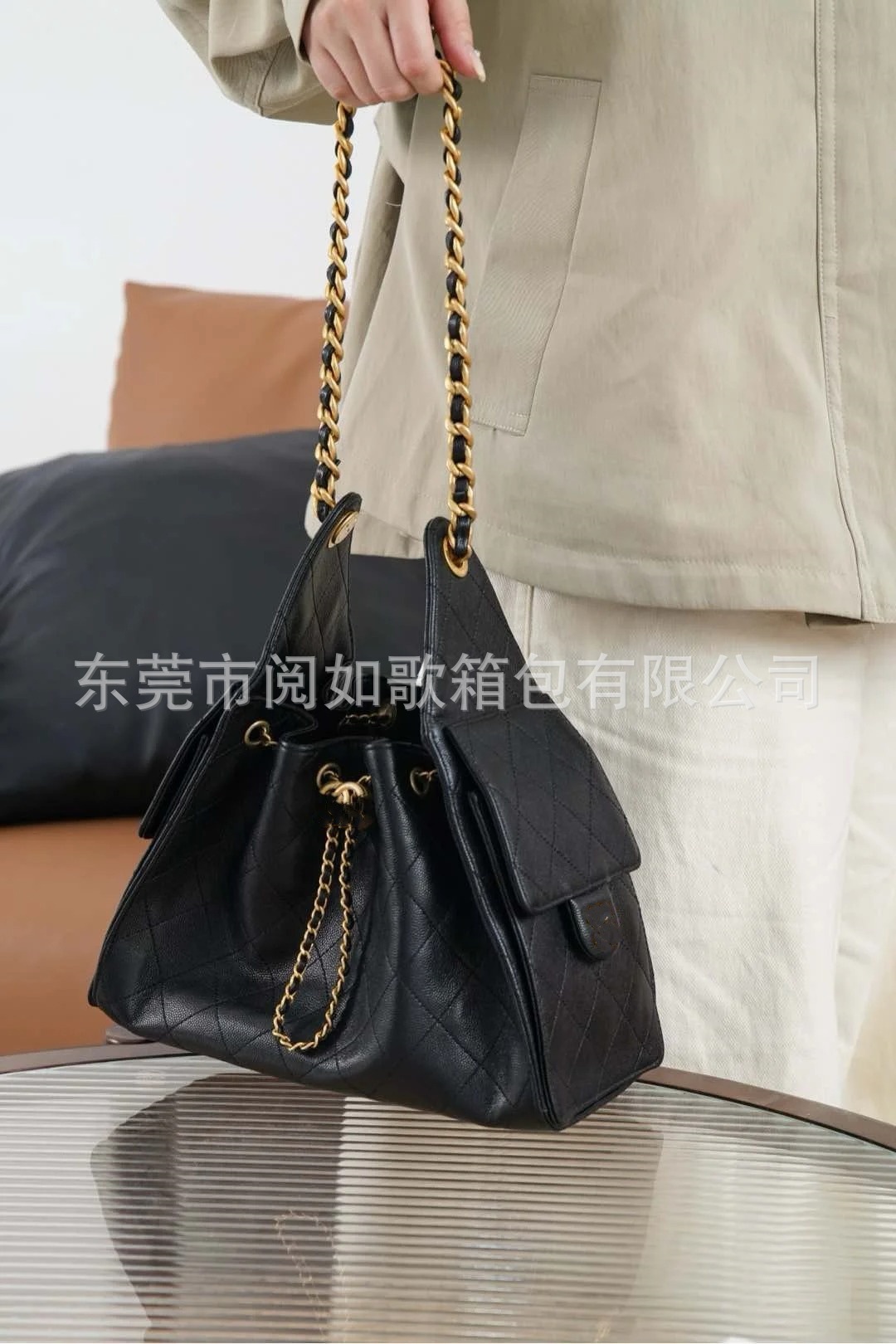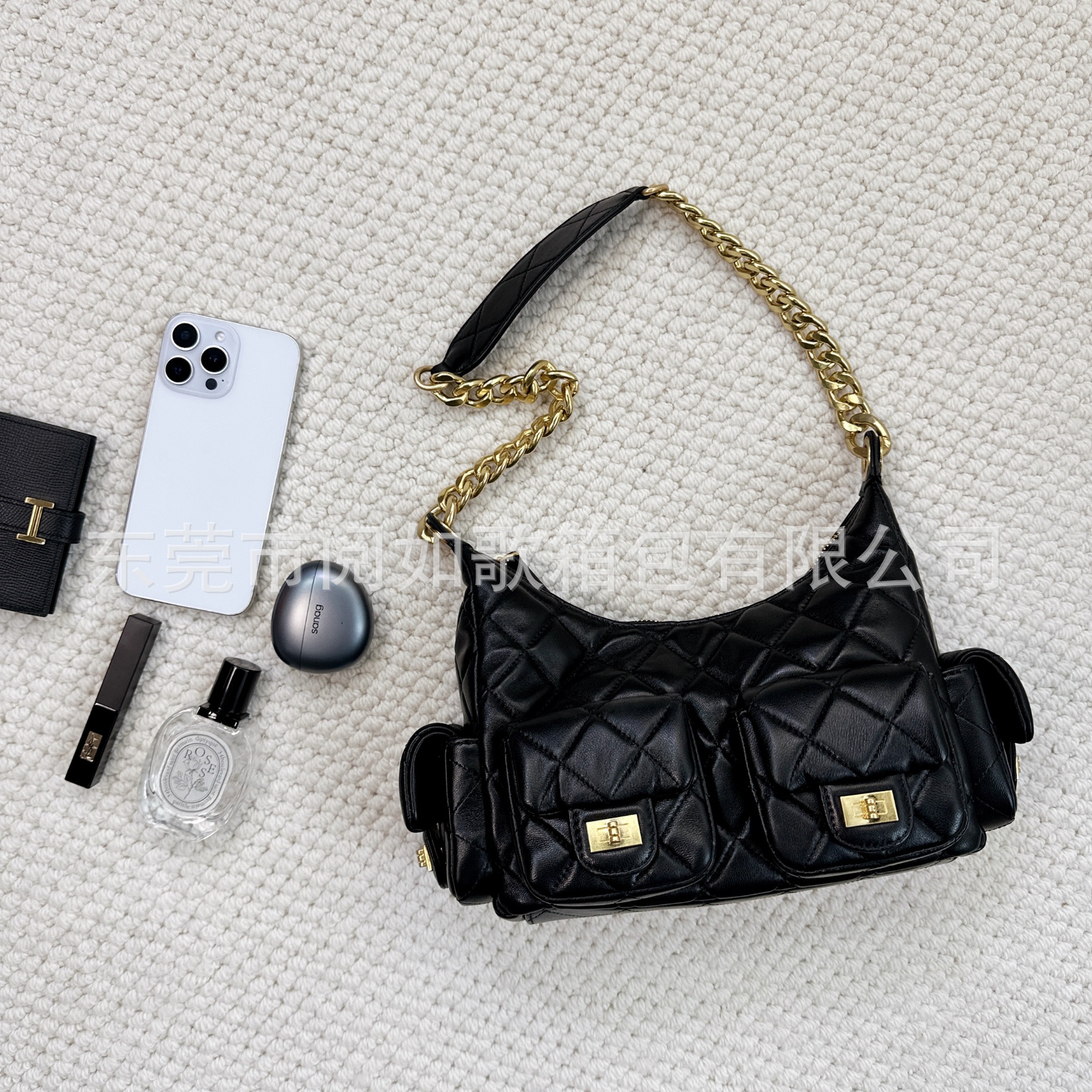 时尚简约小香25C hobo菱格抽绳水桶包复古腋下包单肩手提嬉皮女包