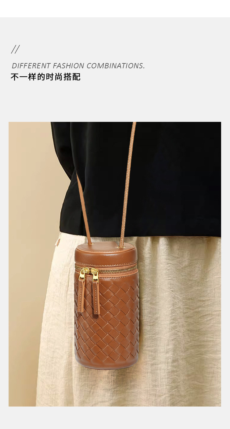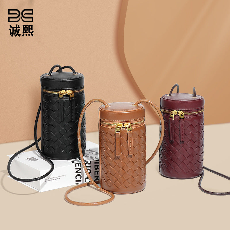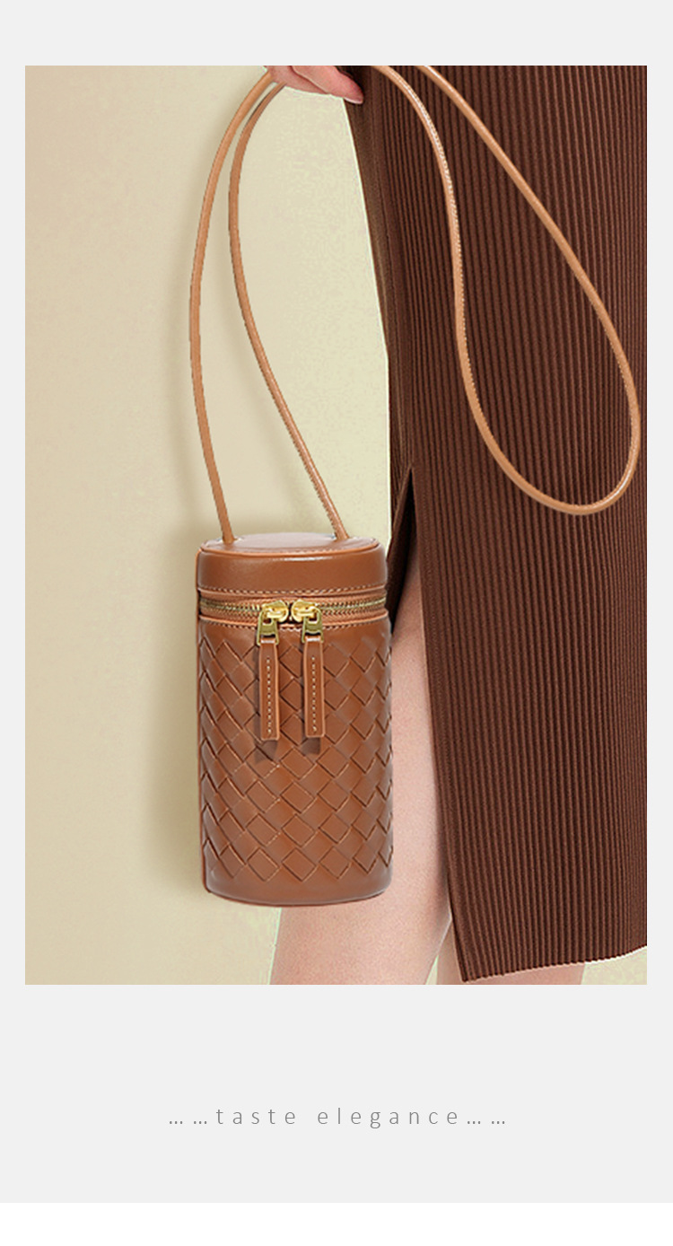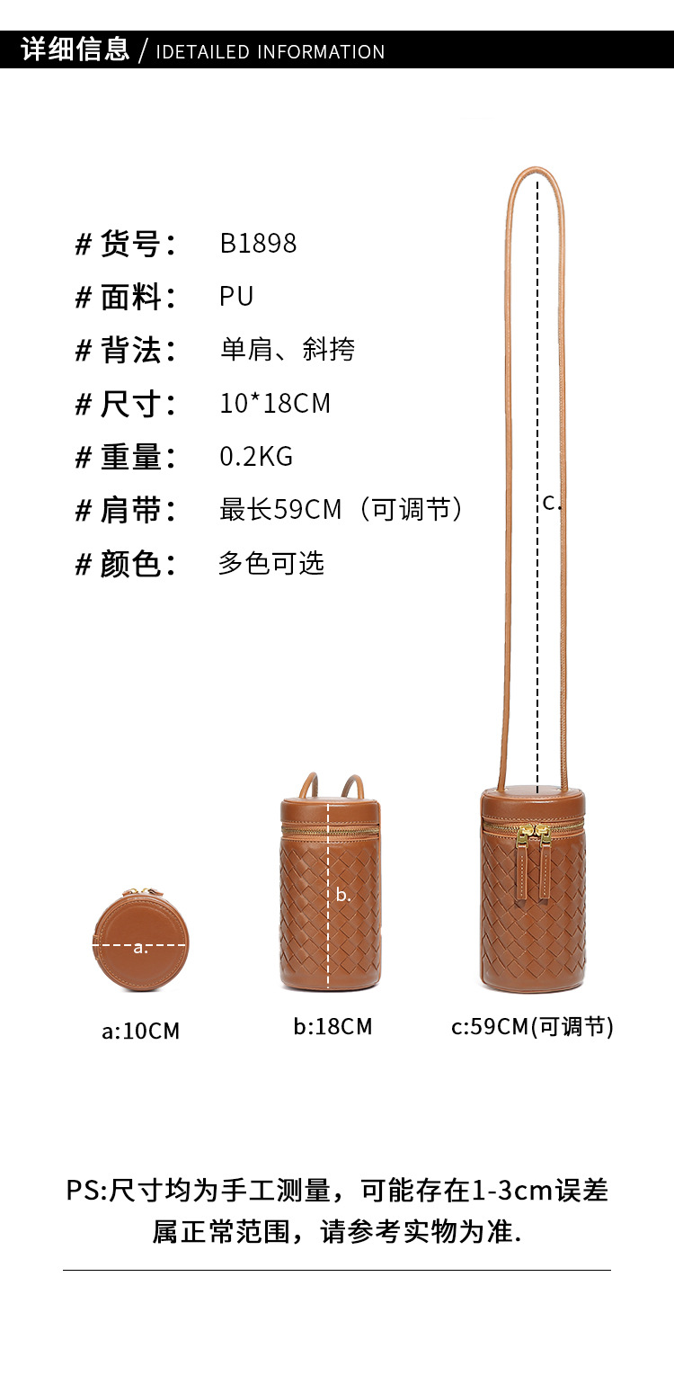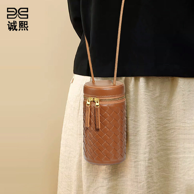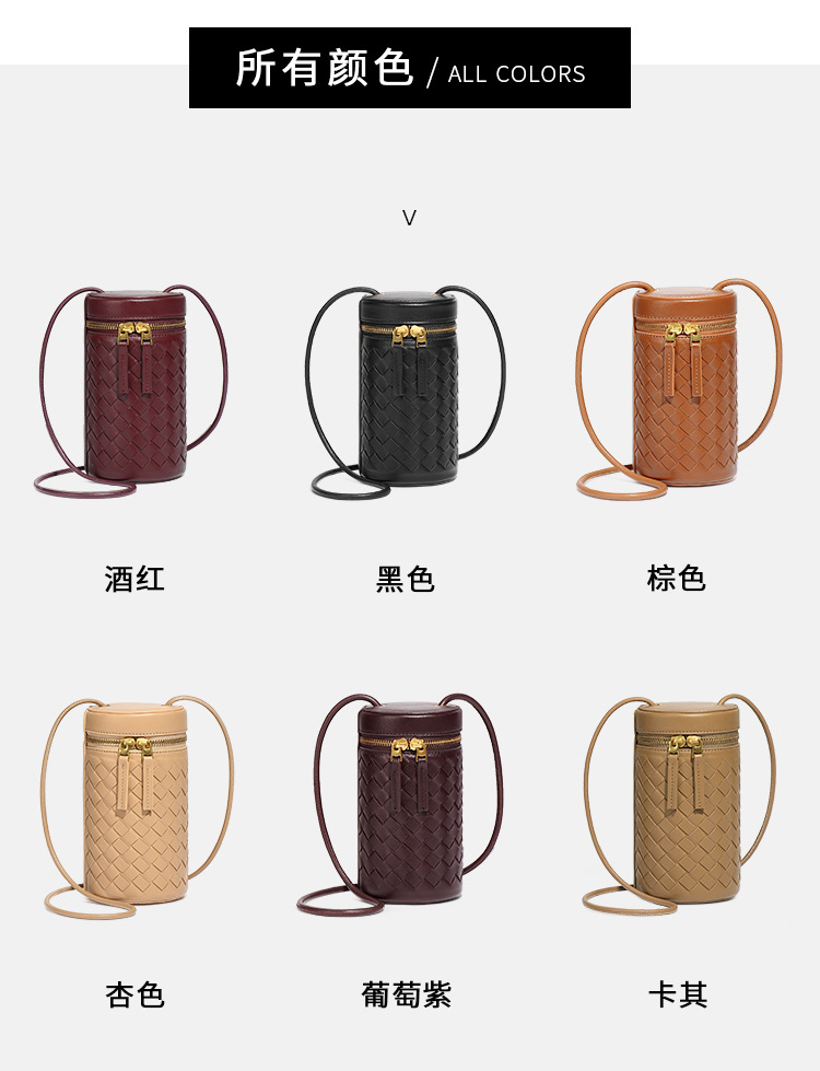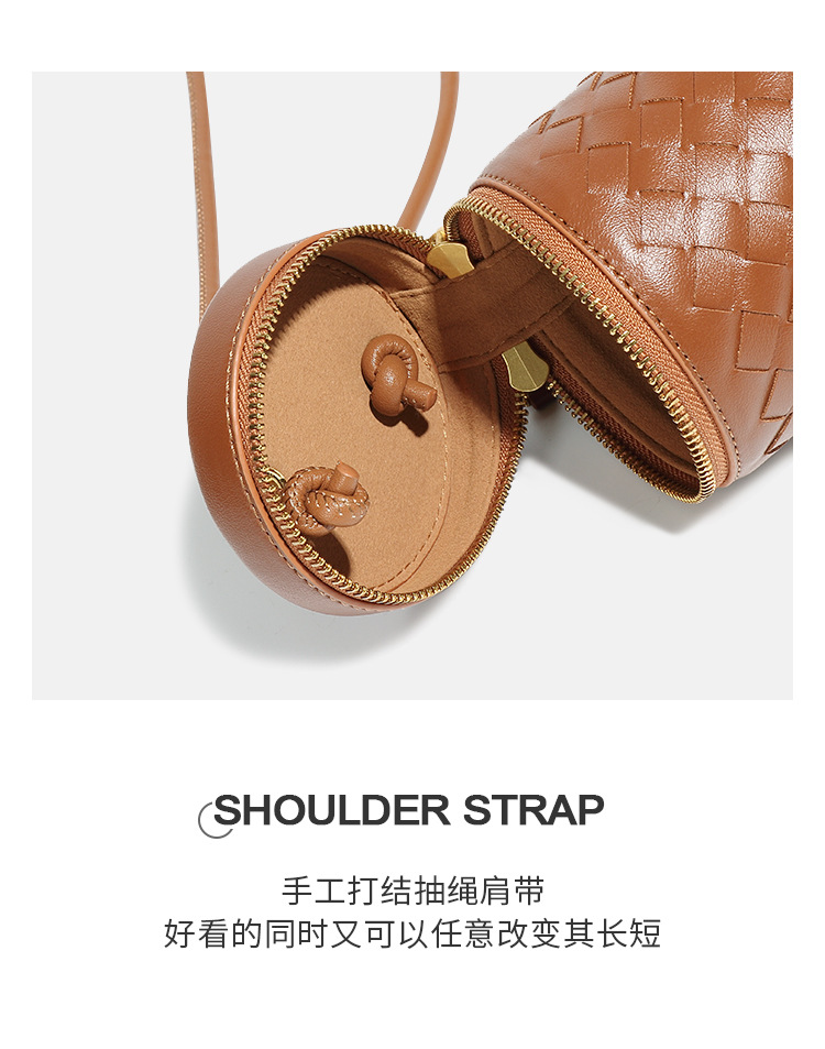 时尚简约纯色圆筒包新款百搭手工编织包包迷你可爱单肩斜挎手机包