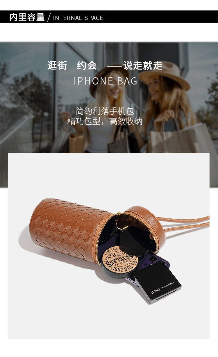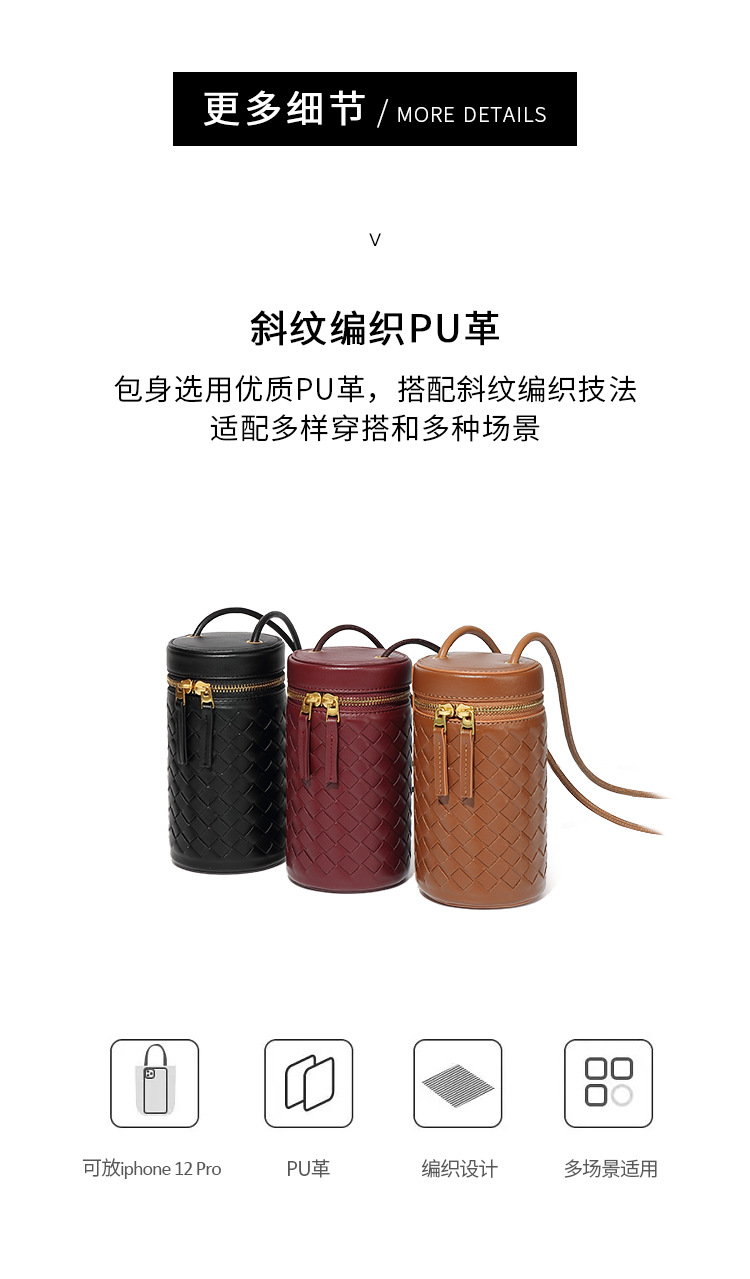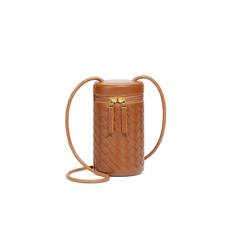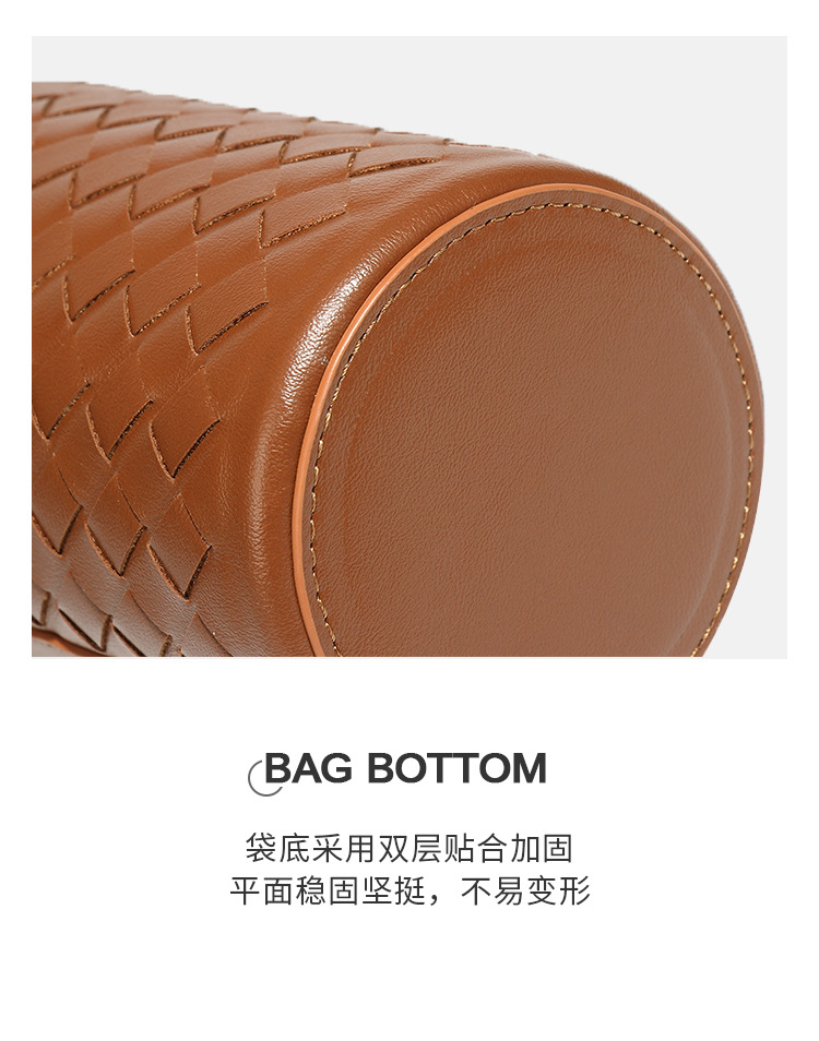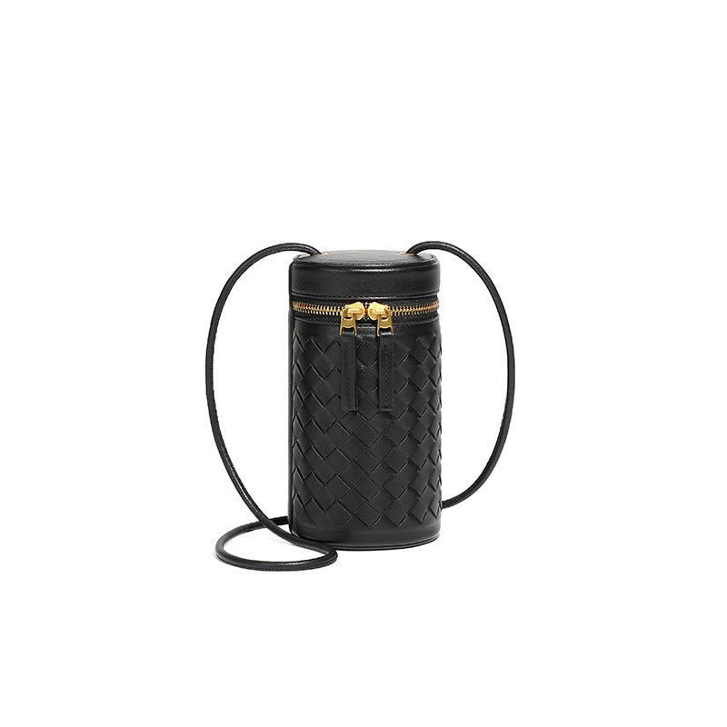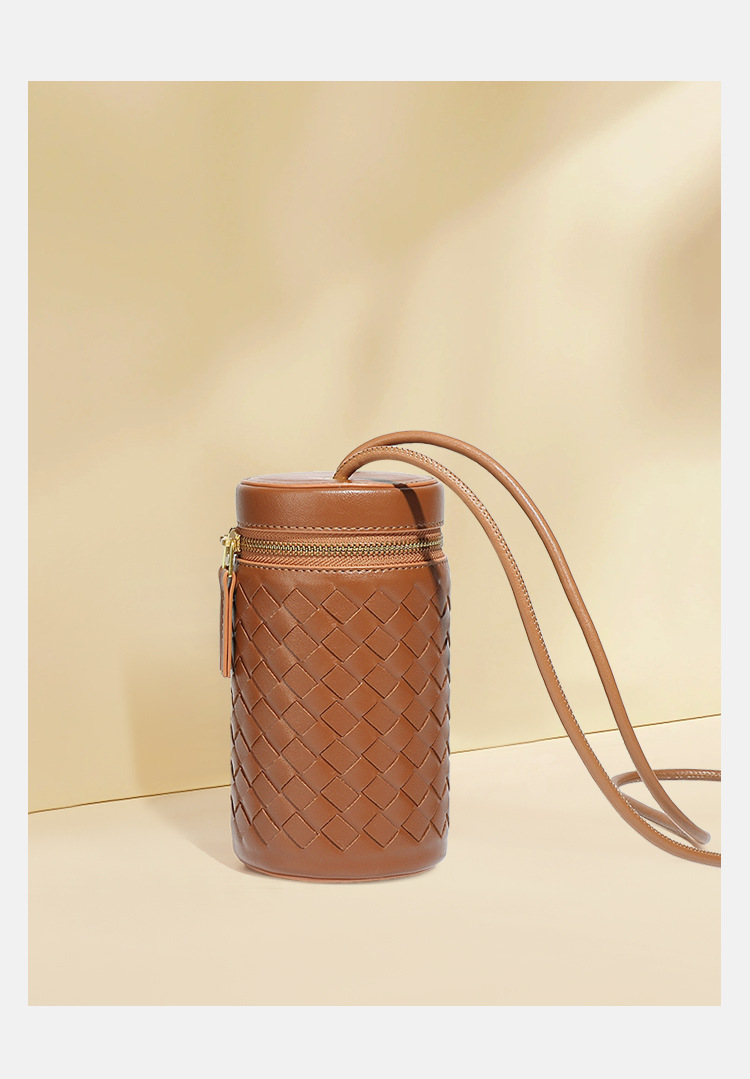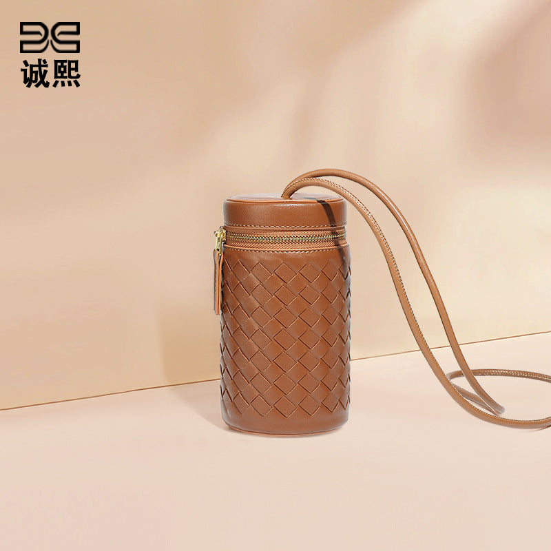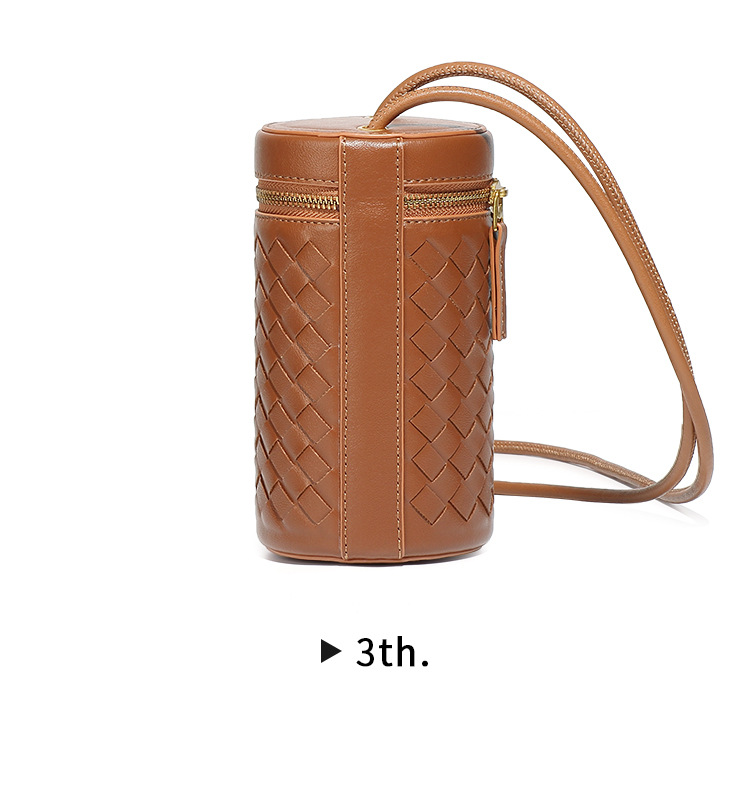 时尚简约纯色圆筒包新款百搭手工编织包包迷你可爱单肩斜挎手机包