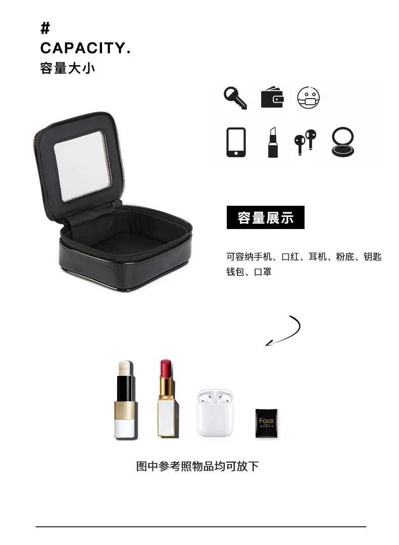 来图订制LOGO化妆盒2023新款mini收纳口红包带化妆镜小盒子化妆包