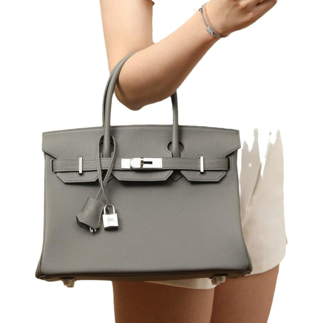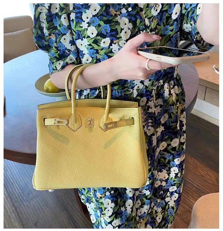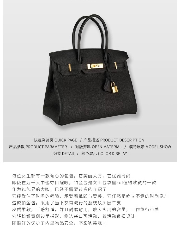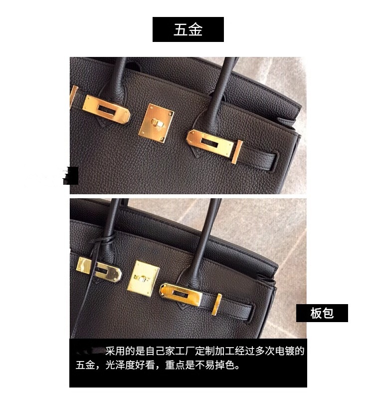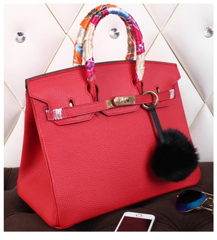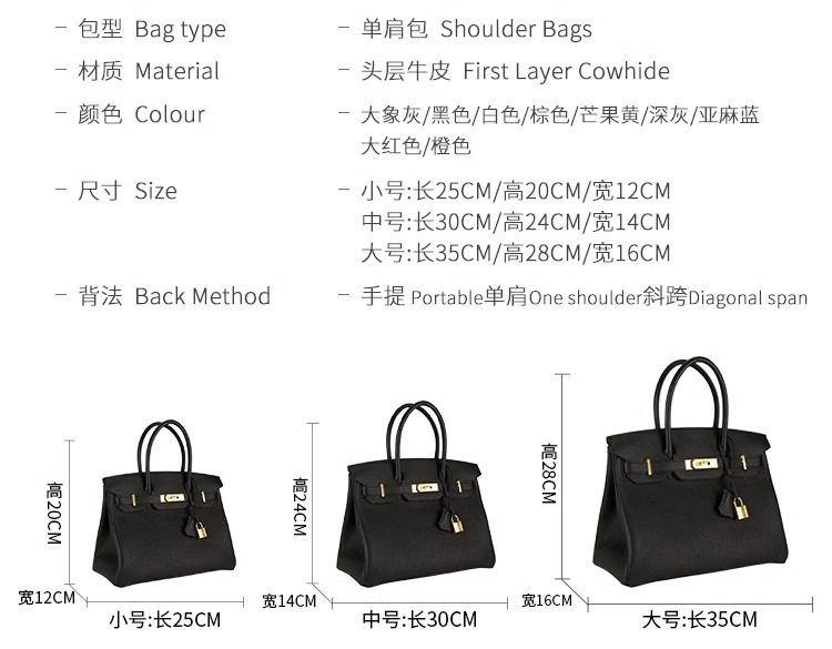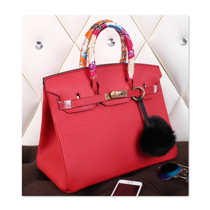欧美外贸款头层牛皮荔枝纹铂金包真皮女包手提包单肩斜挎凯莉大包