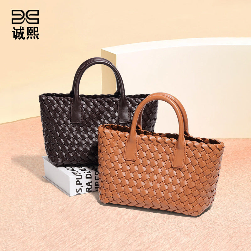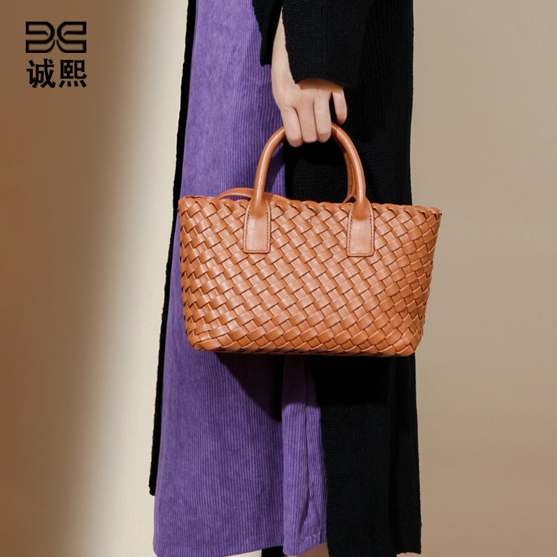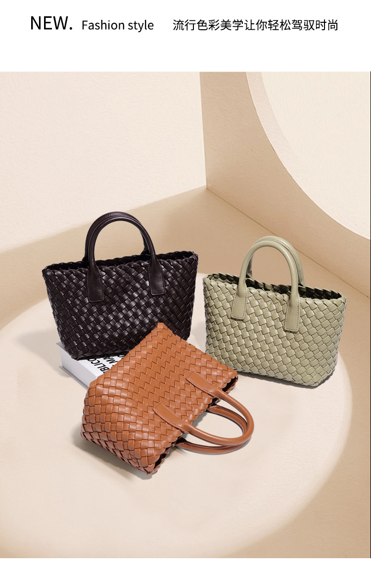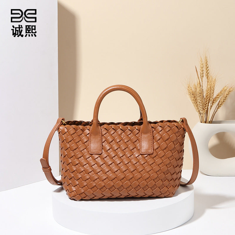 欧美大容量通勤包女简约休闲手提包时尚手工编织包潮流单肩斜挎包