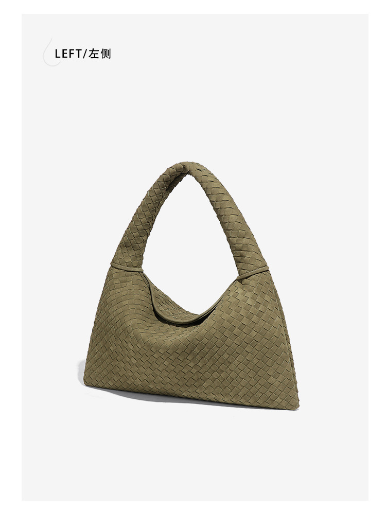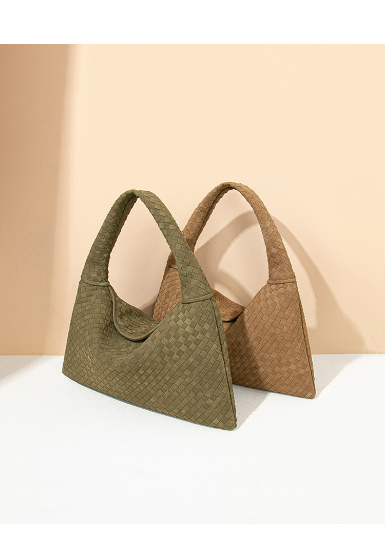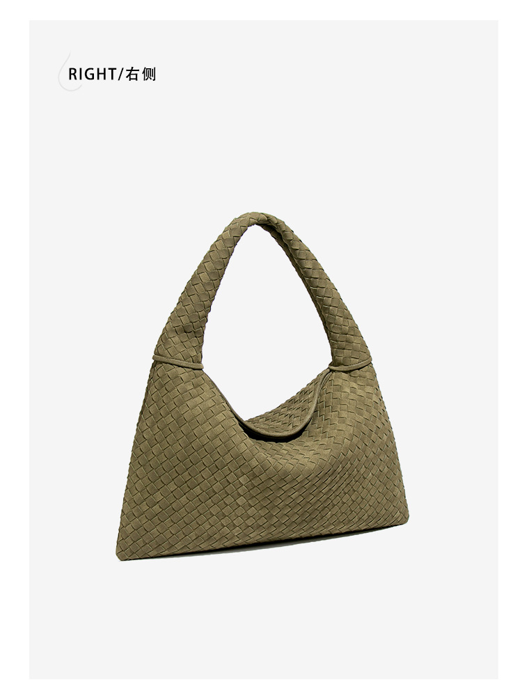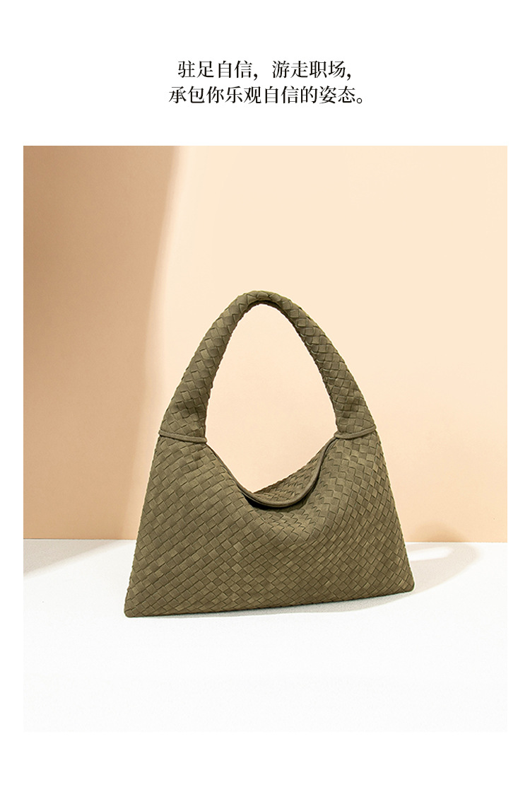 欧美时尚单肩手工编织女包大容量通勤托特包磨砂麂皮绒百搭腋下包