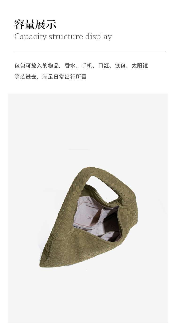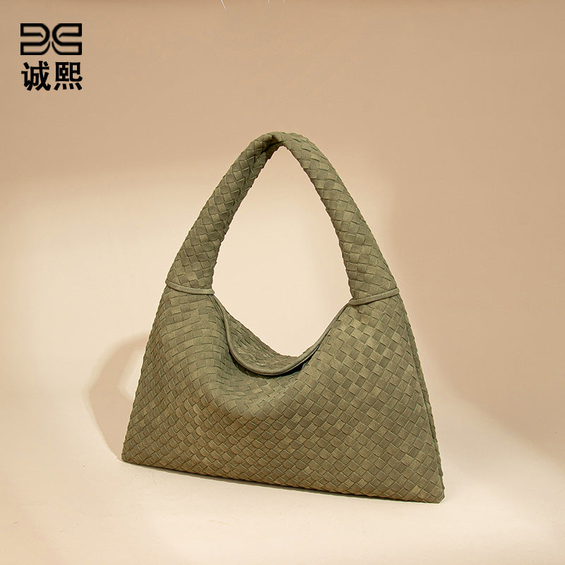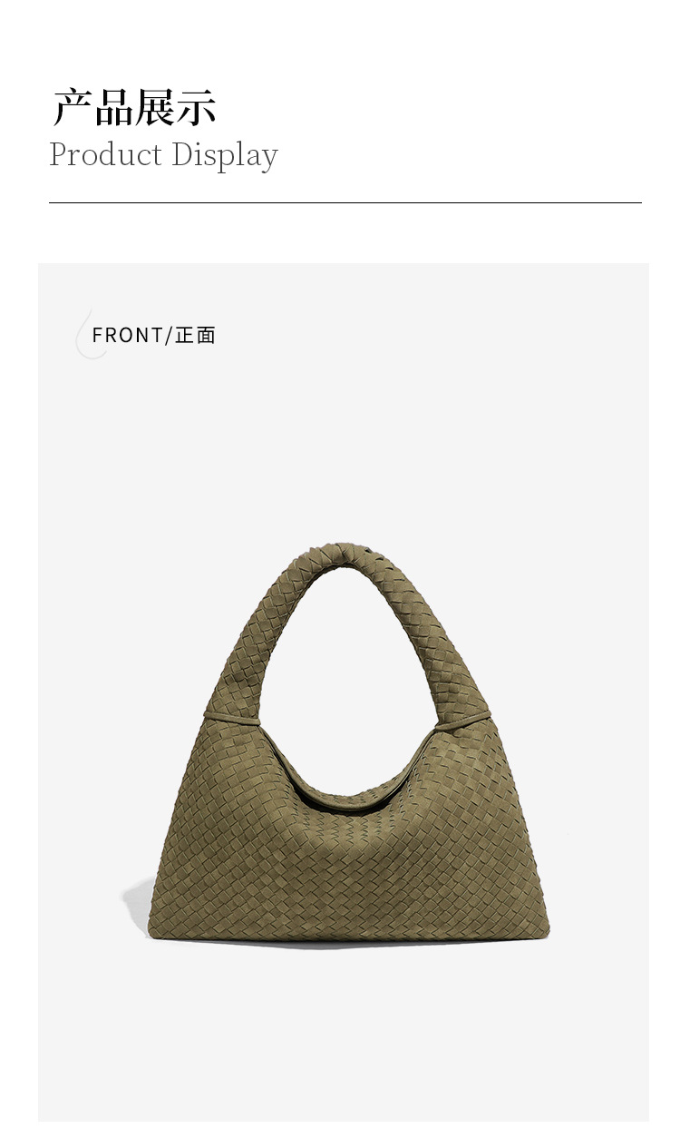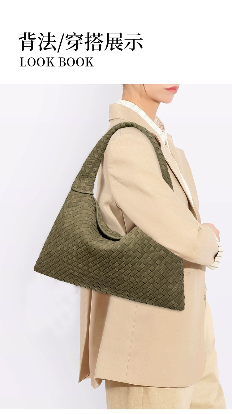 欧美时尚单肩手工编织女包大容量通勤托特包磨砂麂皮绒百搭腋下包