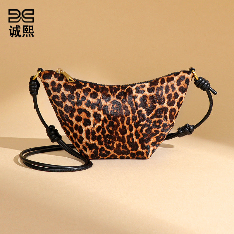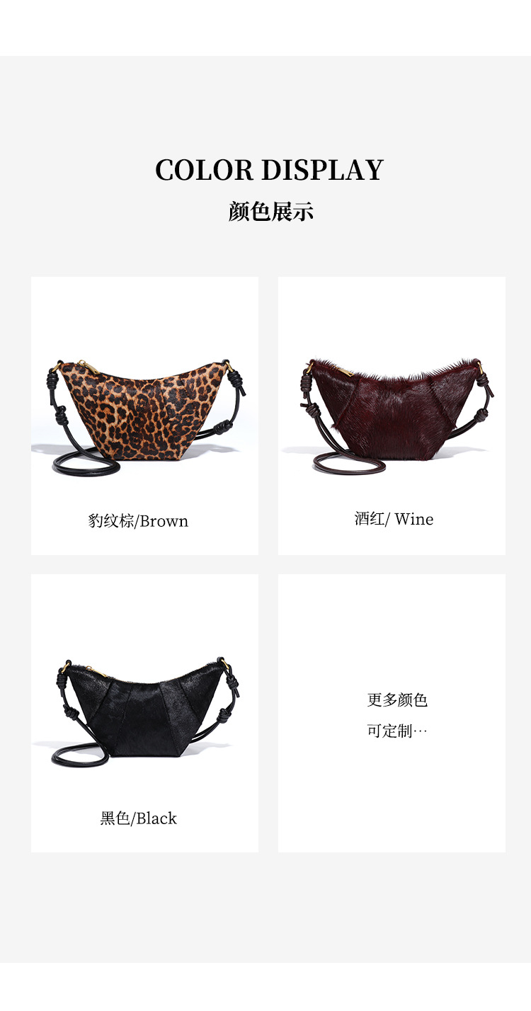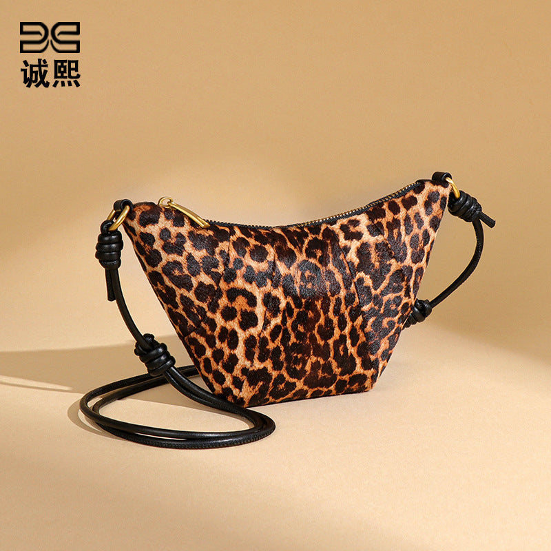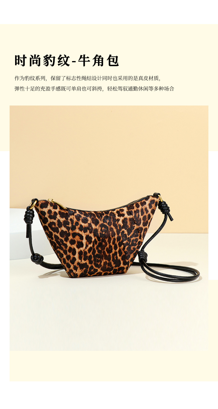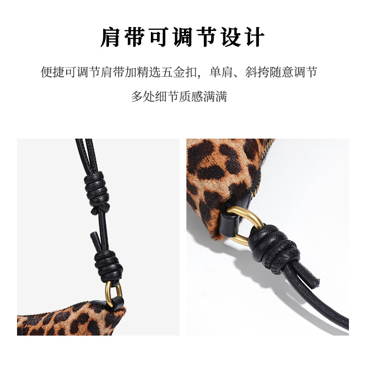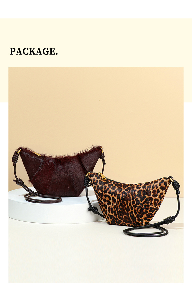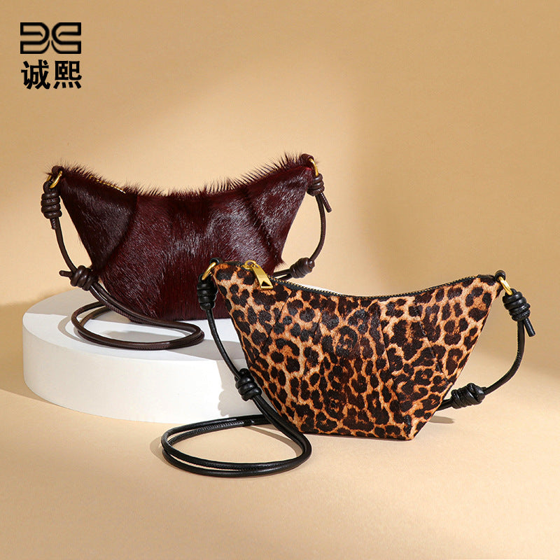 欧美时尚复古女包真皮马毛牛角包小巧百搭豹纹潮流单肩斜跨可颂包