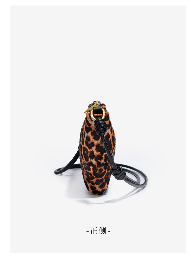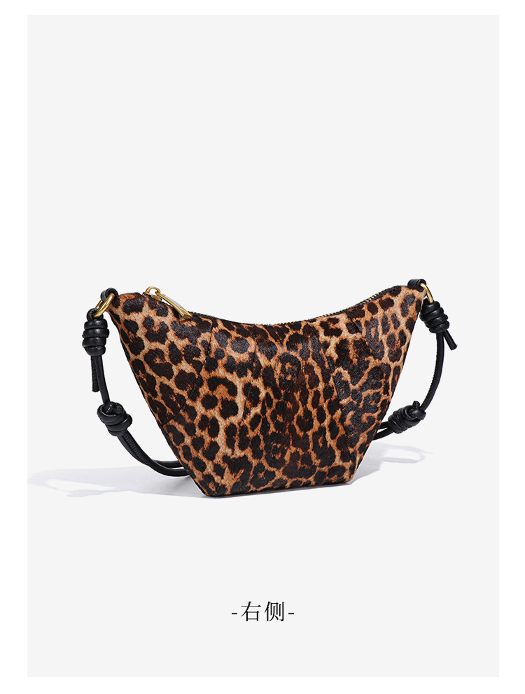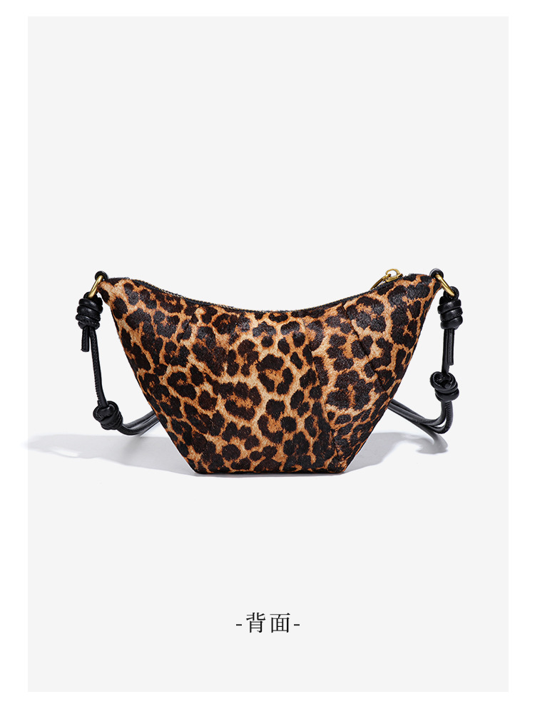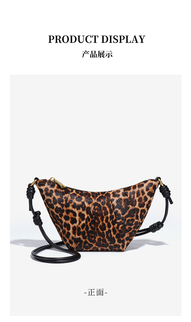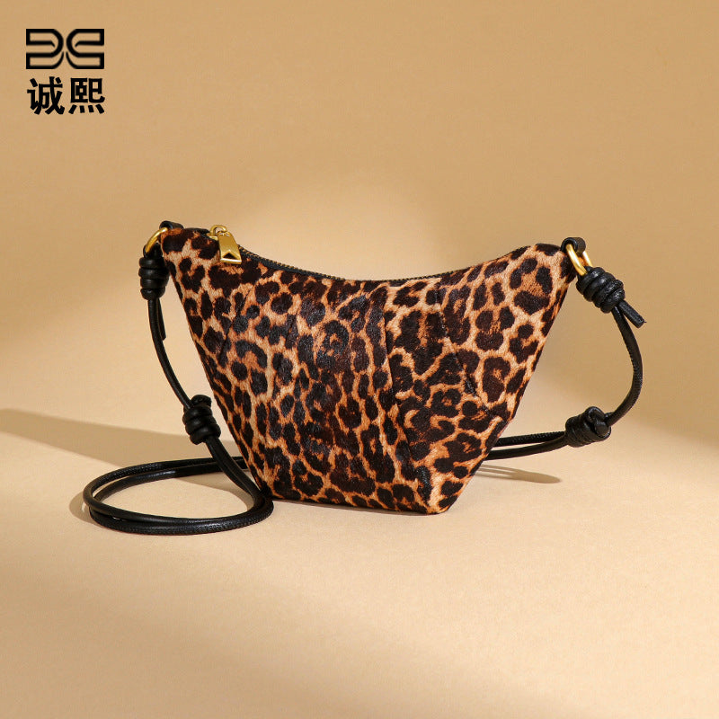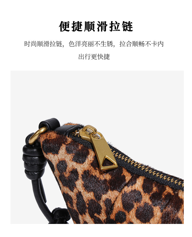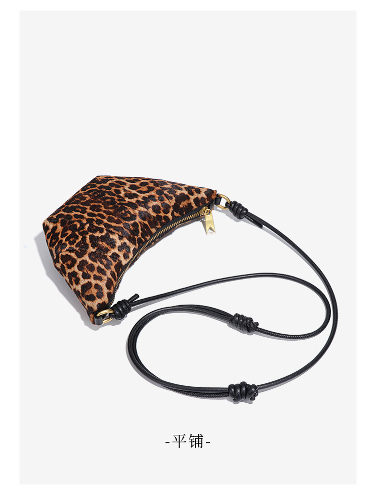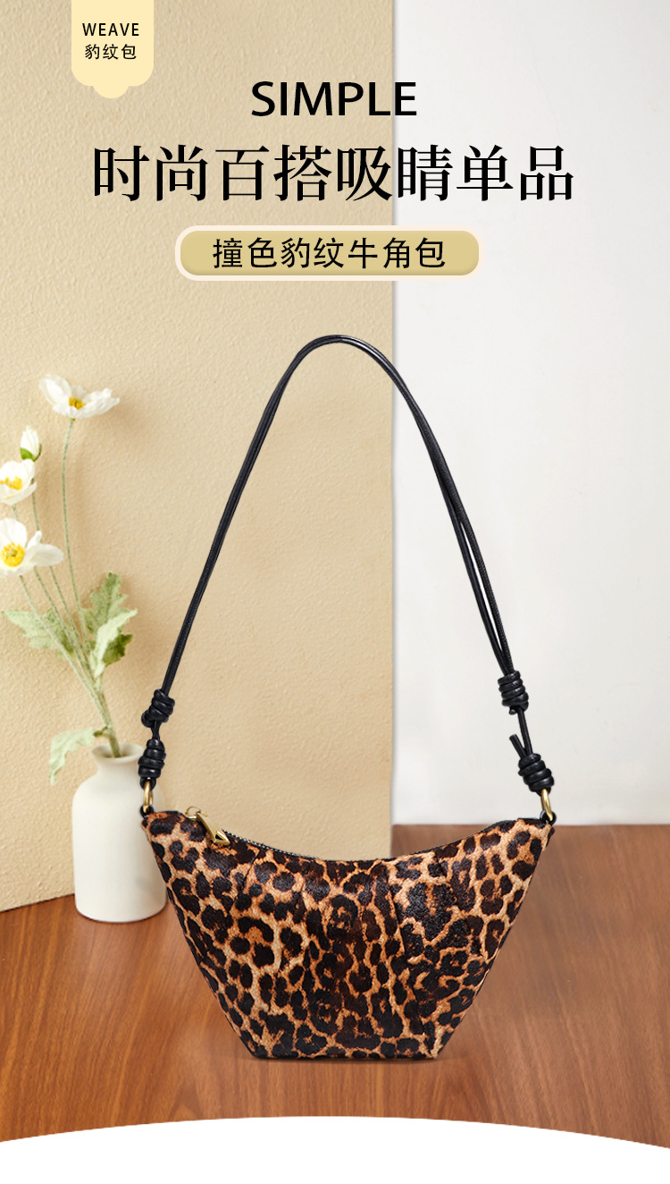 欧美时尚复古女包真皮马毛牛角包小巧百搭豹纹潮流单肩斜跨可颂包