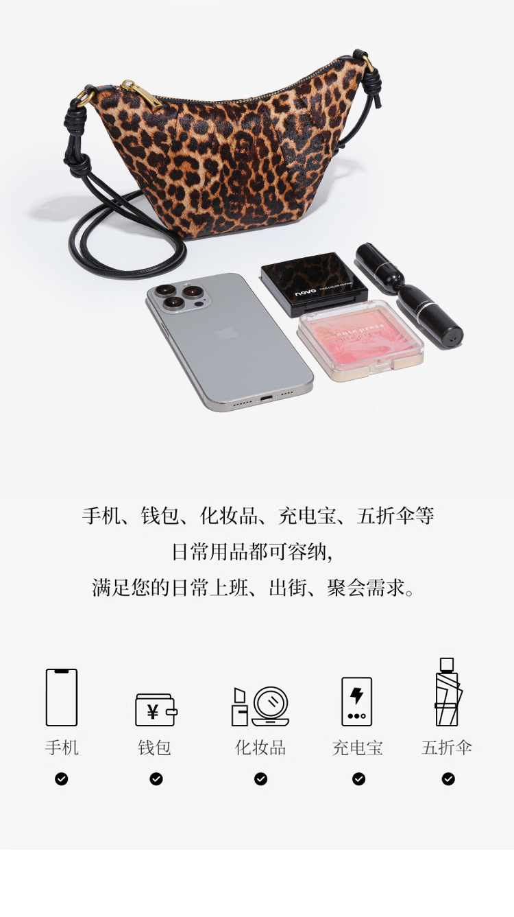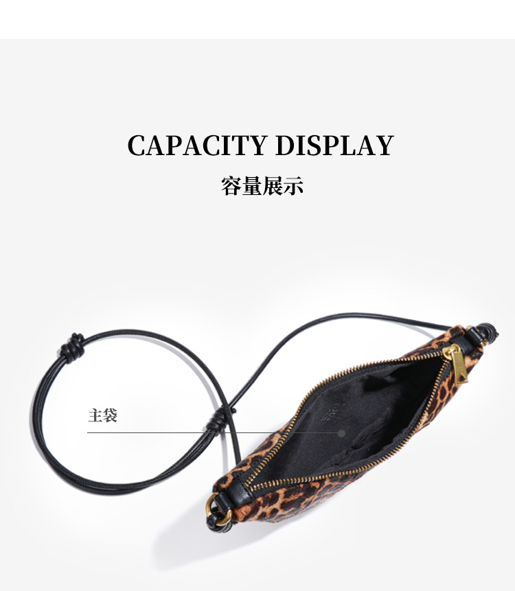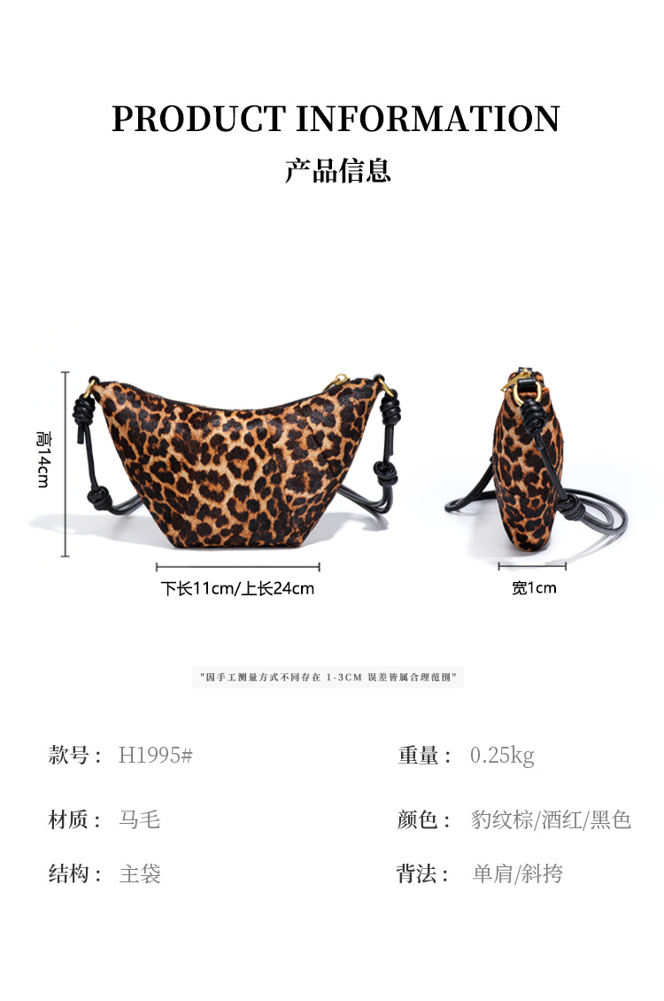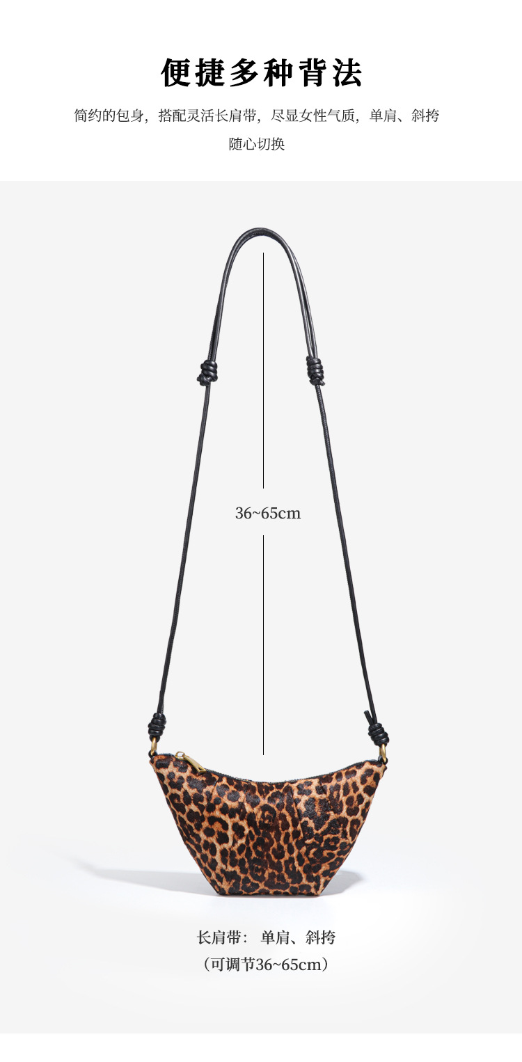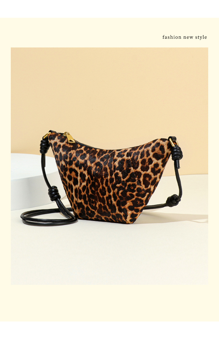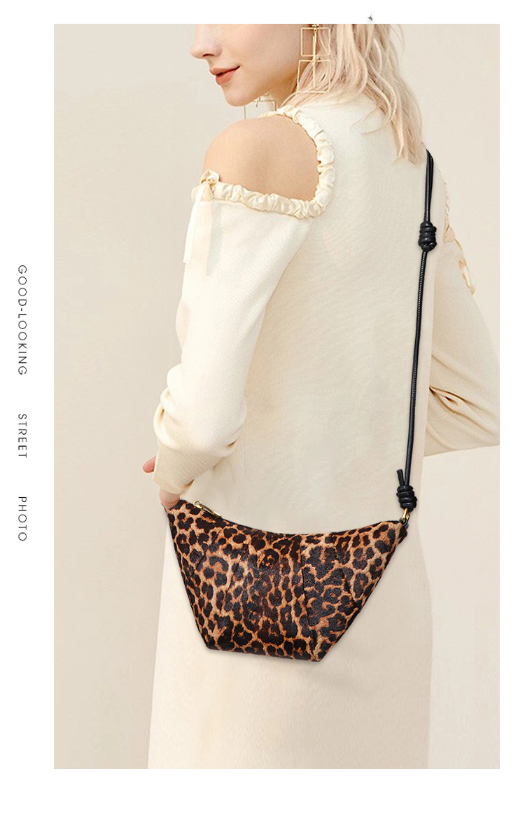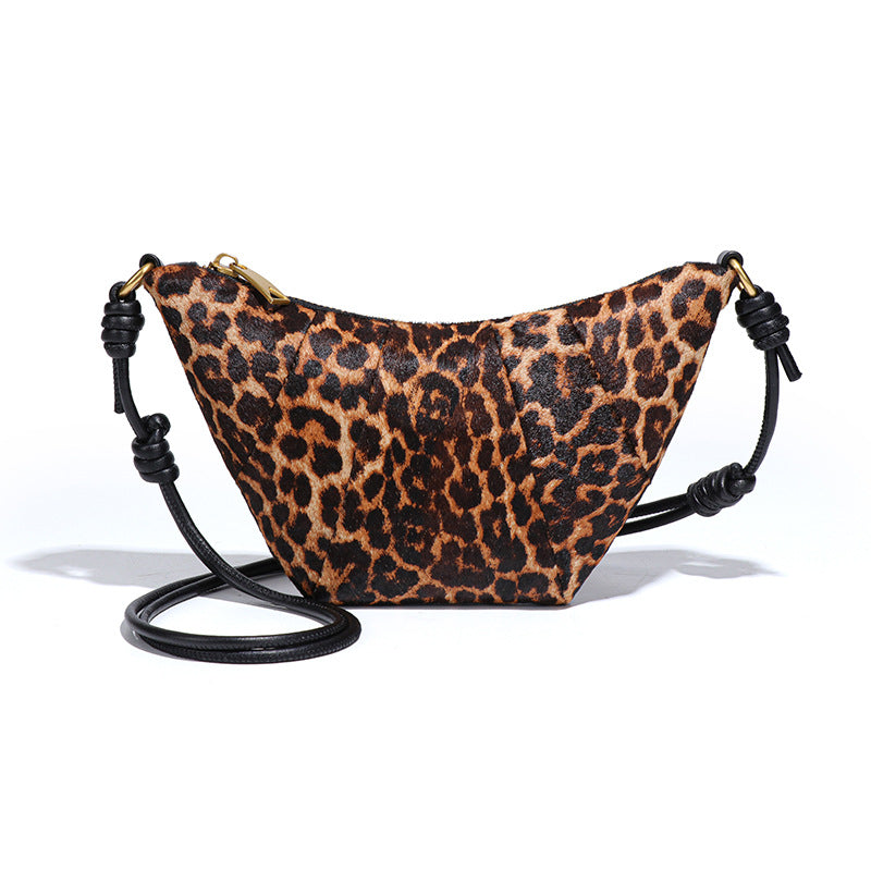 欧美时尚复古女包真皮马毛牛角包小巧百搭豹纹潮流单肩斜跨可颂包