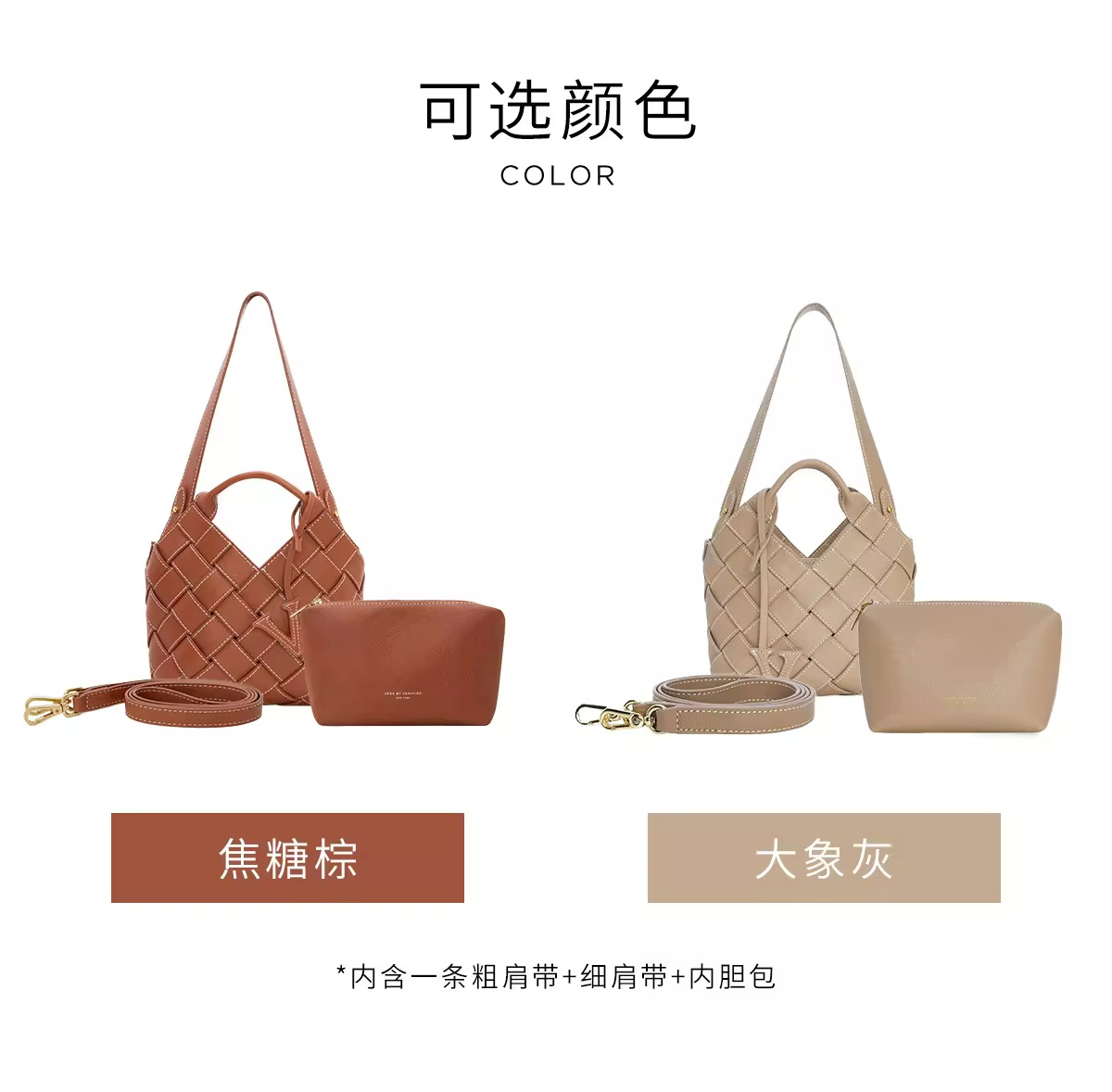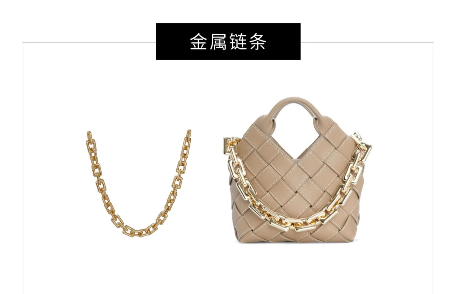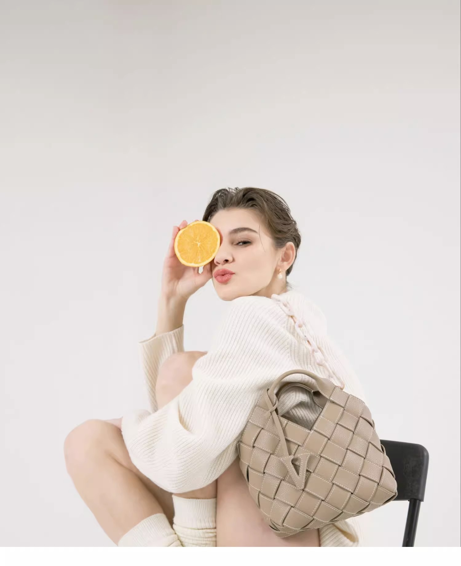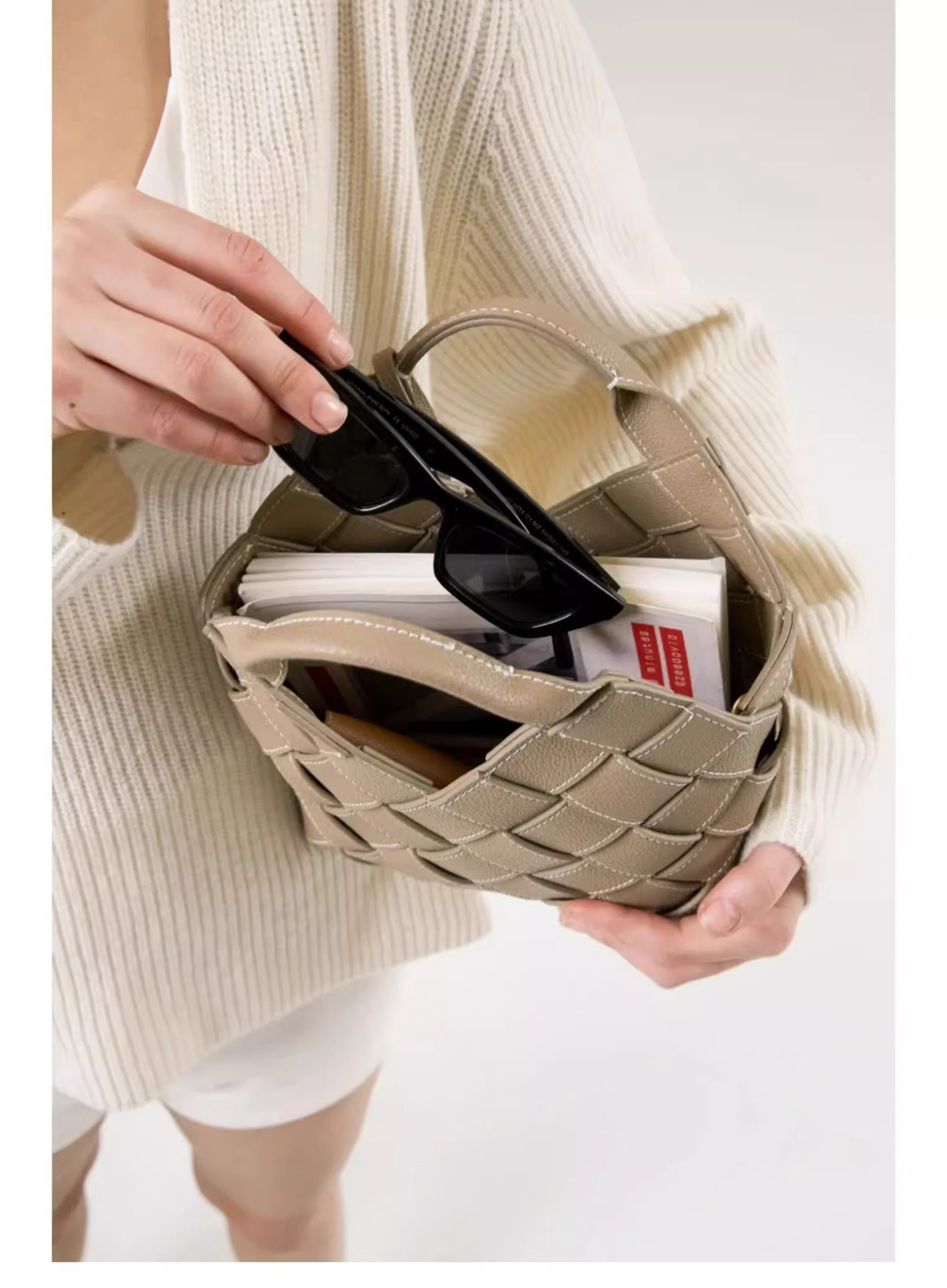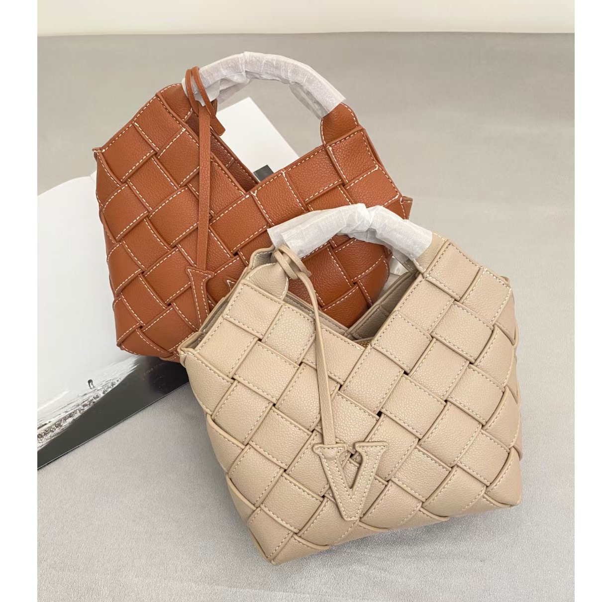 欧美时尚 轻奢高级质感牛皮菜篮子编织包单肩手提包女一件代发