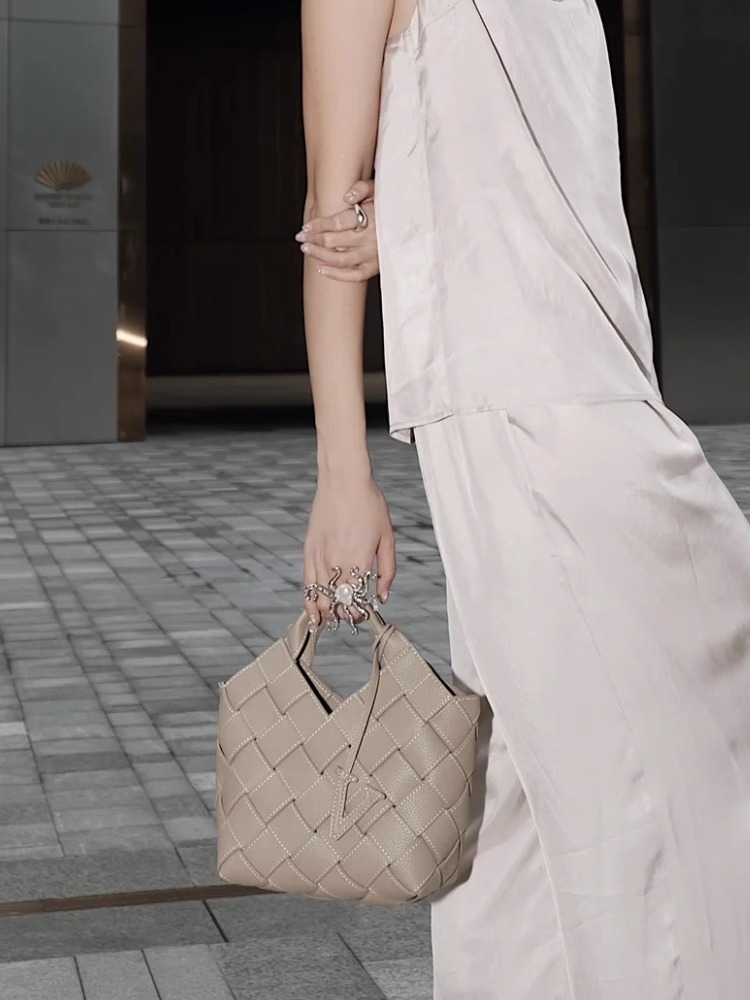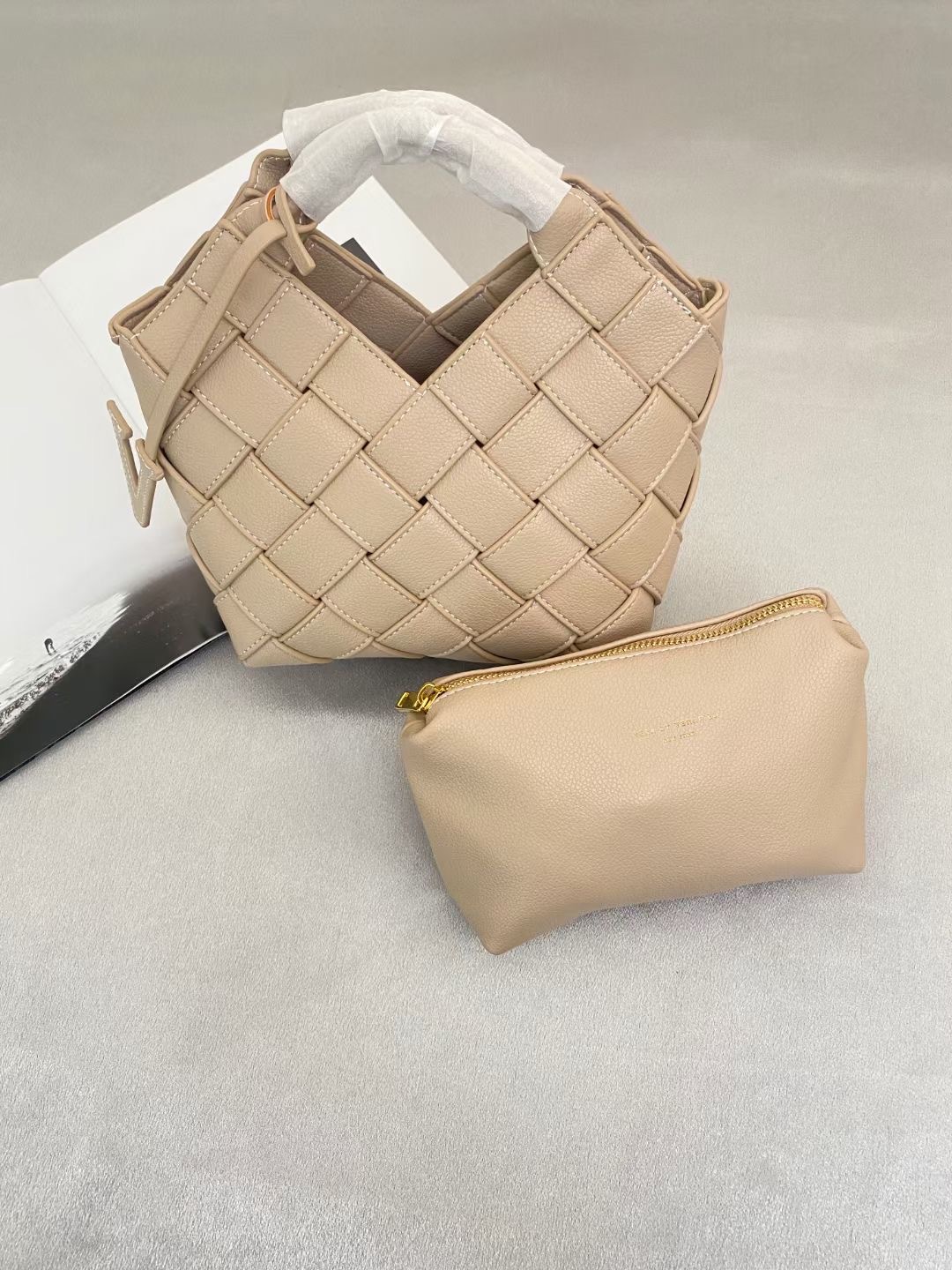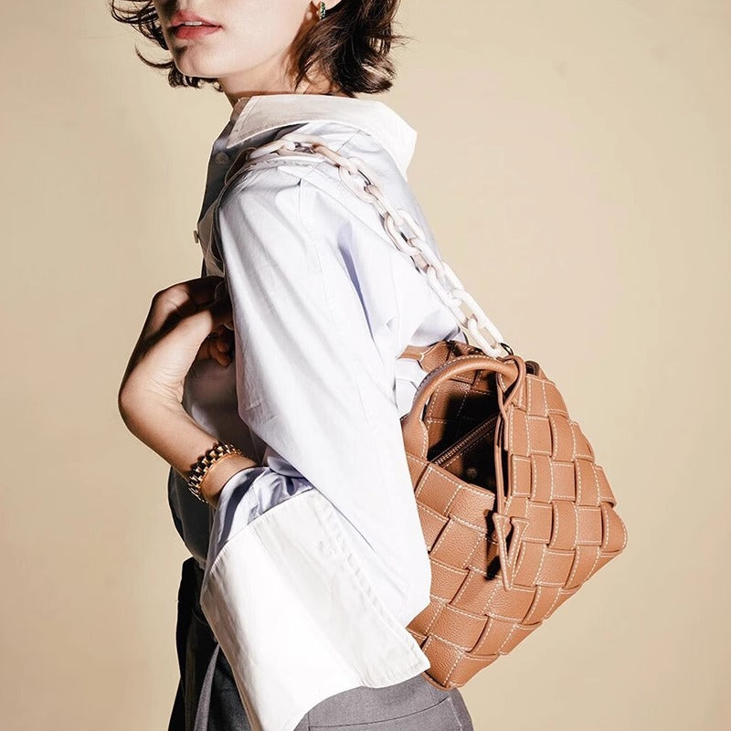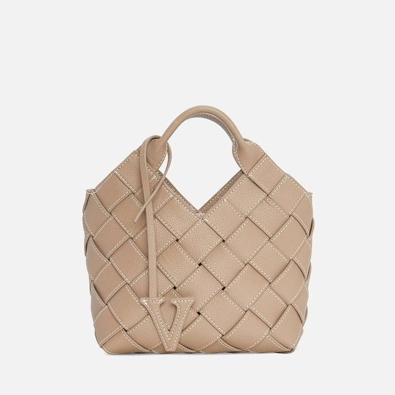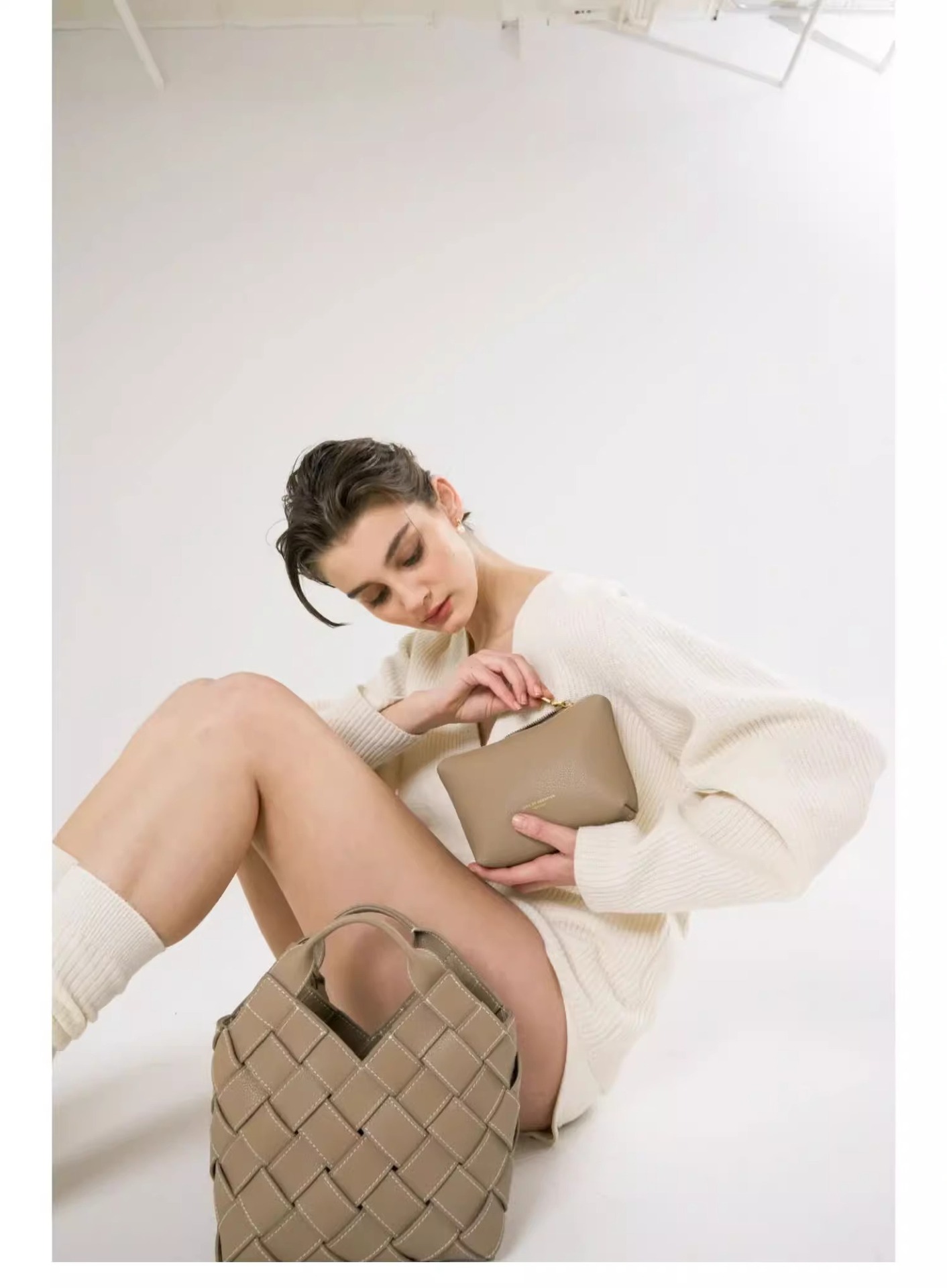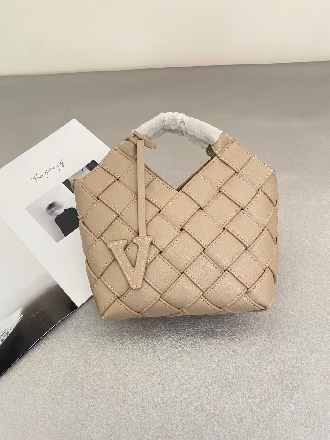欧美时尚 轻奢高级质感牛皮菜篮子编织包单肩手提包女一件代发