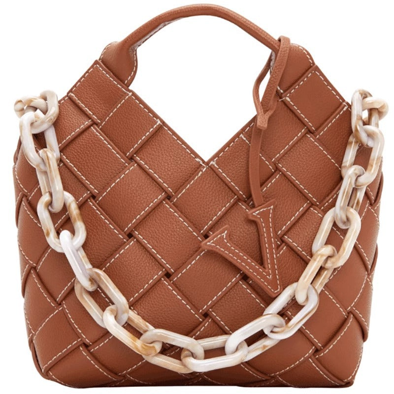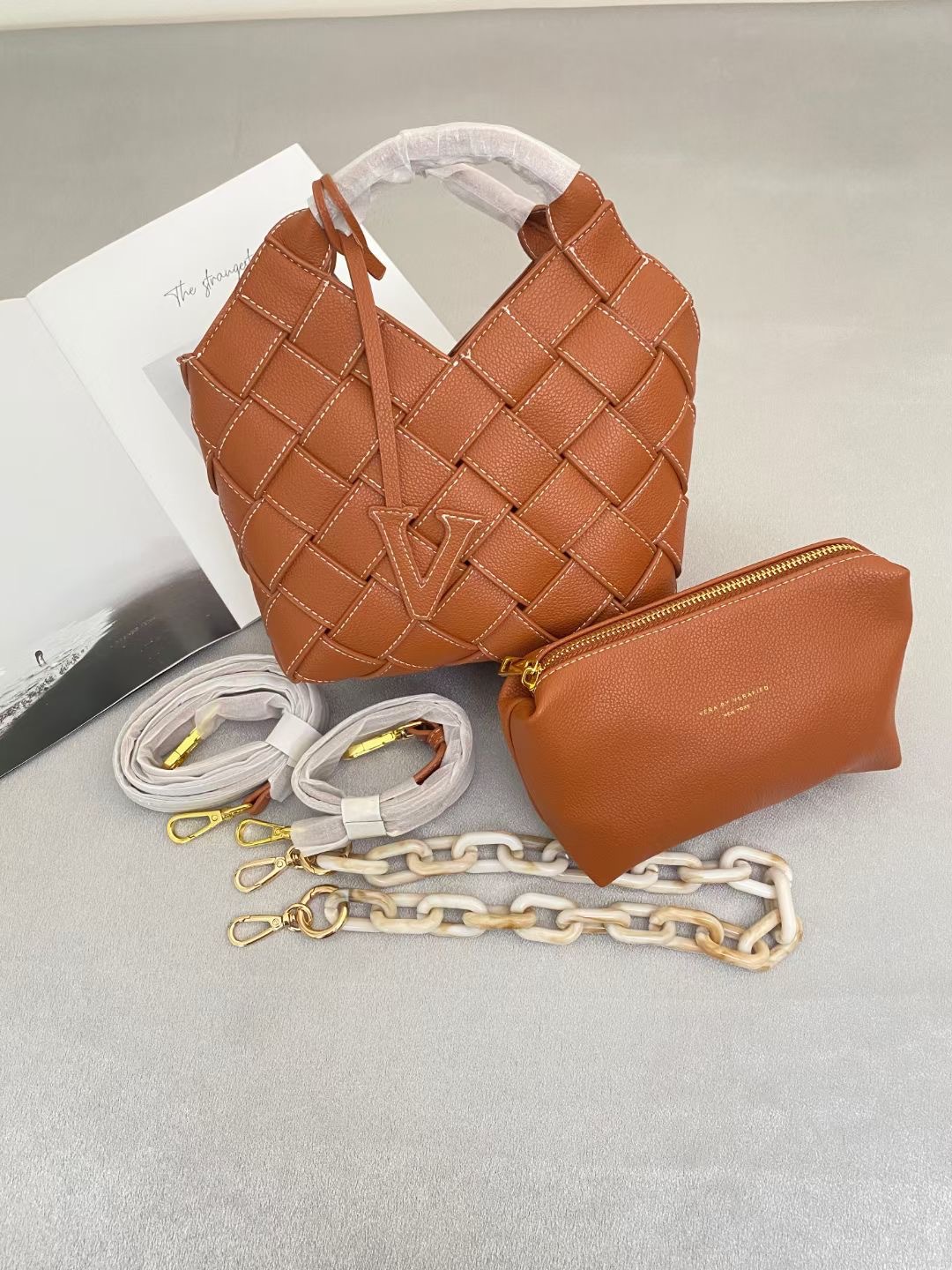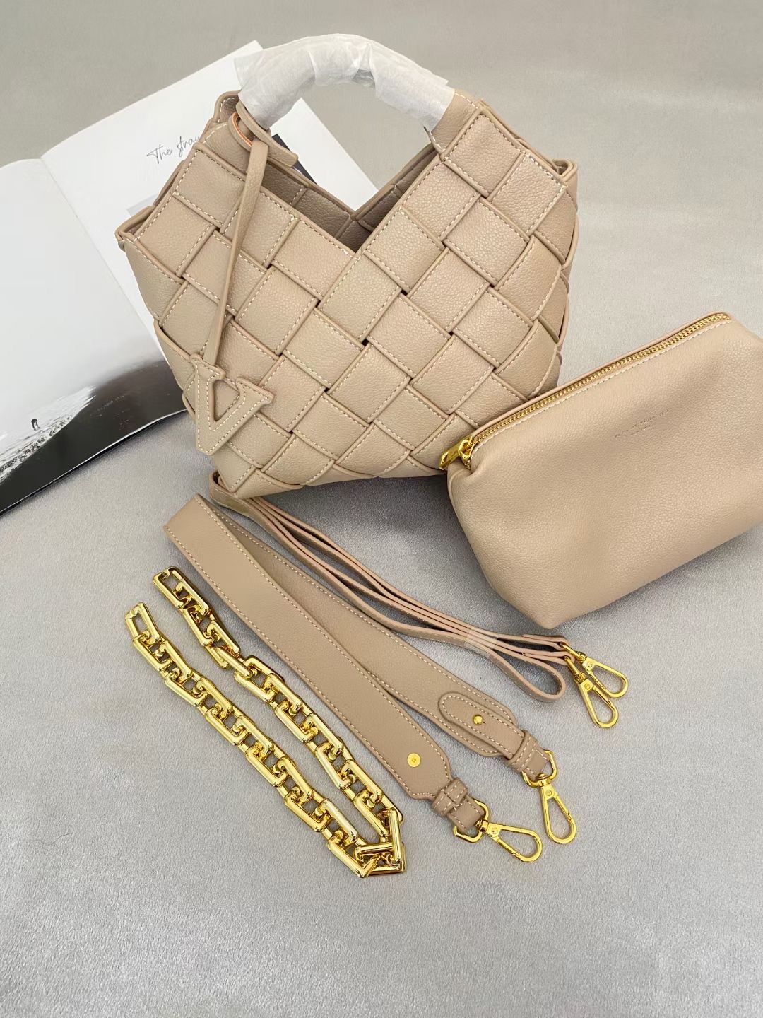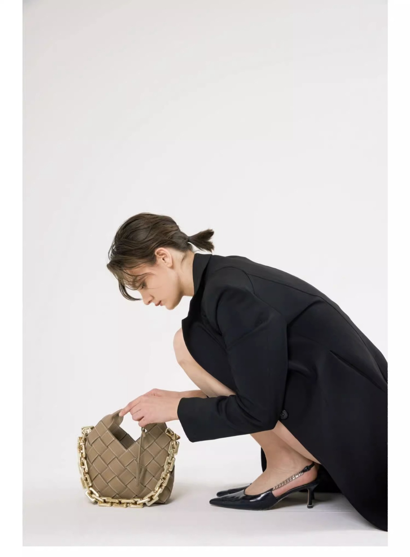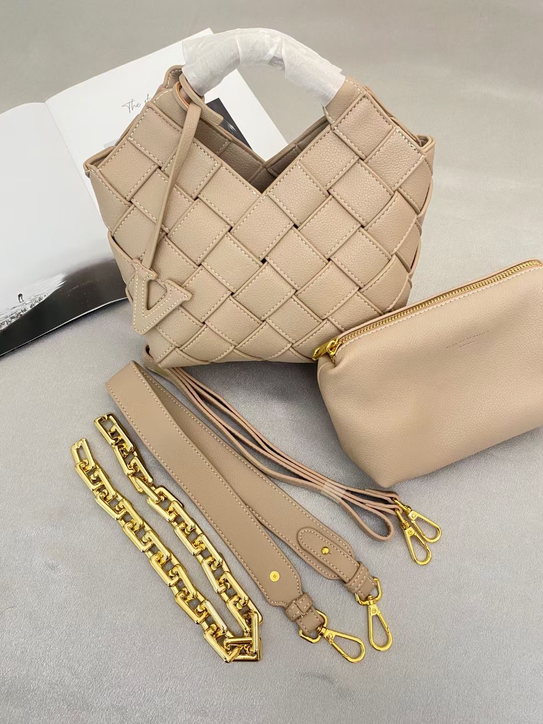 欧美时尚 轻奢高级质感牛皮菜篮子编织包单肩手提包女一件代发
