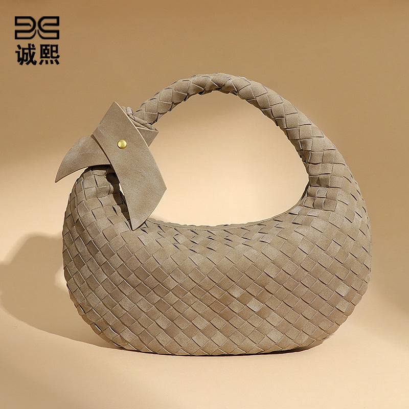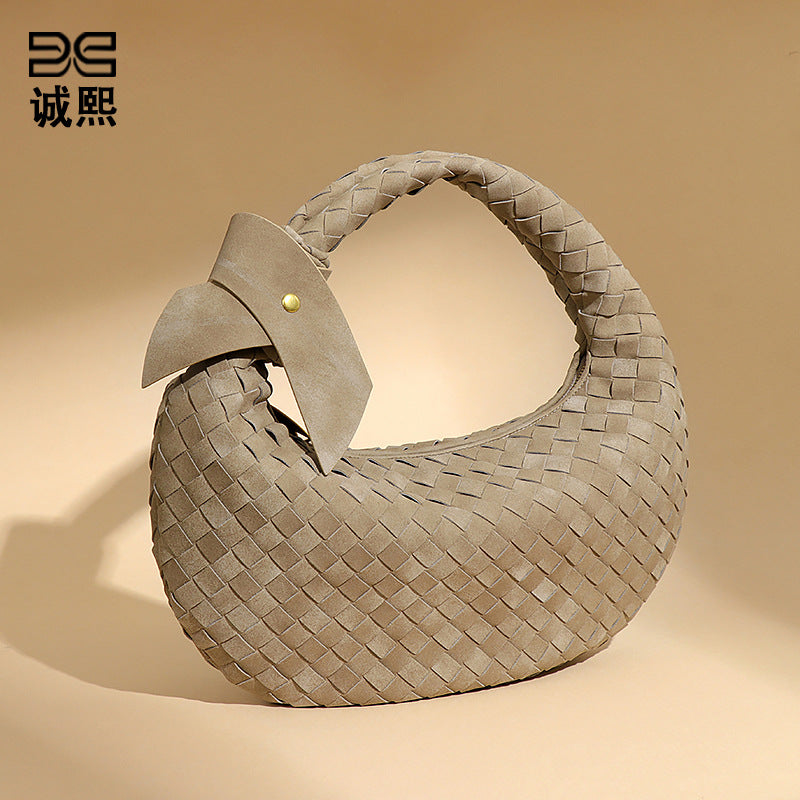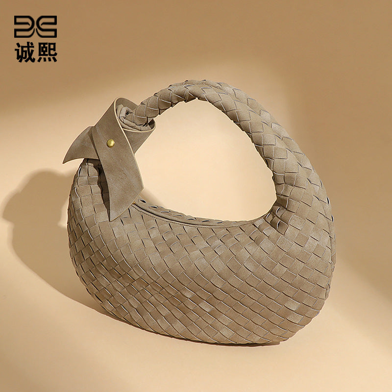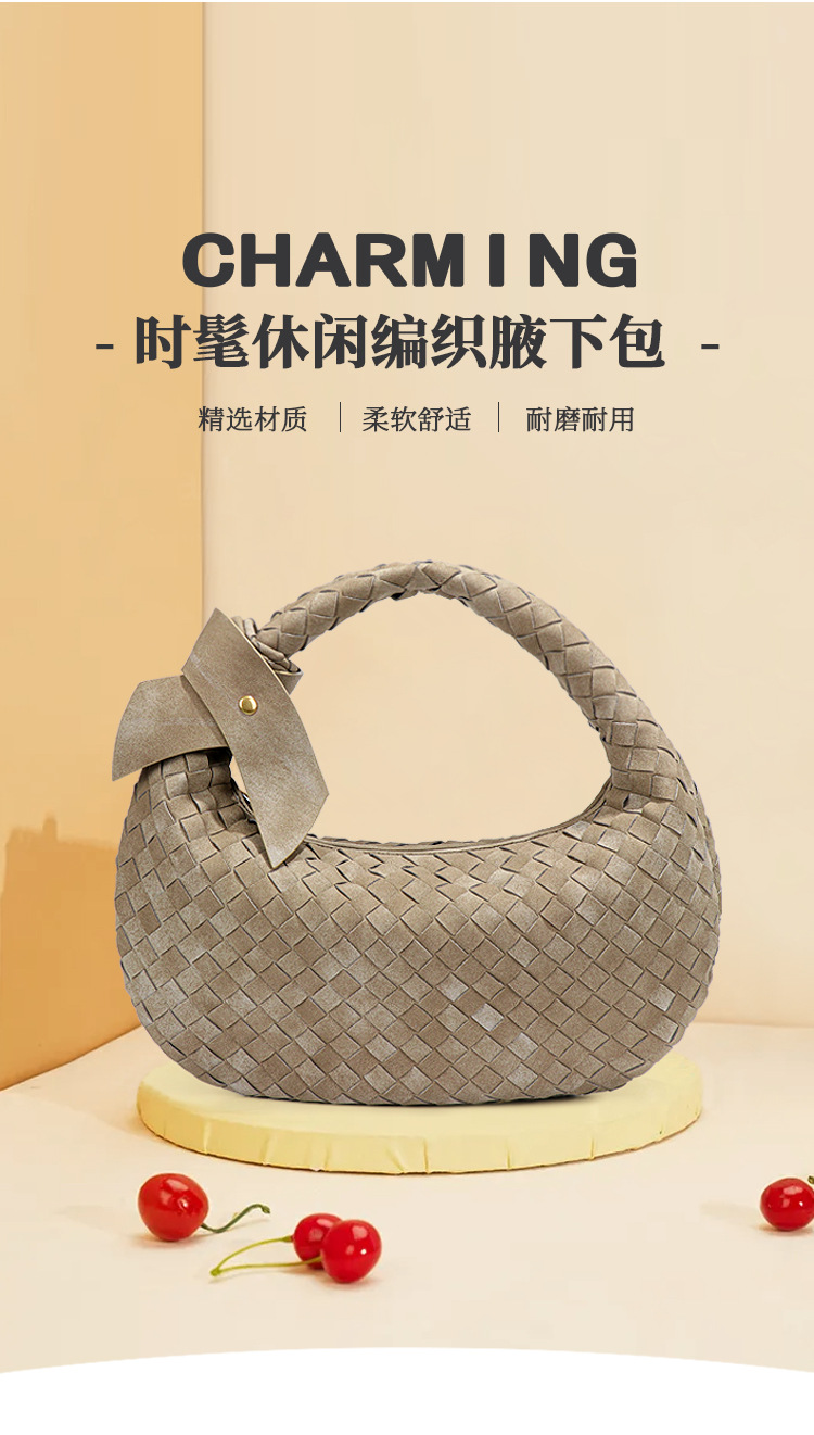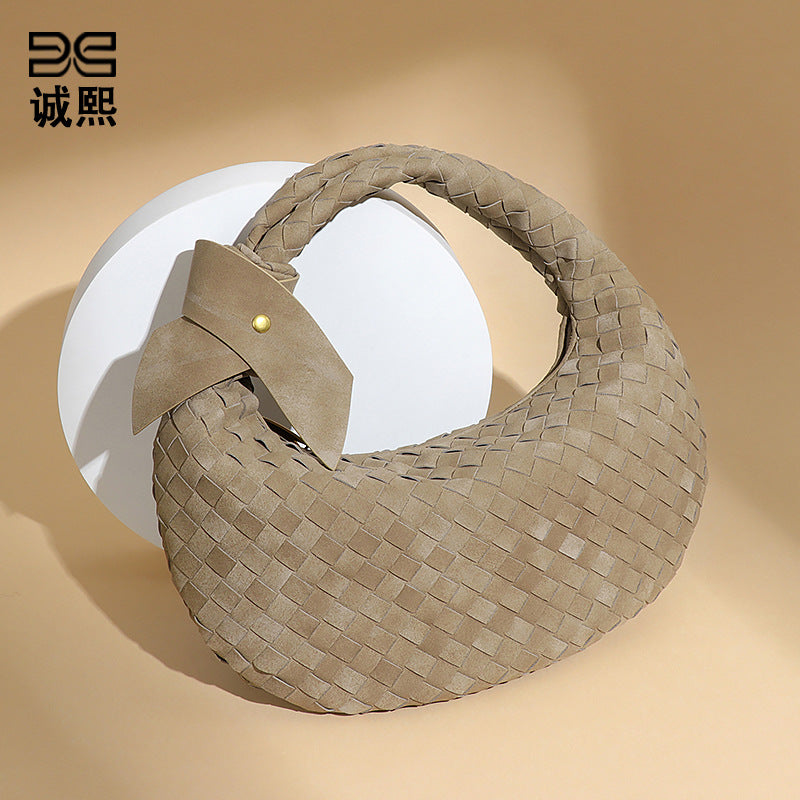 欧美潮流2024大容量编织单肩饺子包秋冬新品百搭牛角包磨砂腋下包