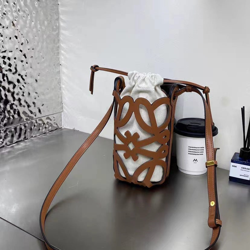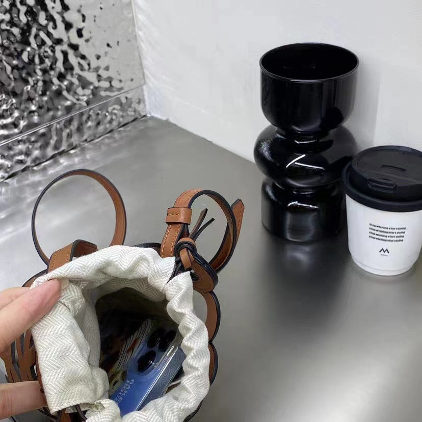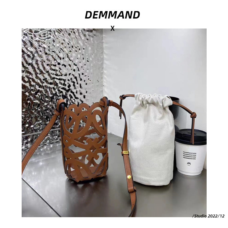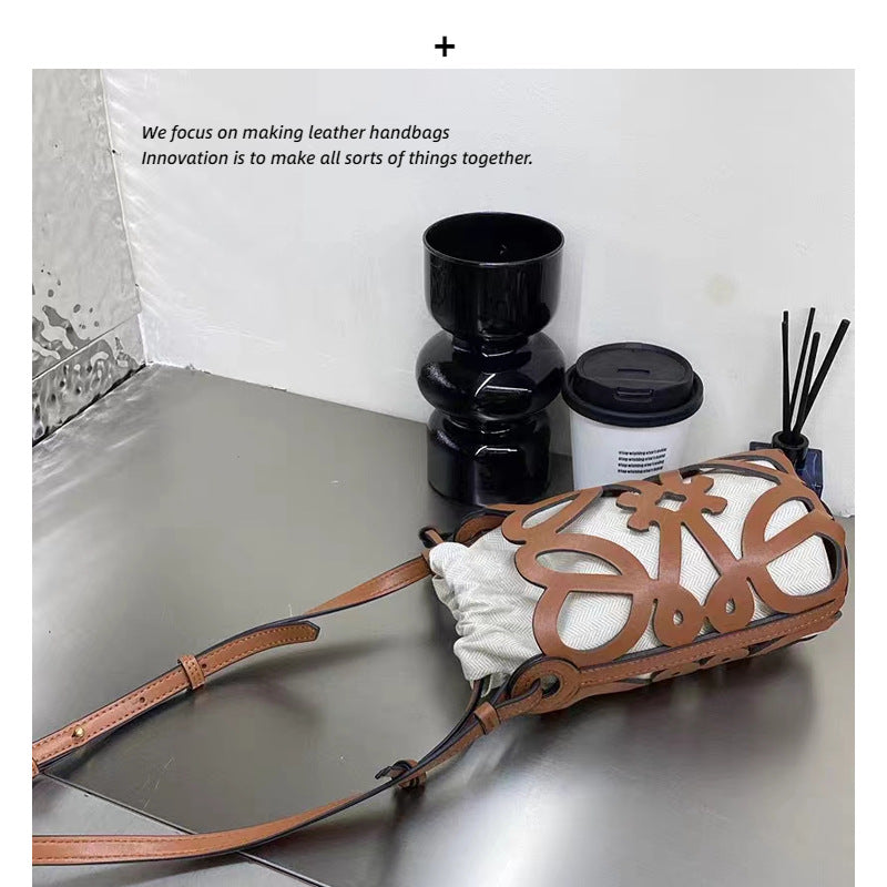 欧货品质女包2023新款水桶包复古文艺牛皮镂空个性单肩斜挎包包