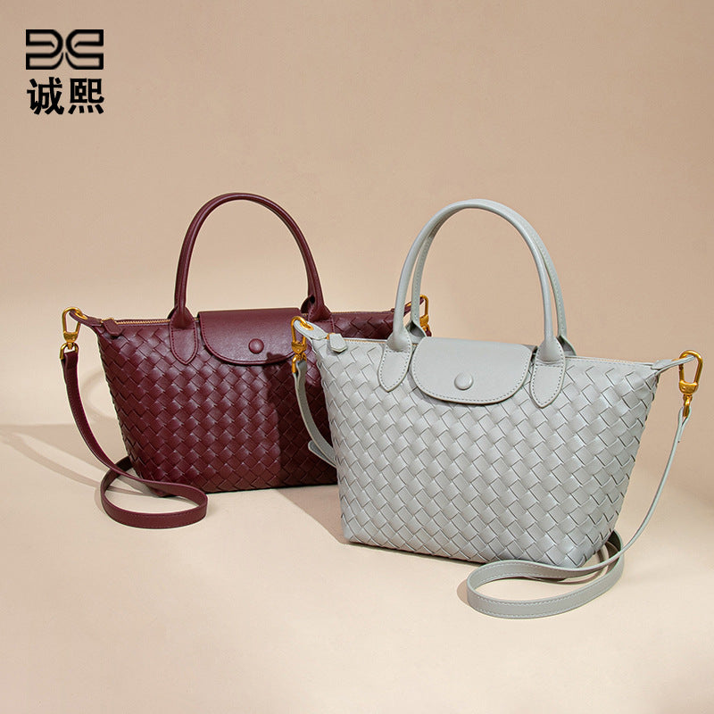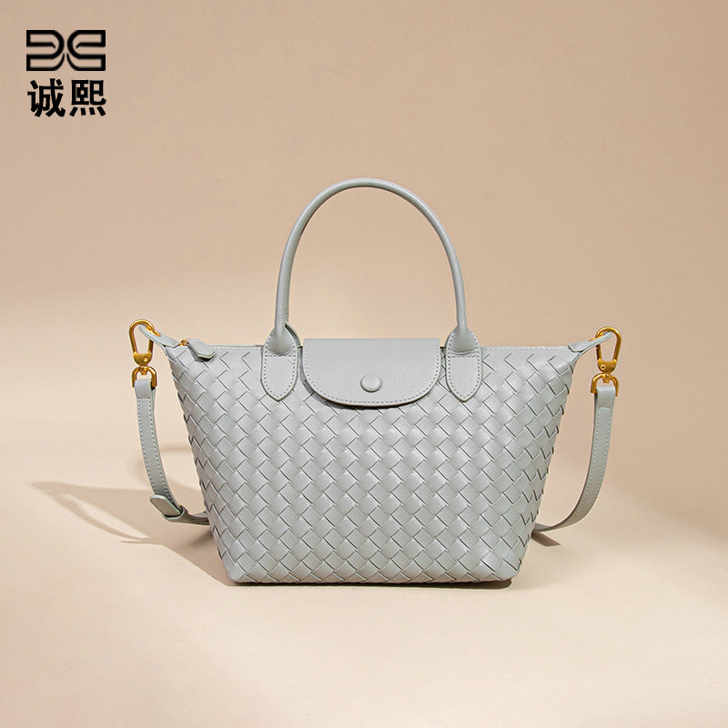 气质高级感手提女包时尚手工编织包纯色龙襄饺子包质感单肩斜跨包