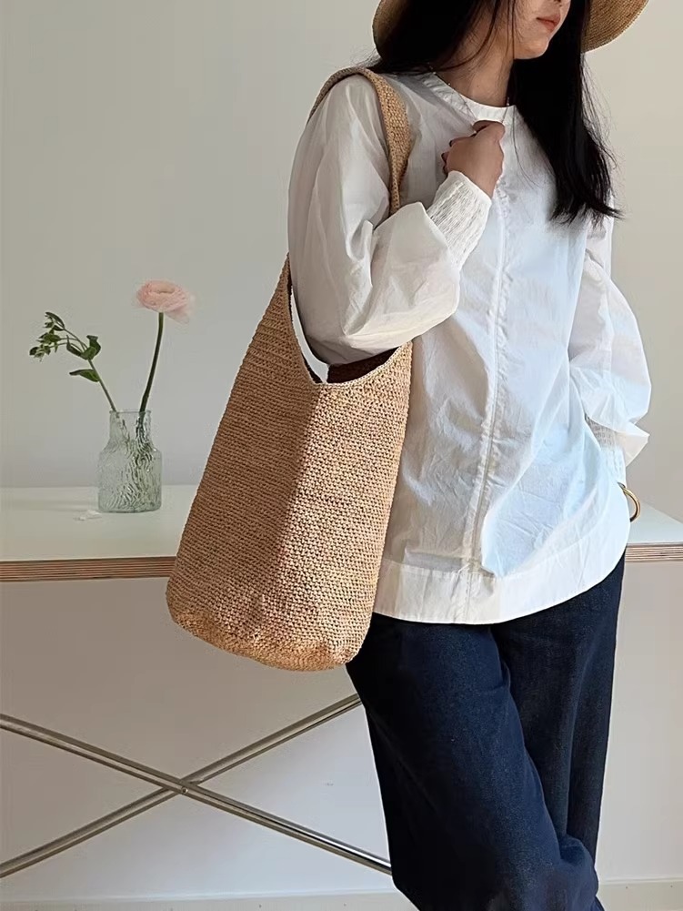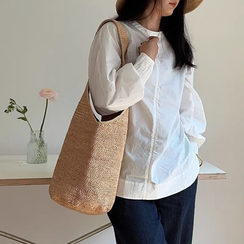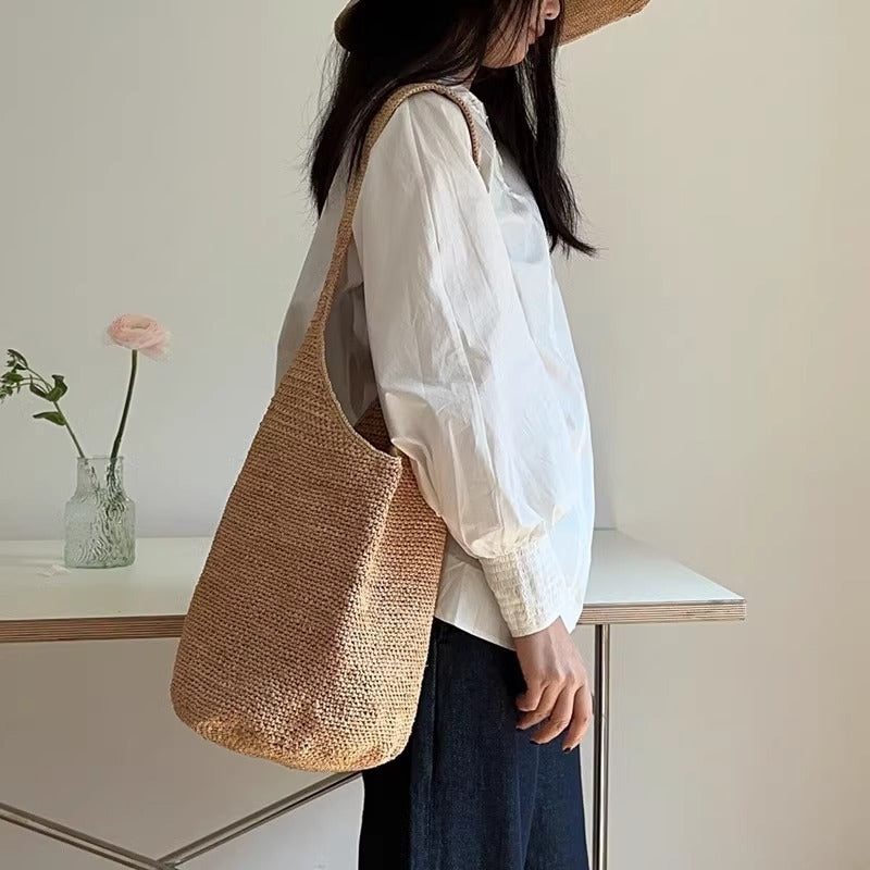 法式拉菲草编包女夏时尚百搭大容量单肩腋下托特海边度假沙滩女包