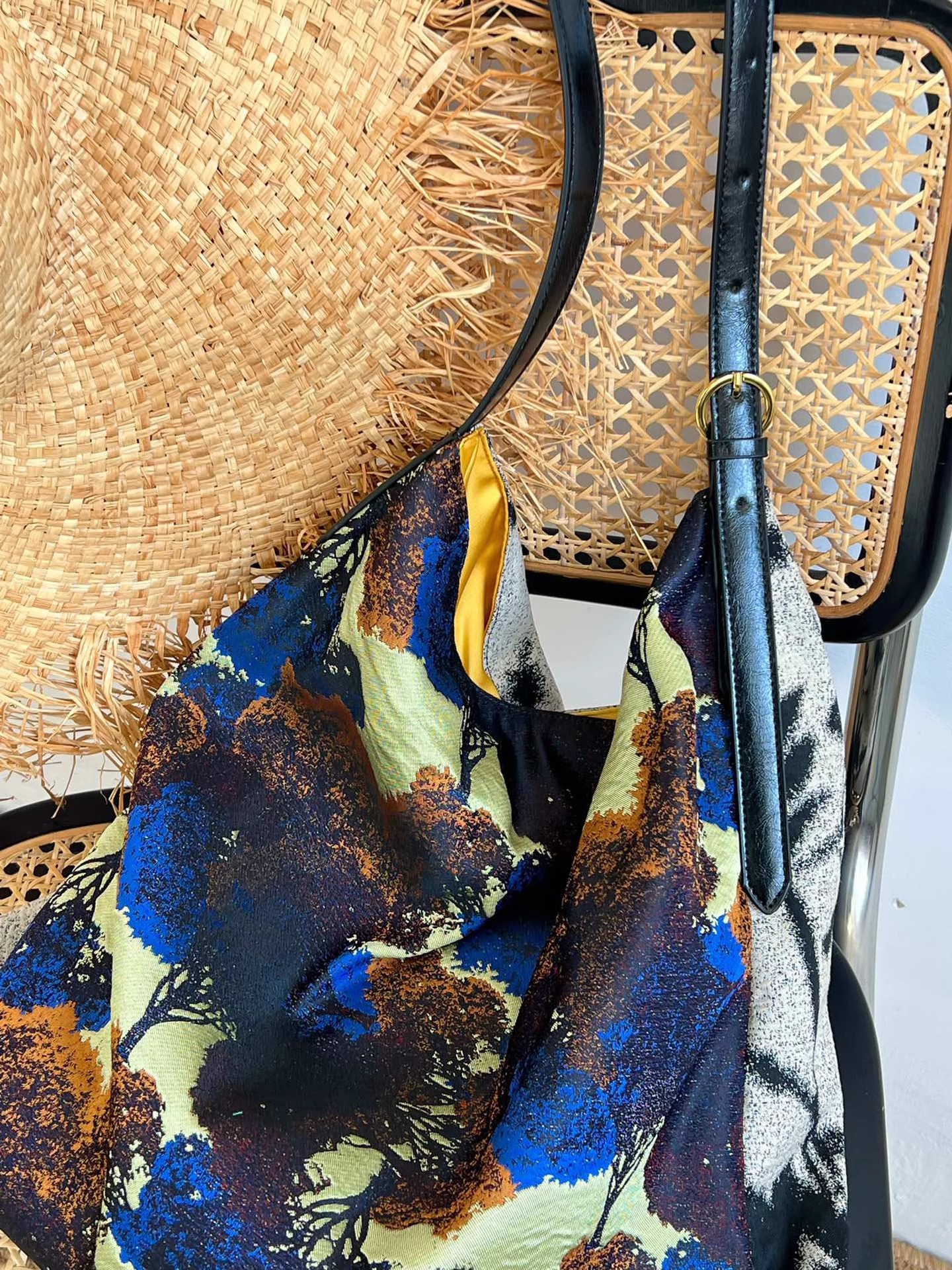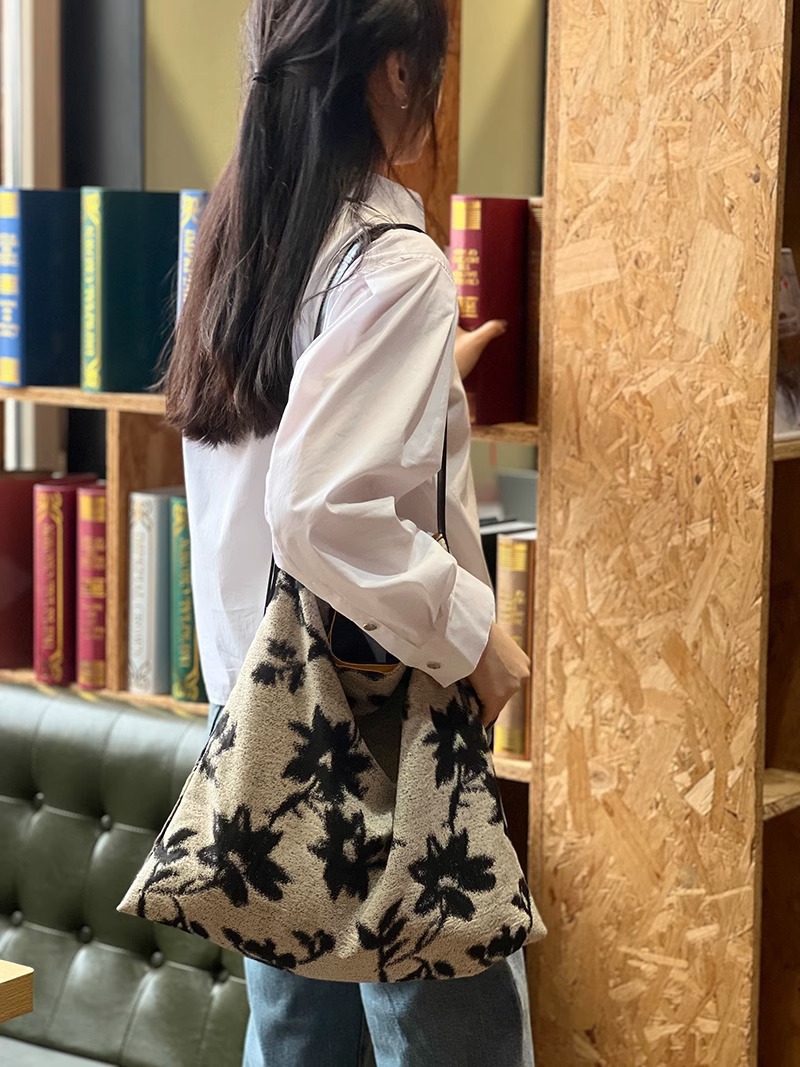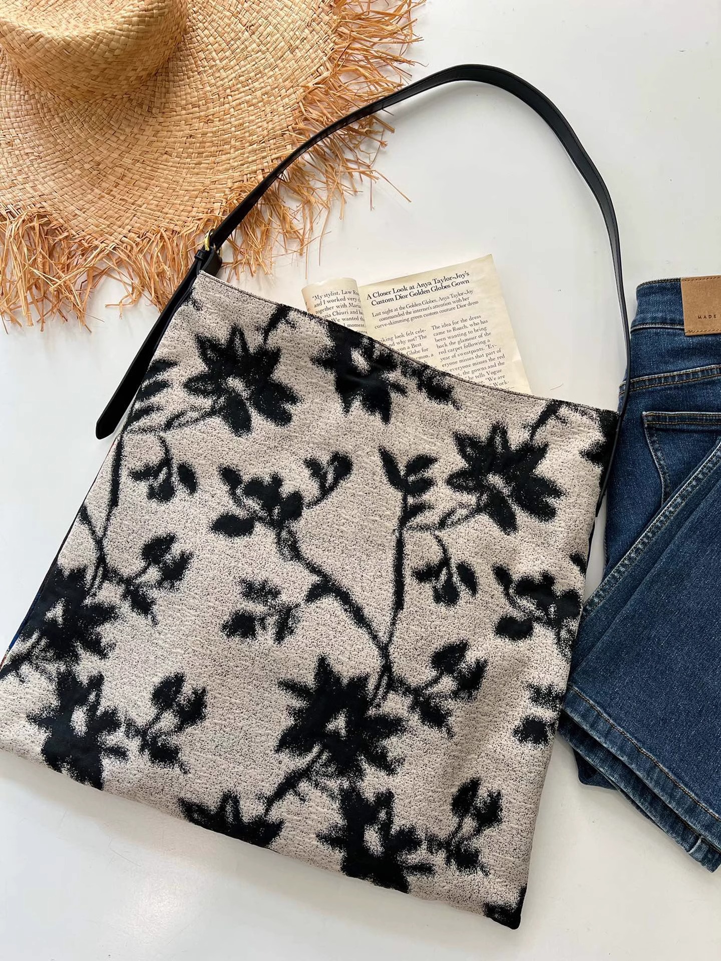 法式松弛感~复古时髦神秘森林油画印花双面单肩休闲背包托特女包