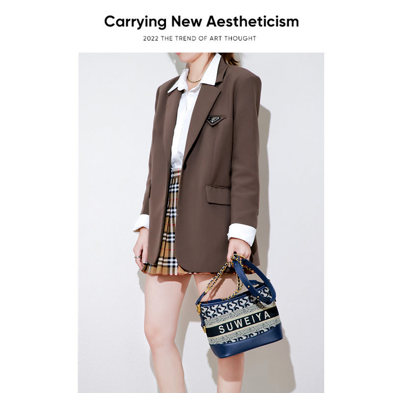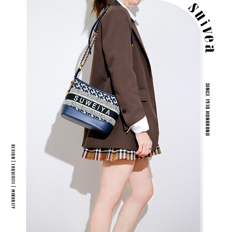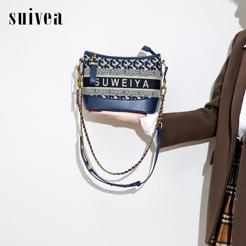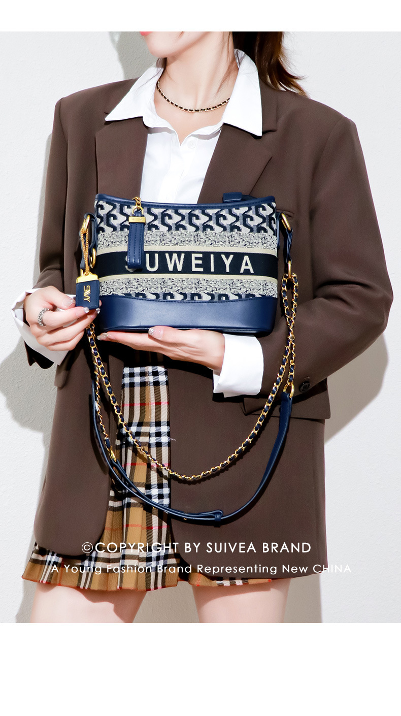 流浪包2025新款休闲女包针织刺绣字母斜跨包欧美时尚女士单肩包包