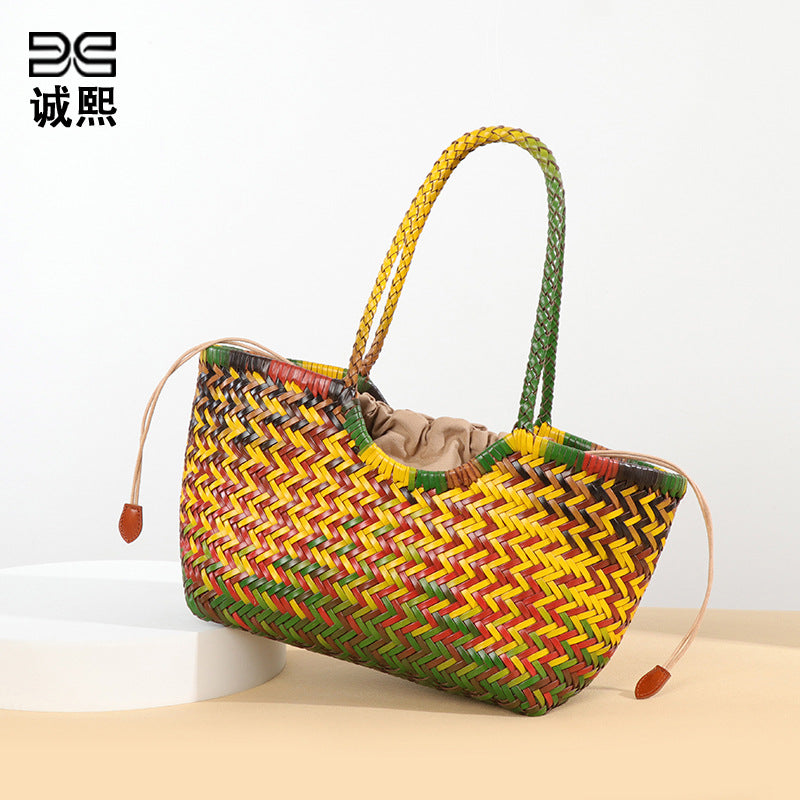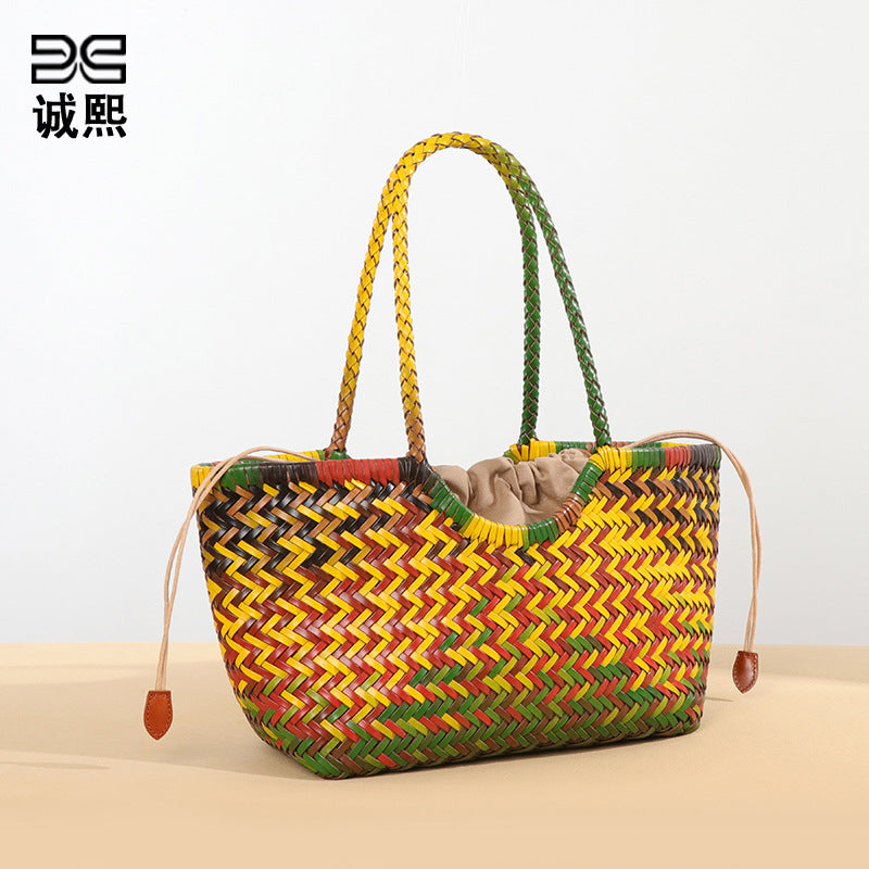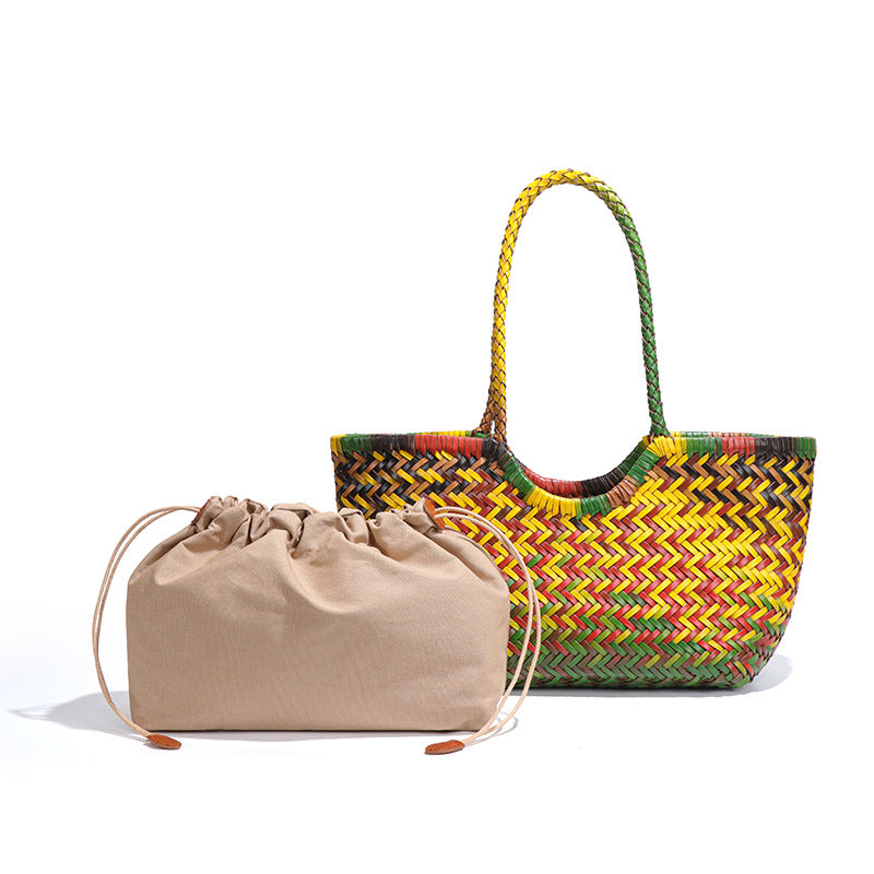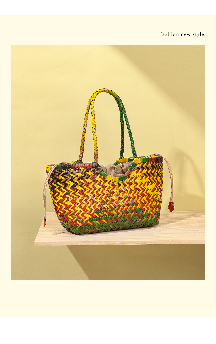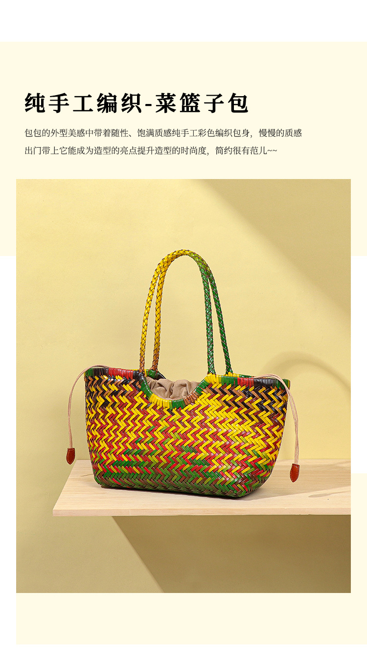 潮流定制彩色编织包时尚潮流菜篮子单肩腋下女包大容量手提子母包