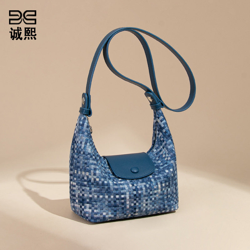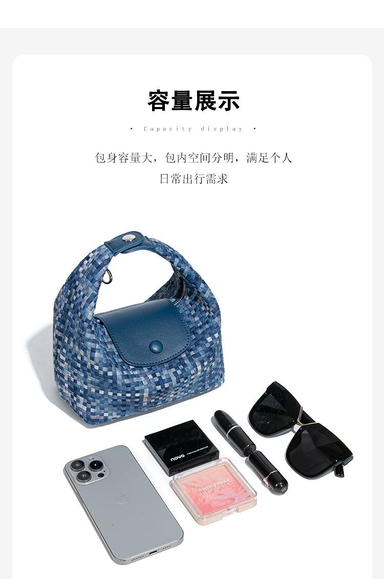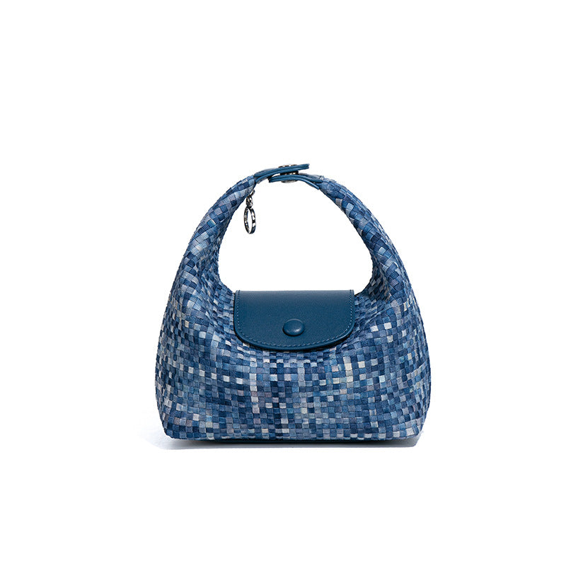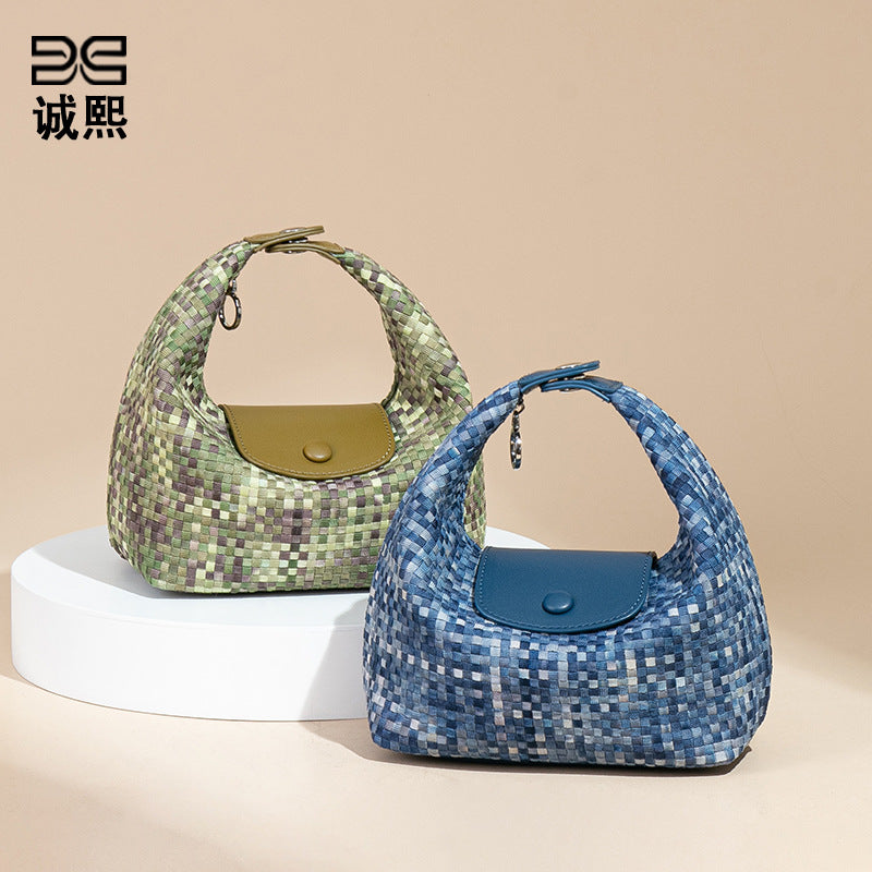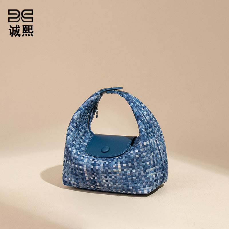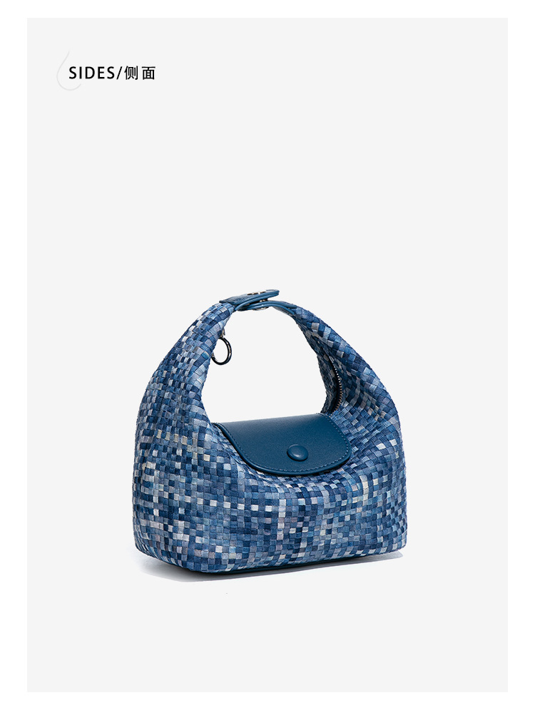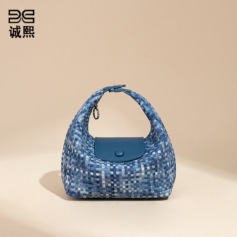 潮流新款拼接手拎饭盒包时尚手工编织女包休闲百搭小众单肩斜跨包