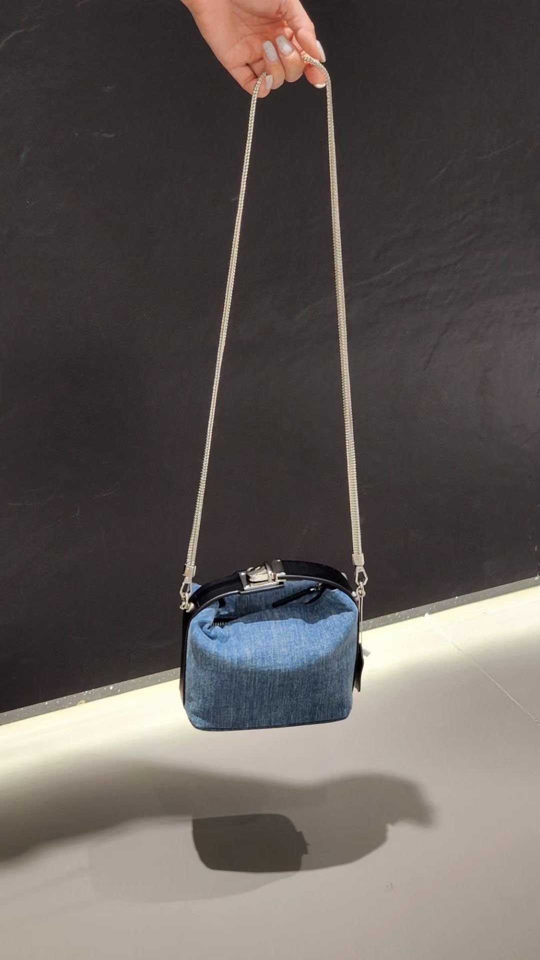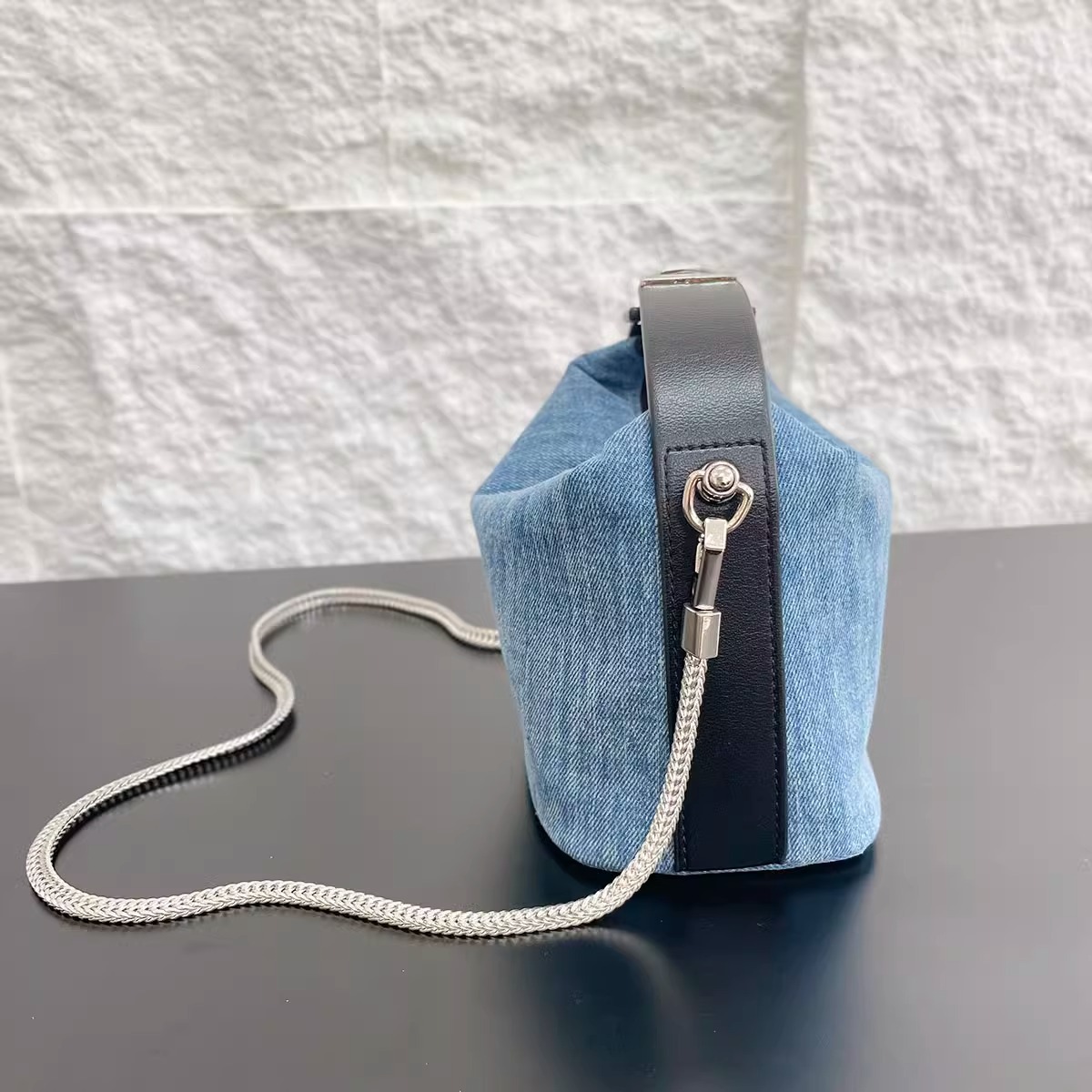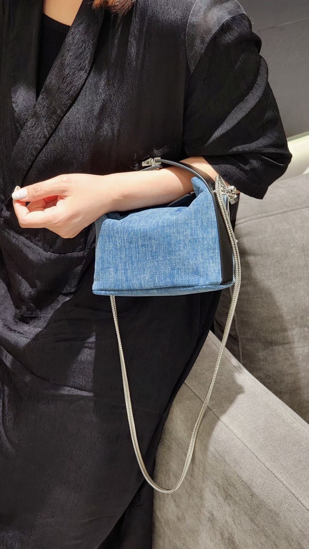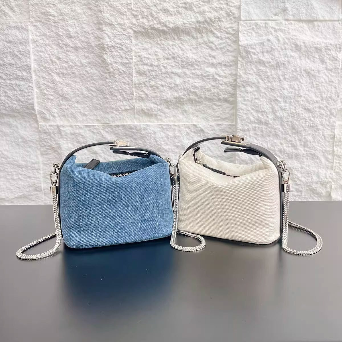 牛皮拼接牛仔布帆布手提饭盒包链条饺子包时尚百搭单肩斜挎小包女