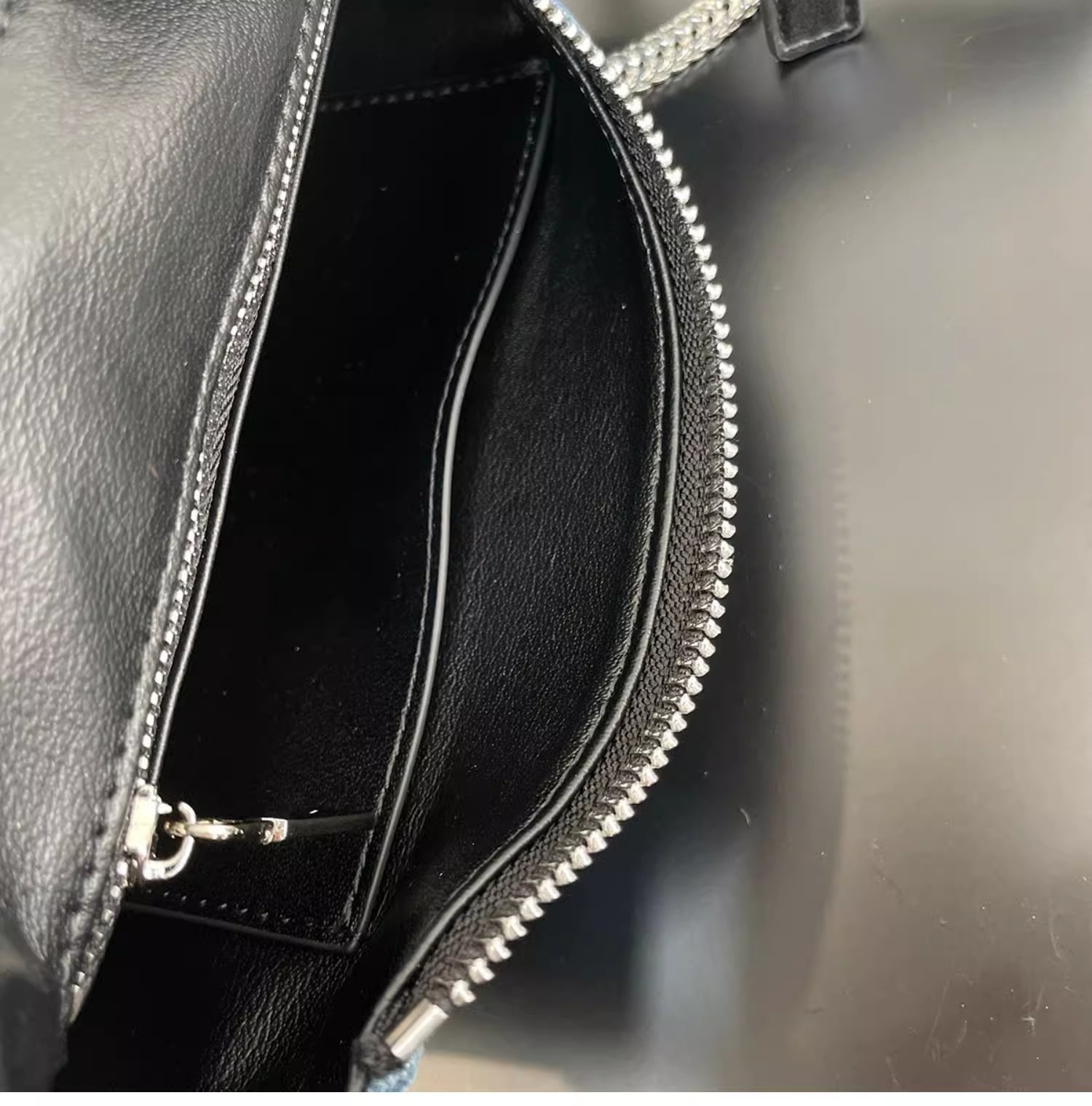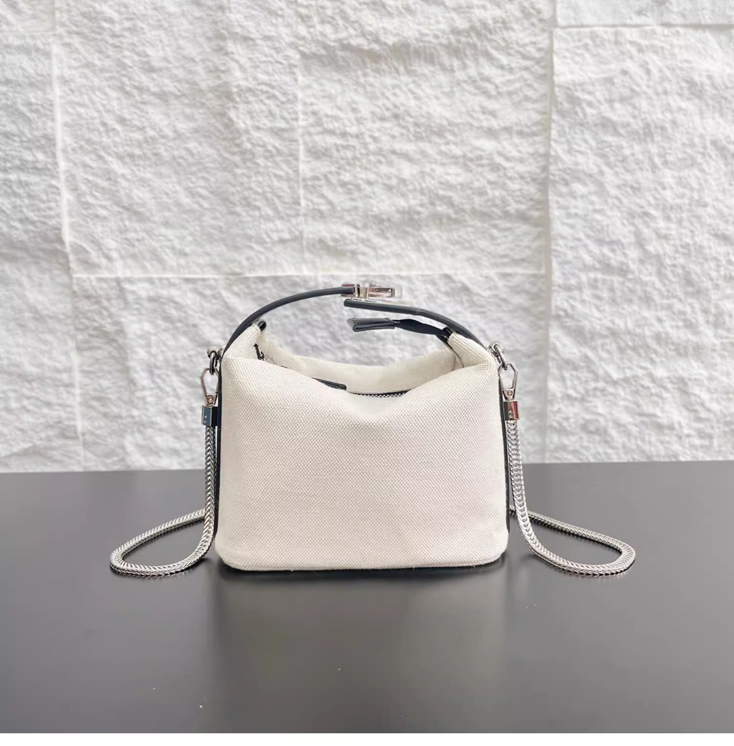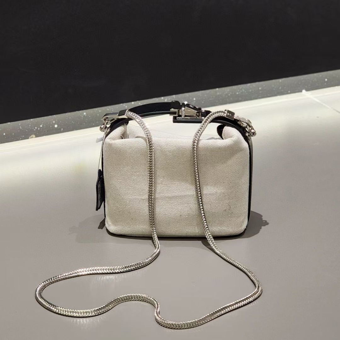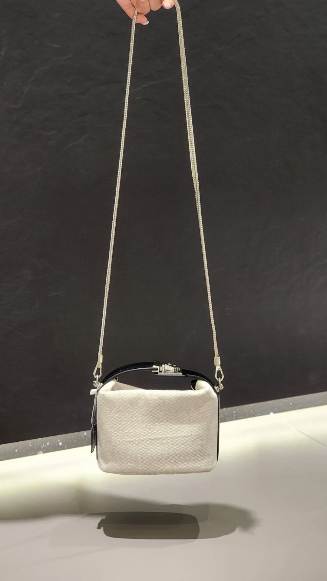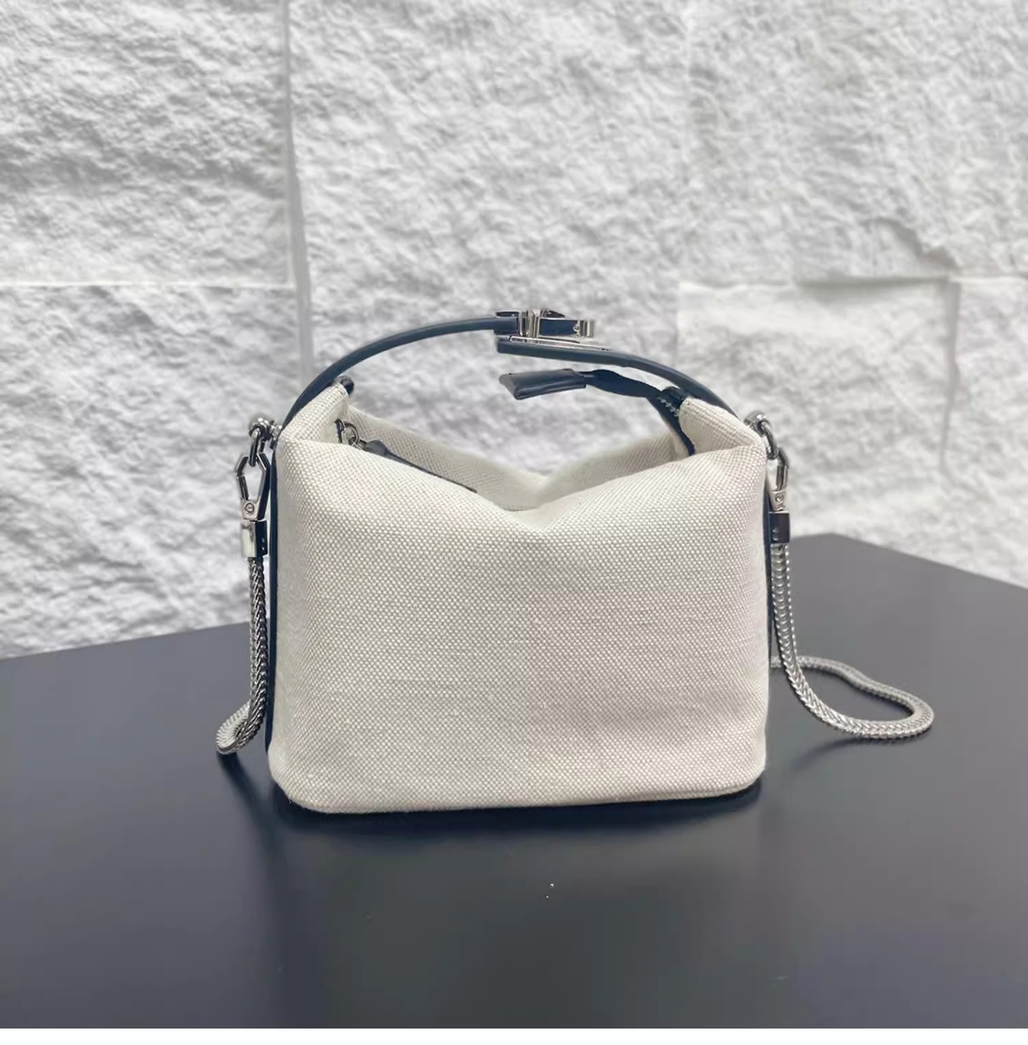 牛皮拼接牛仔布帆布手提饭盒包链条饺子包时尚百搭单肩斜挎小包女