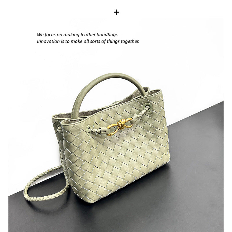 物著小众设计春季新款金属绳扣编织托特包单肩手提大容量复古女包