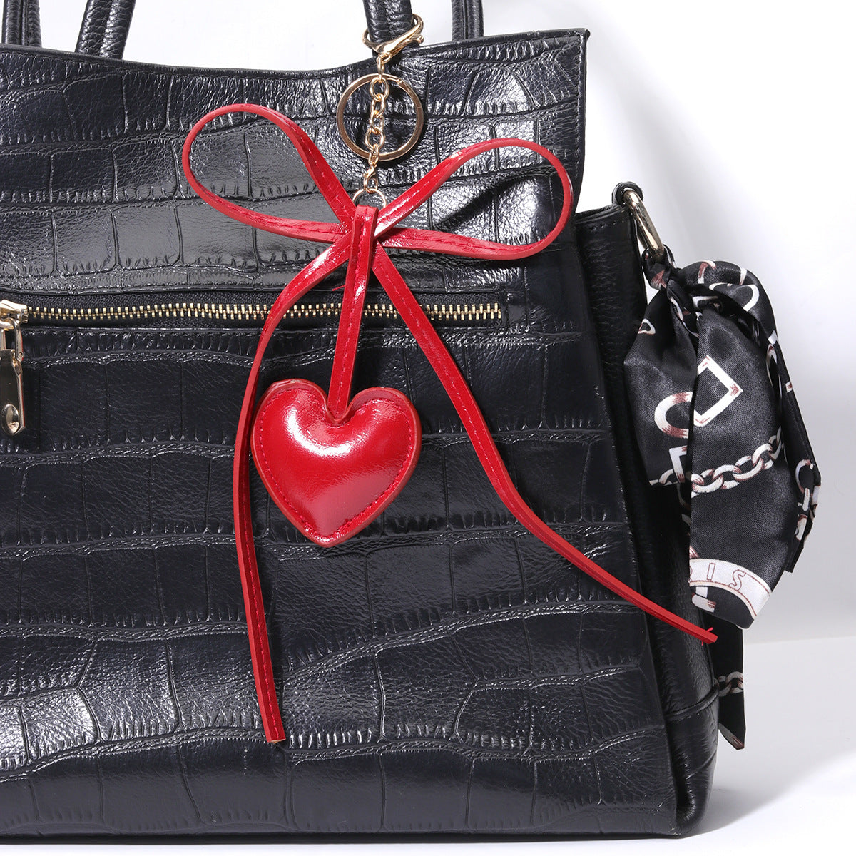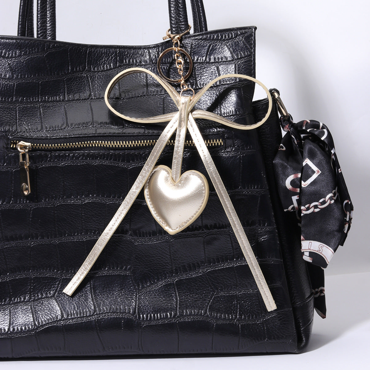 现货PU皮质桃心爱心蝴蝶结钥匙扣包挂diy包包挂件批发miu系包挂
