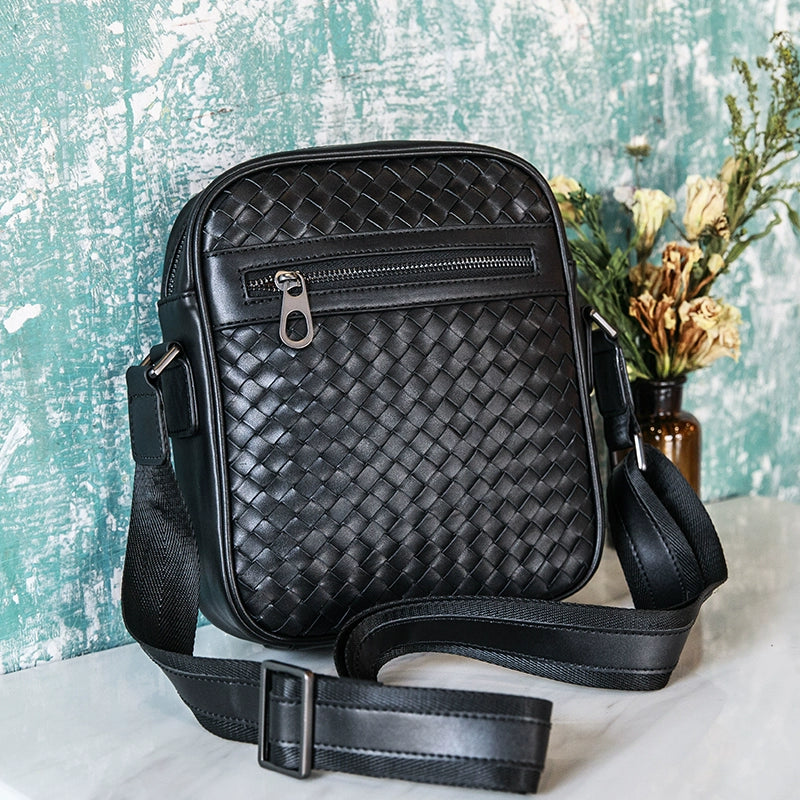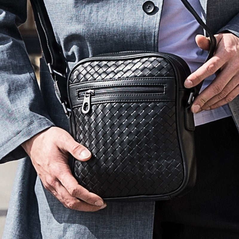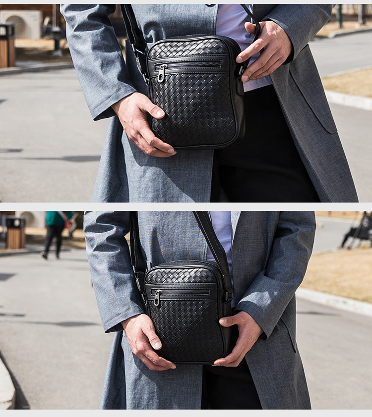 男单肩包真皮软皮小编织男包潮流时尚背包迷你牛皮竖款男士斜挎包