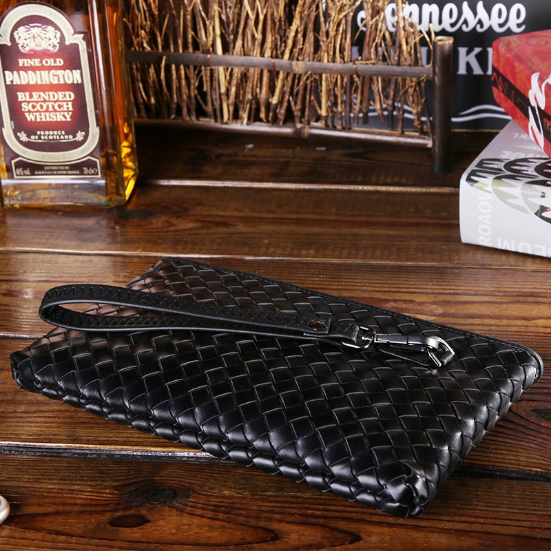 男士手包真皮大容量手拿包休闲男包软皮信封包编织头层牛皮手抓包