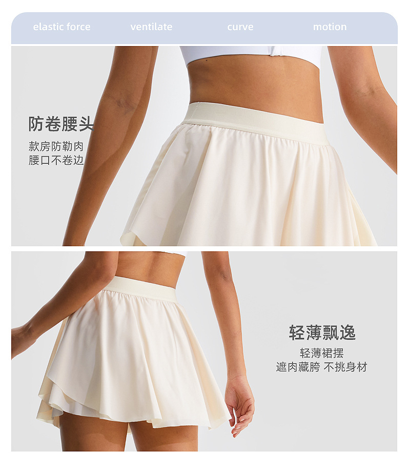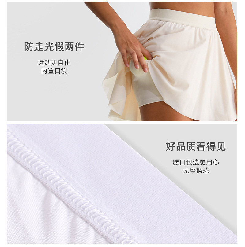 白色网球裙速干运动短裤女透气假两件瑜伽裤跑步防走光健身短裙