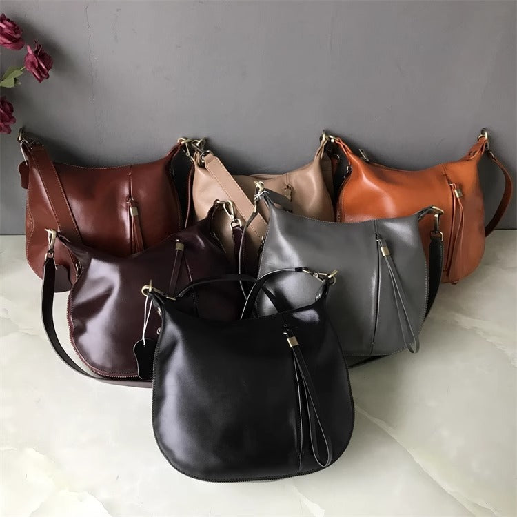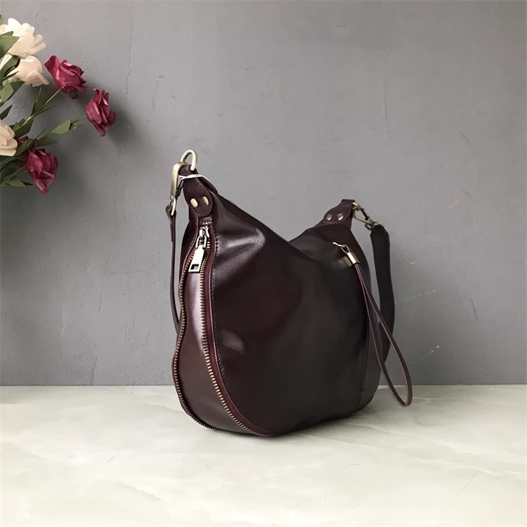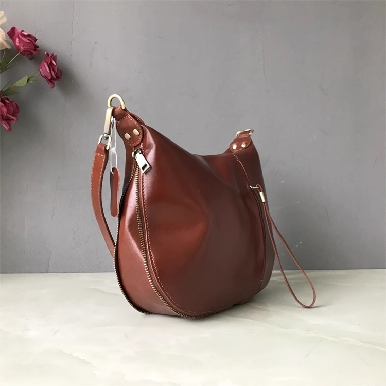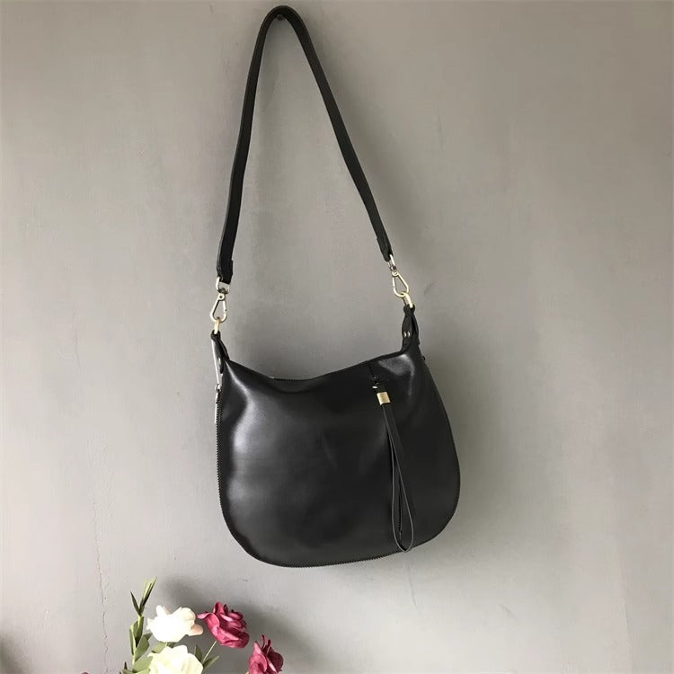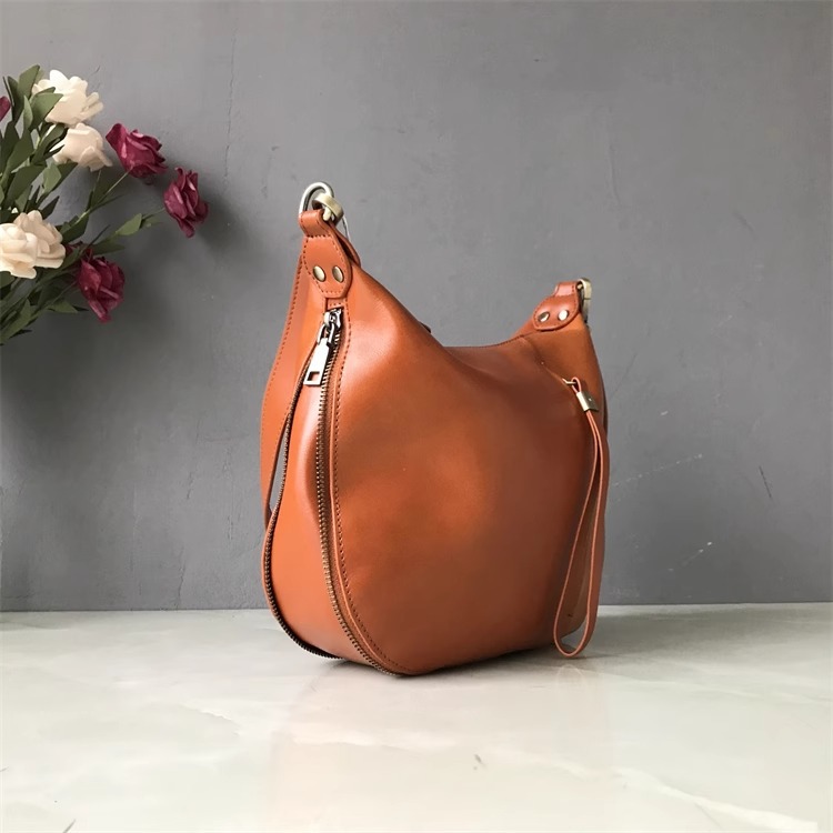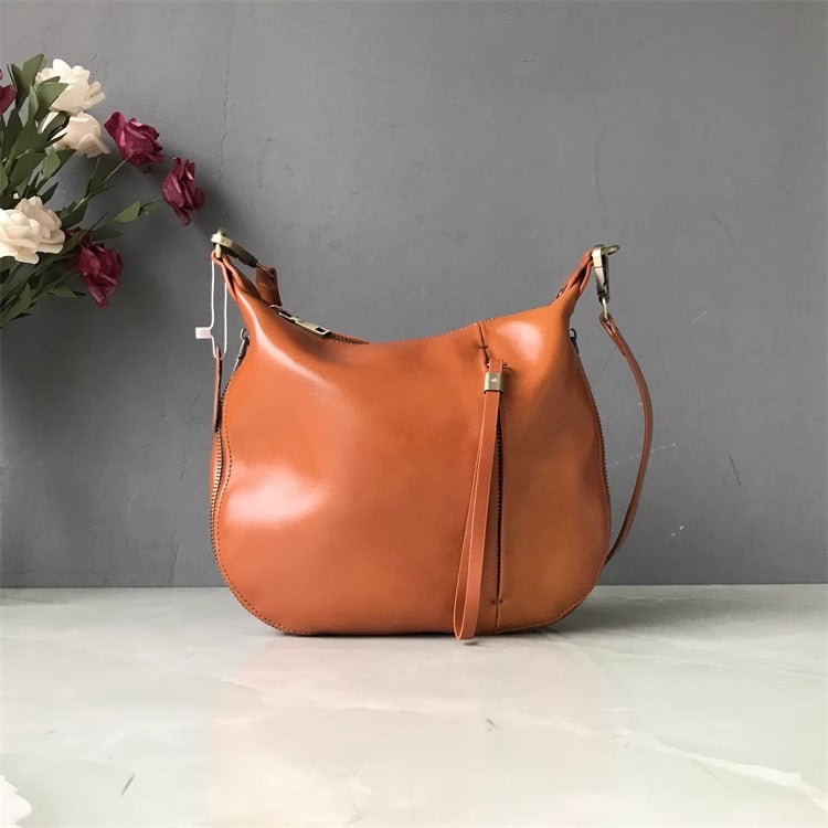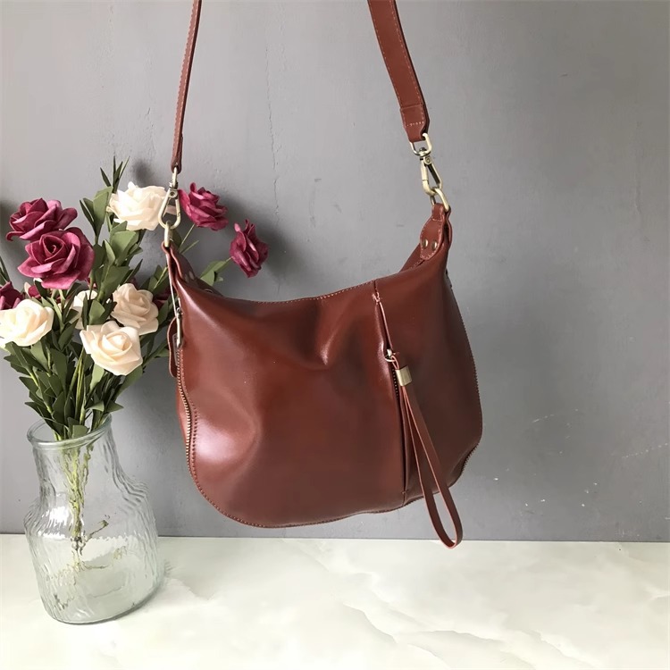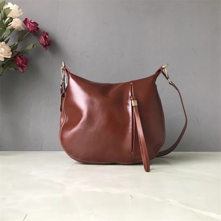 直播新款复古时尚马鞍包包女植鞣牛皮软皮质感小众设计单肩斜挎包
