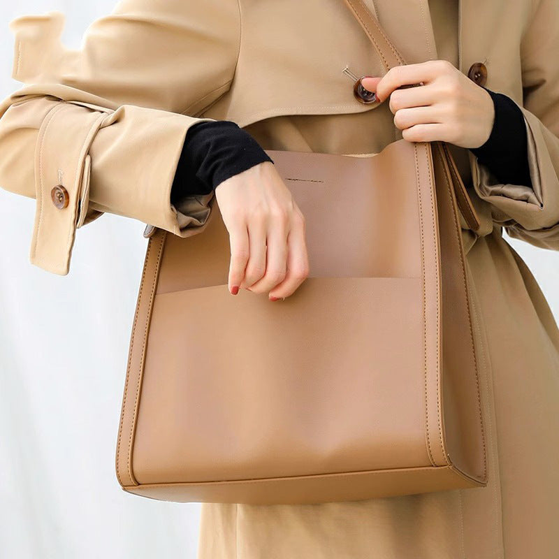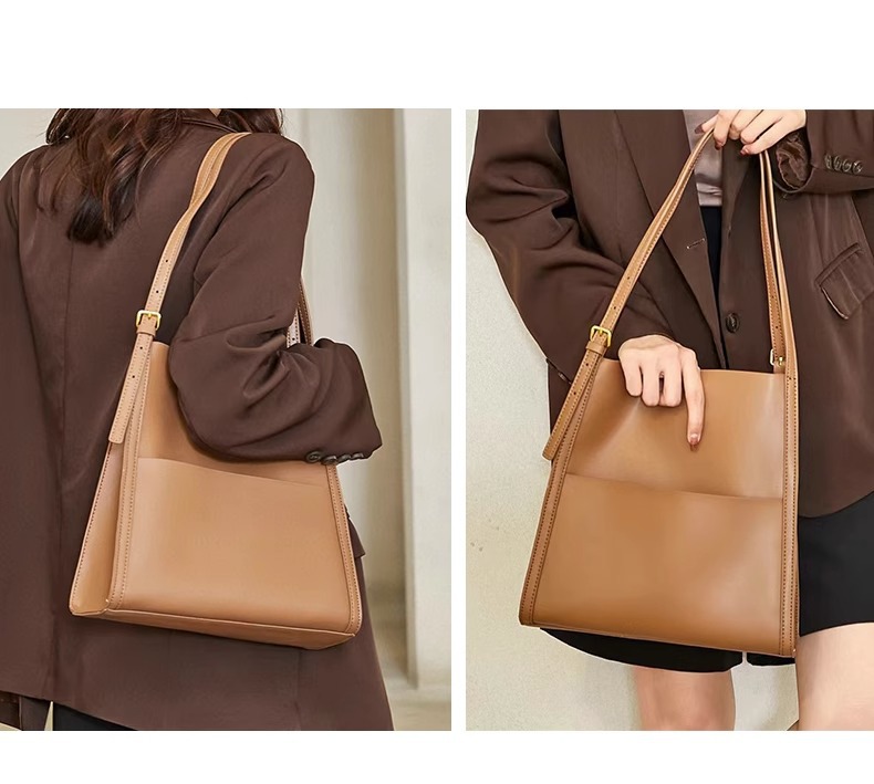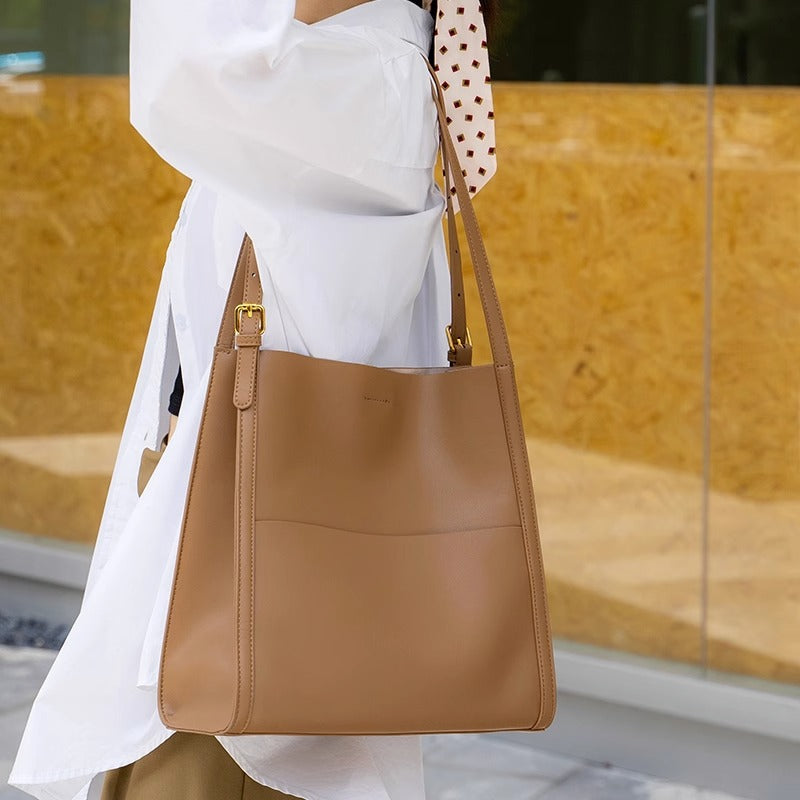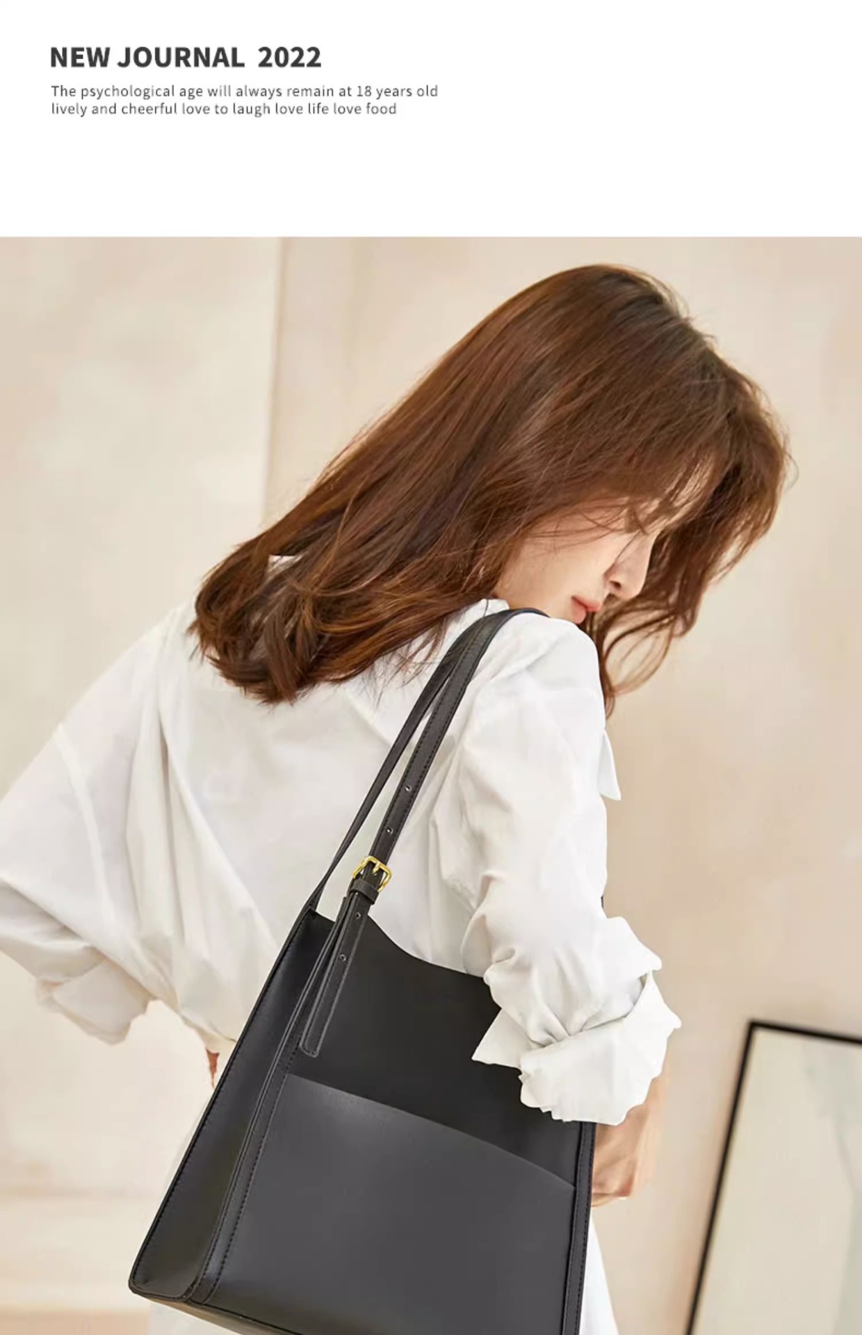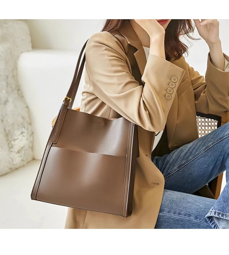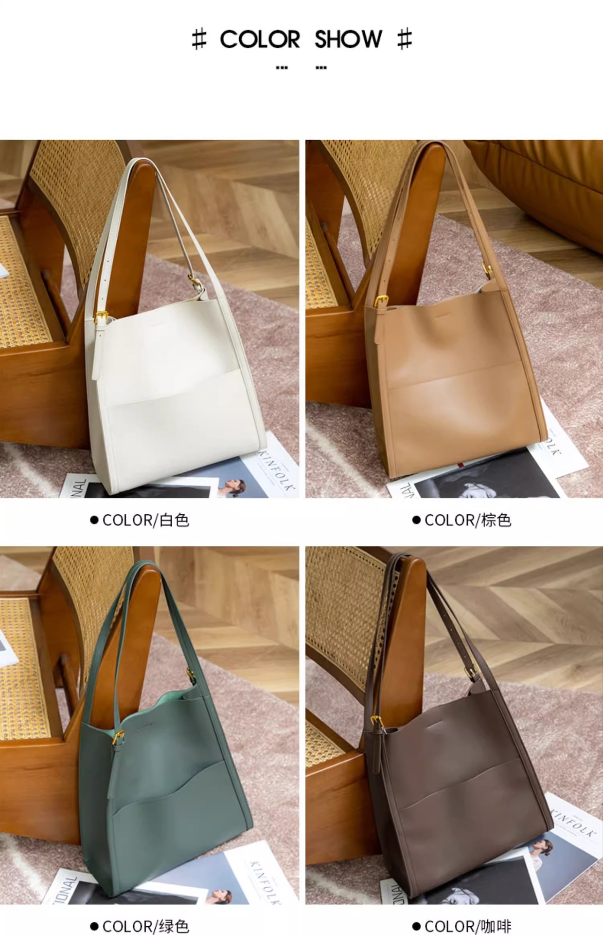 真牛皮包包女ins风百搭时尚大容量托特大包通勤上班水桶包女 代发