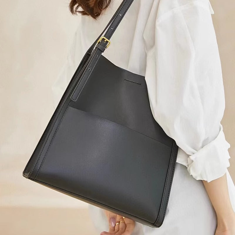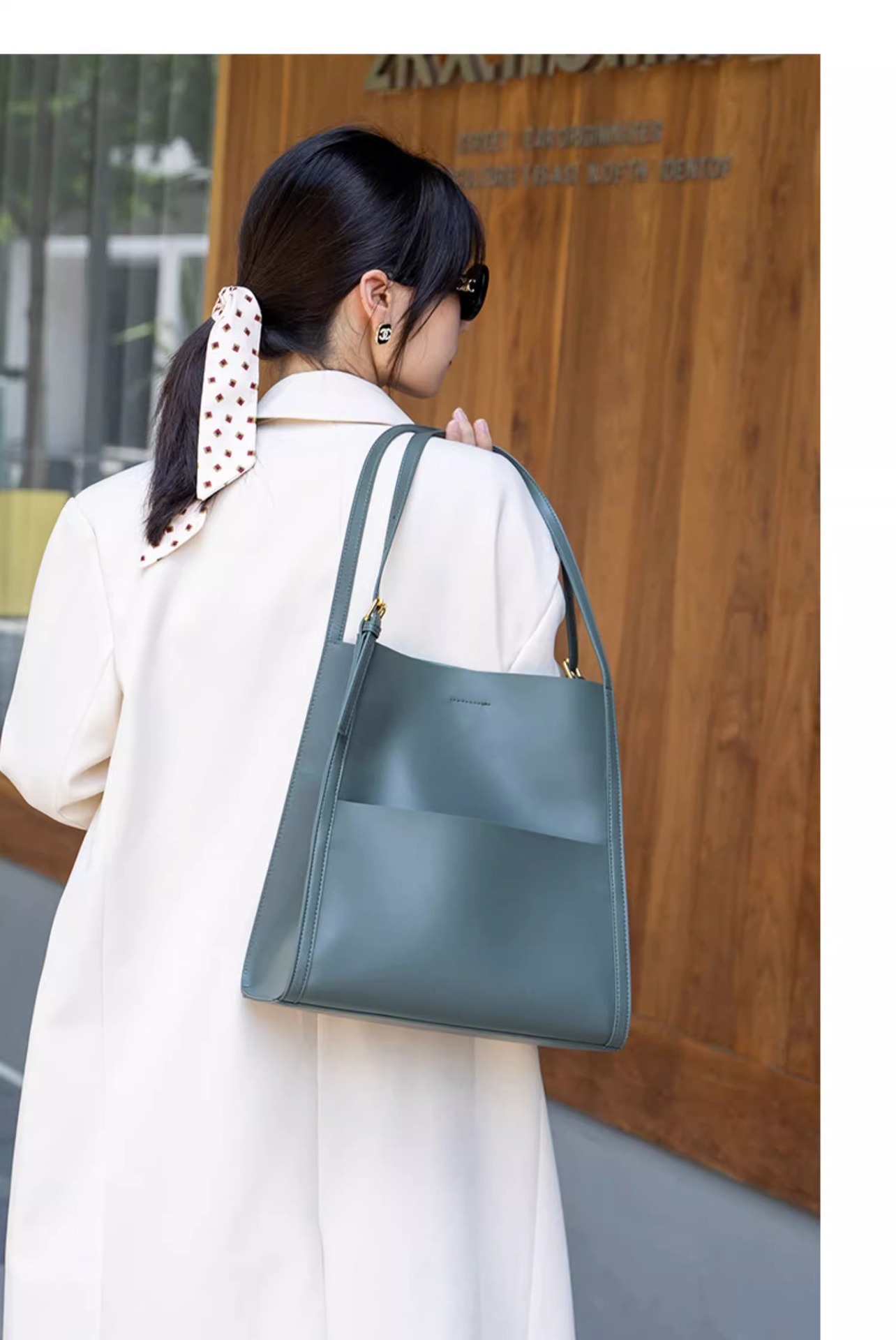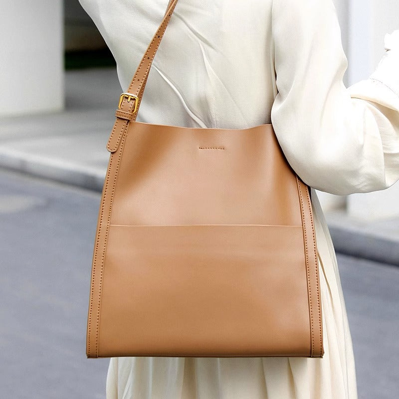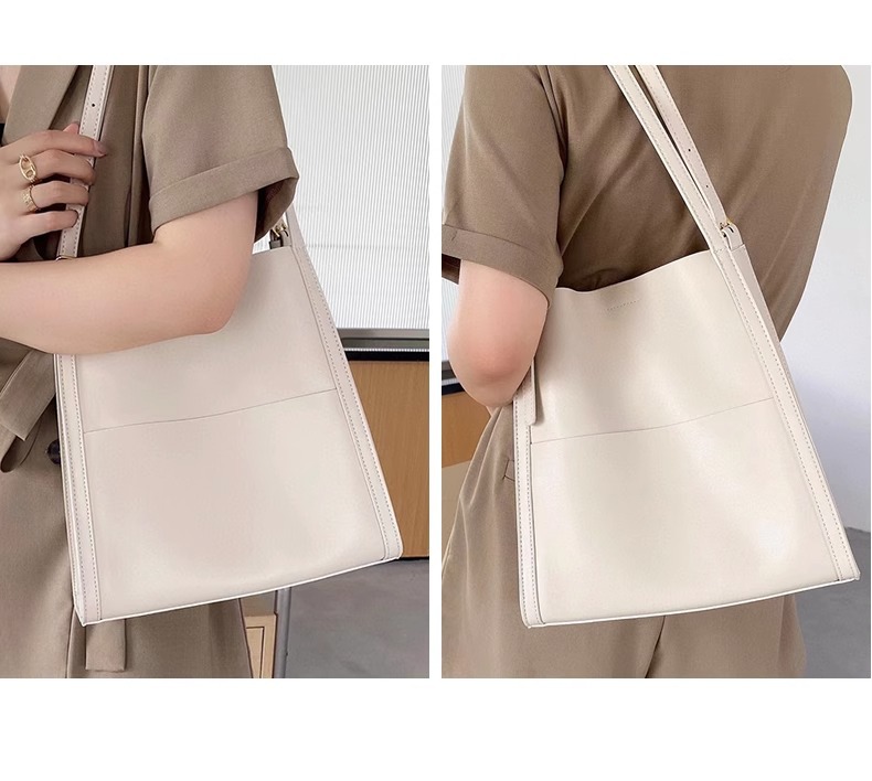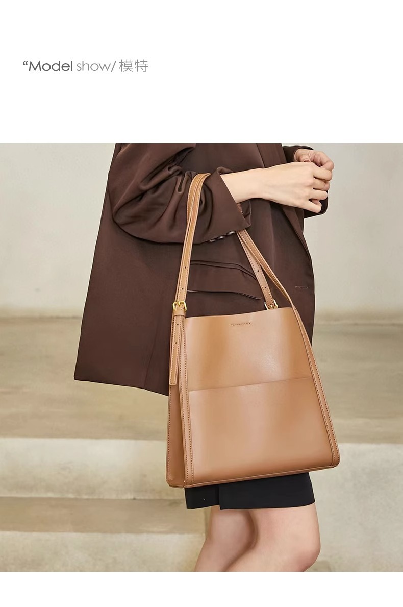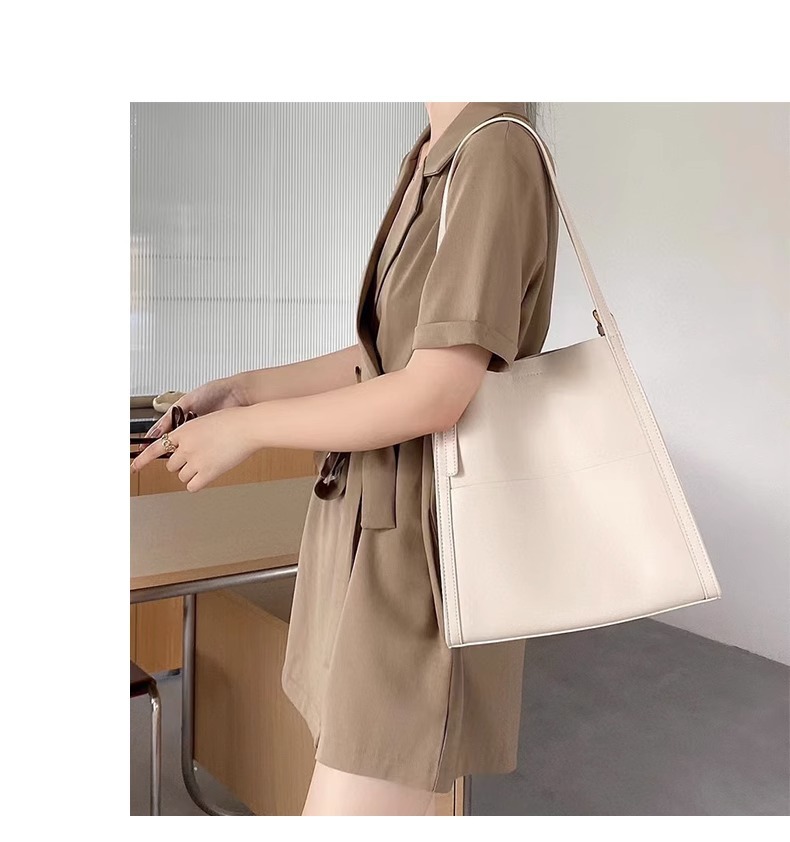 真牛皮包包女ins风百搭时尚大容量托特大包通勤上班水桶包女 代发