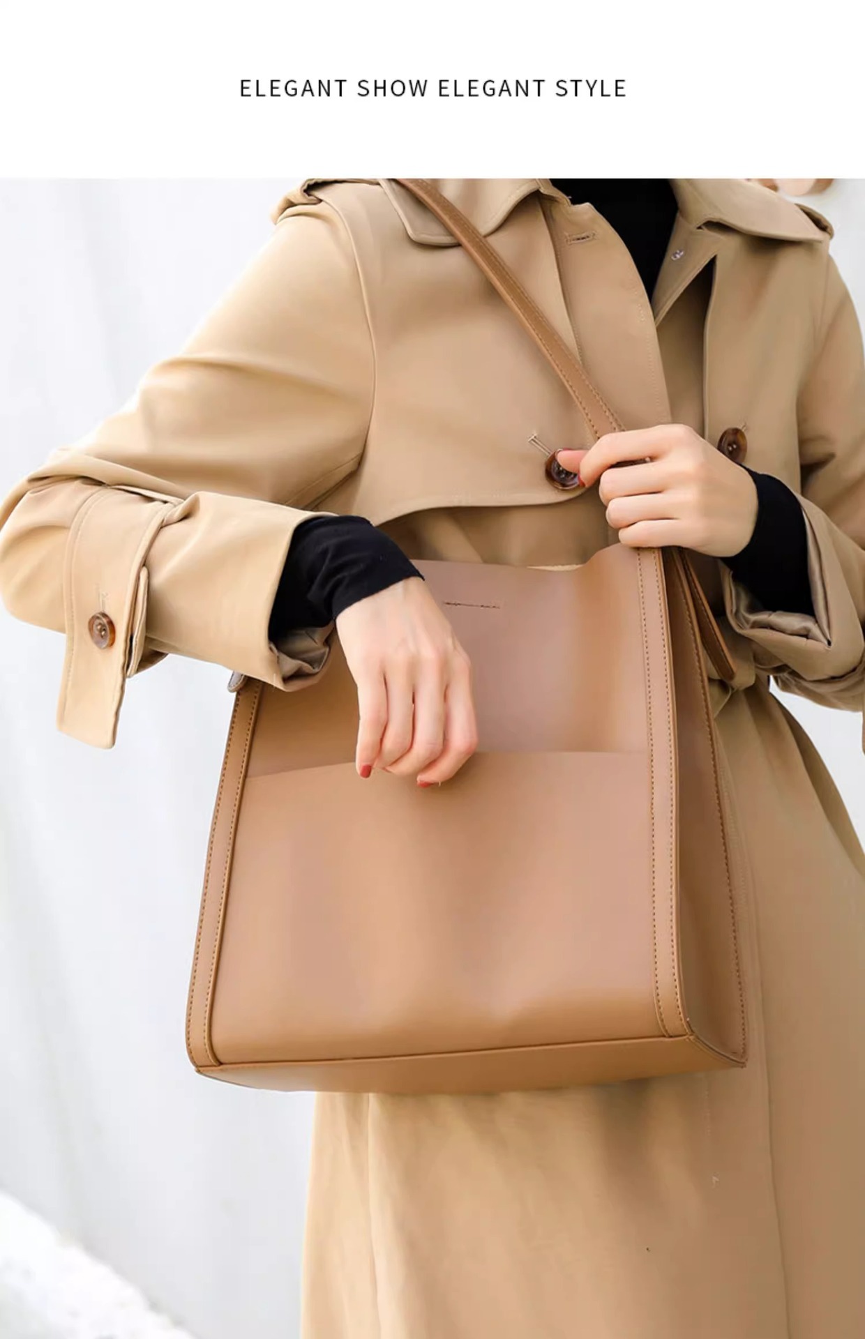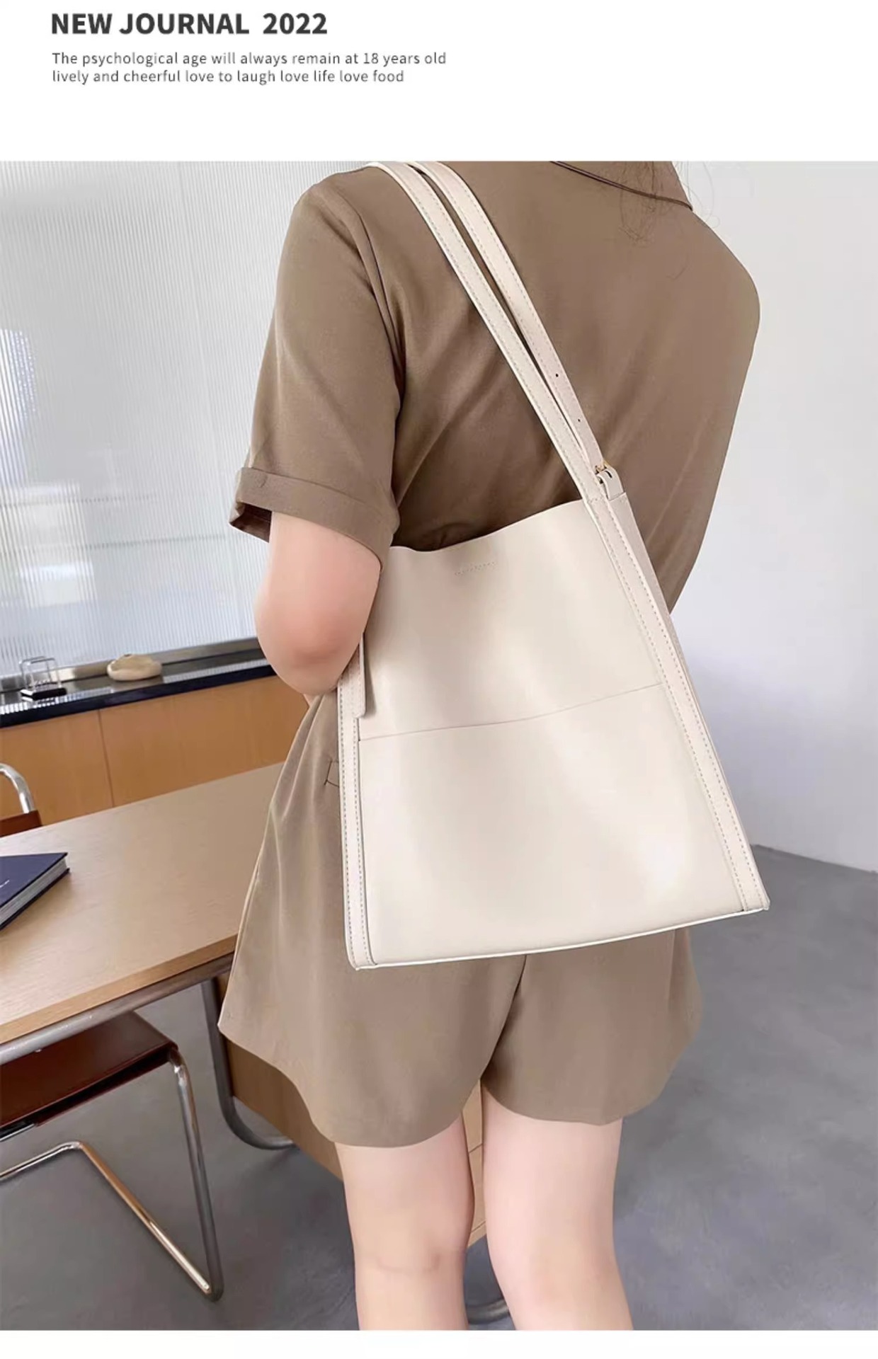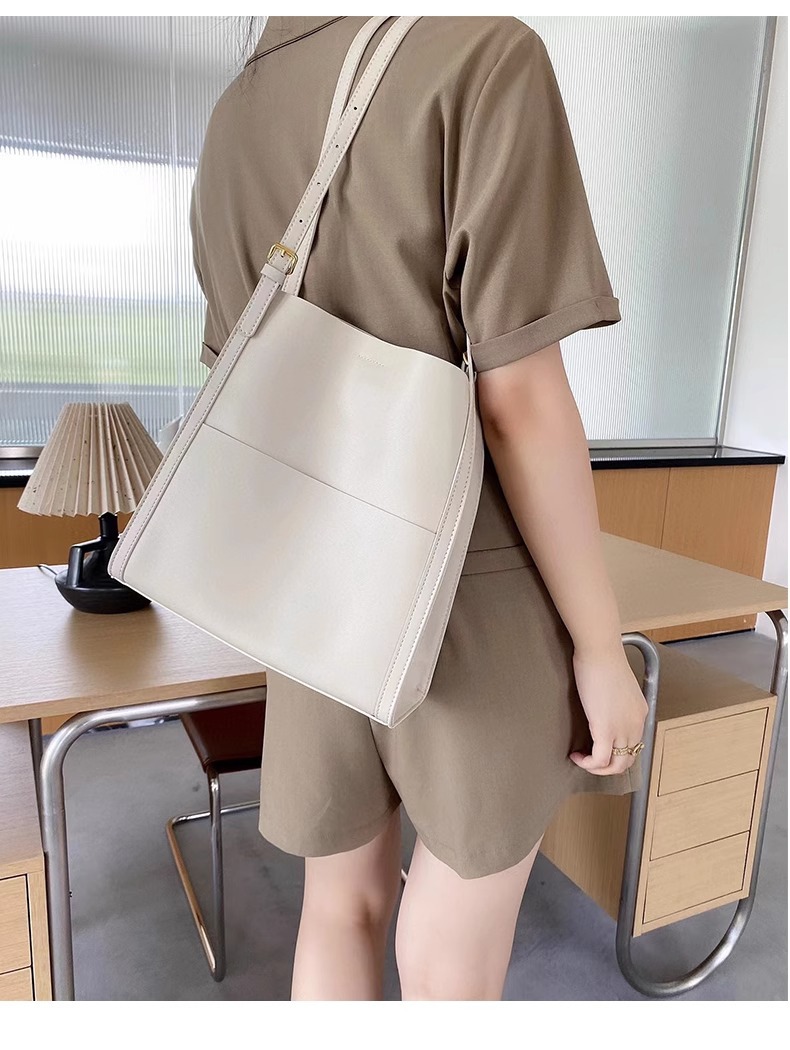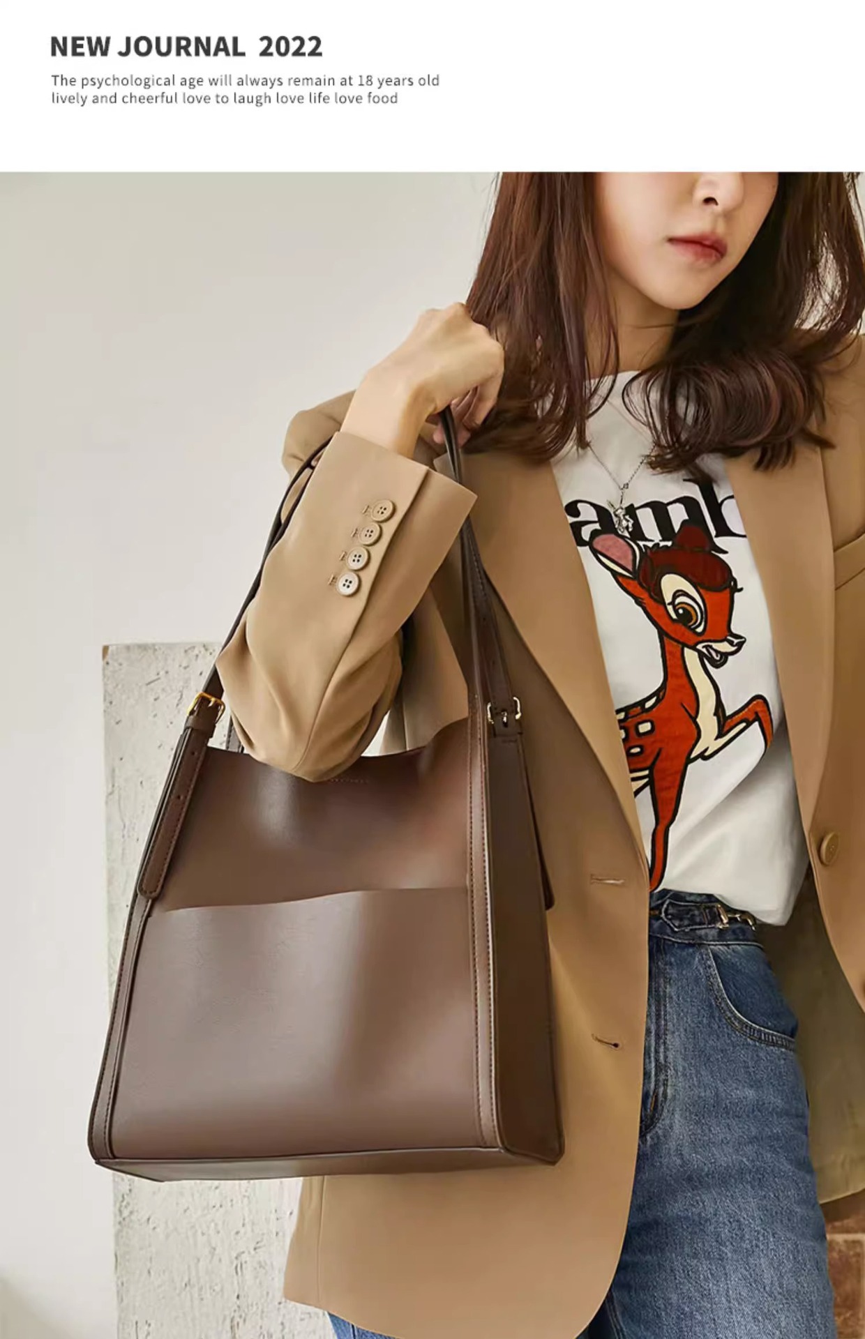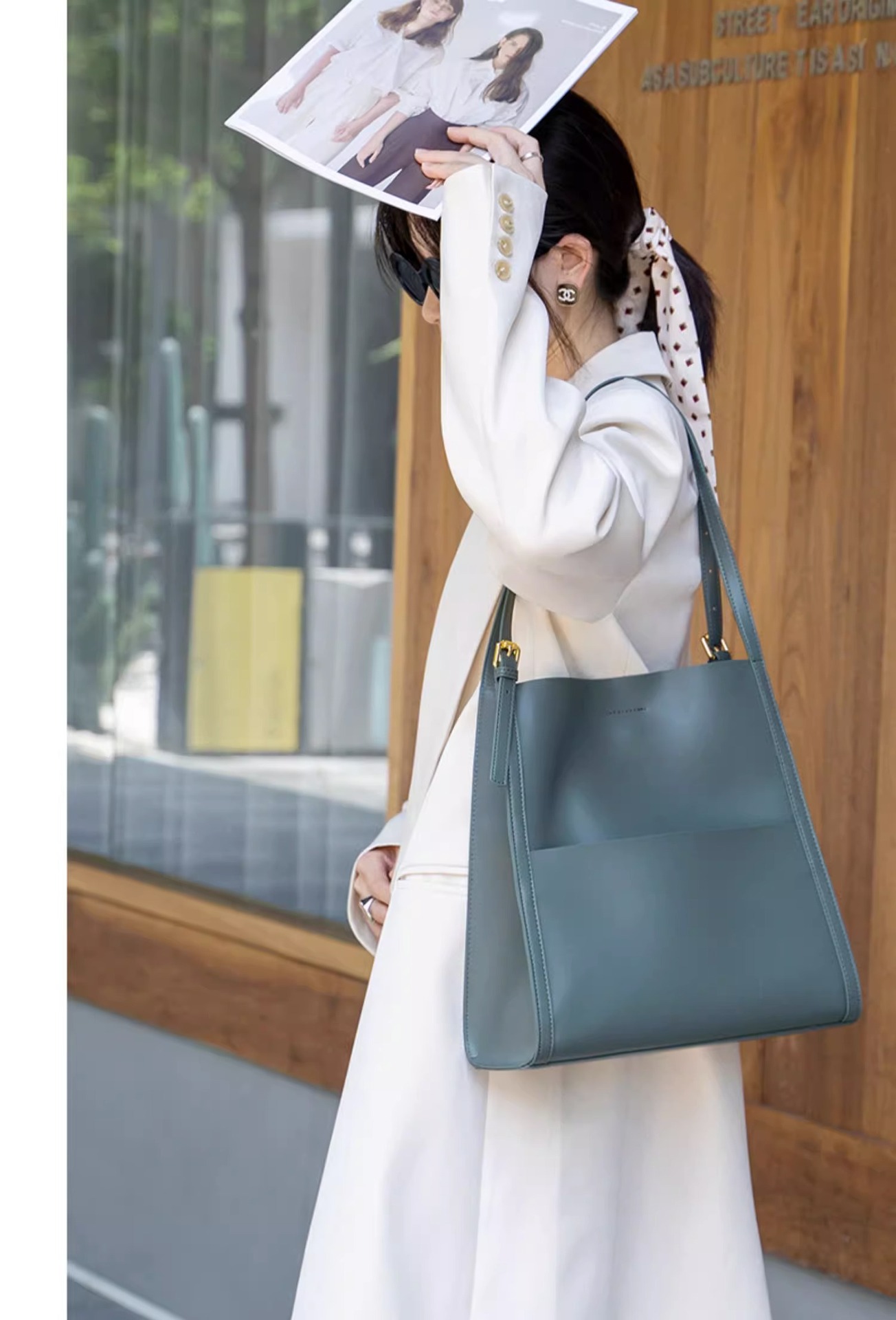 真牛皮包包女ins风百搭时尚大容量托特大包通勤上班水桶包女 代发