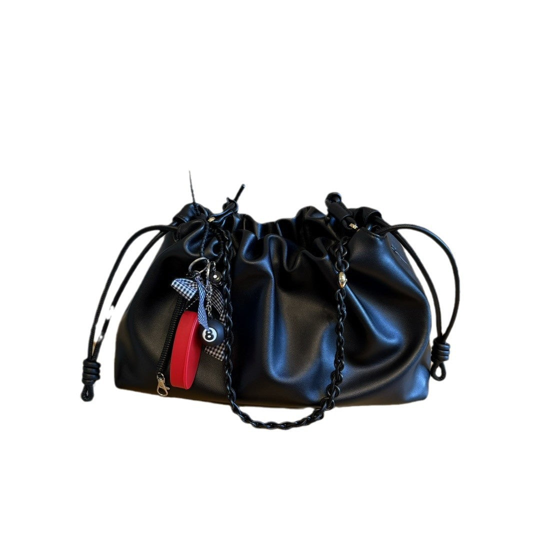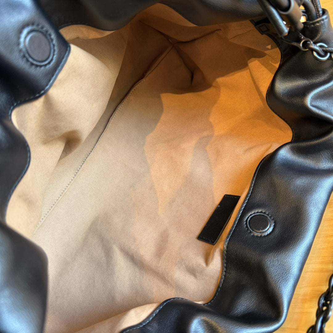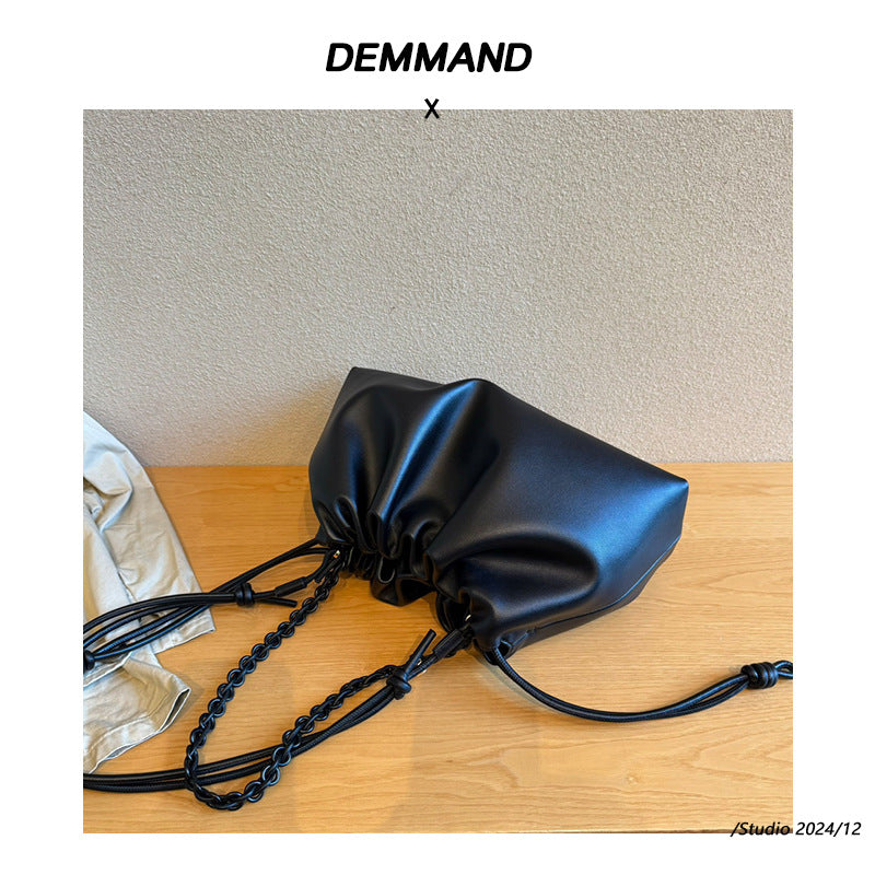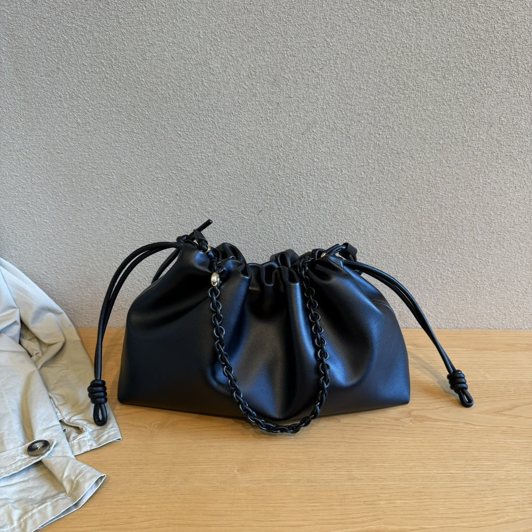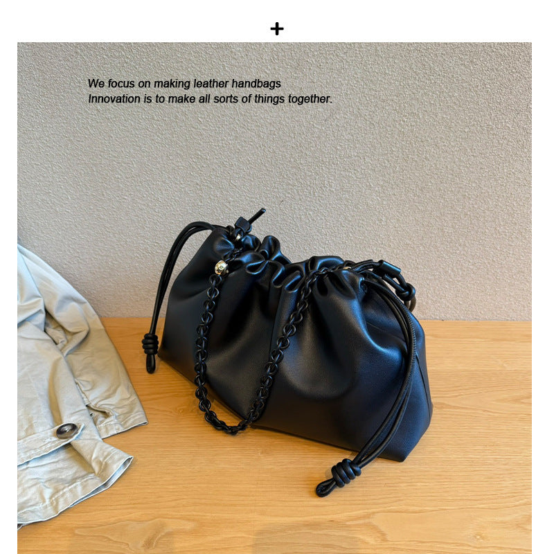 真皮云朵包2024新款时尚单肩包链条牛皮抽带包包斜挎包软皮手拿包