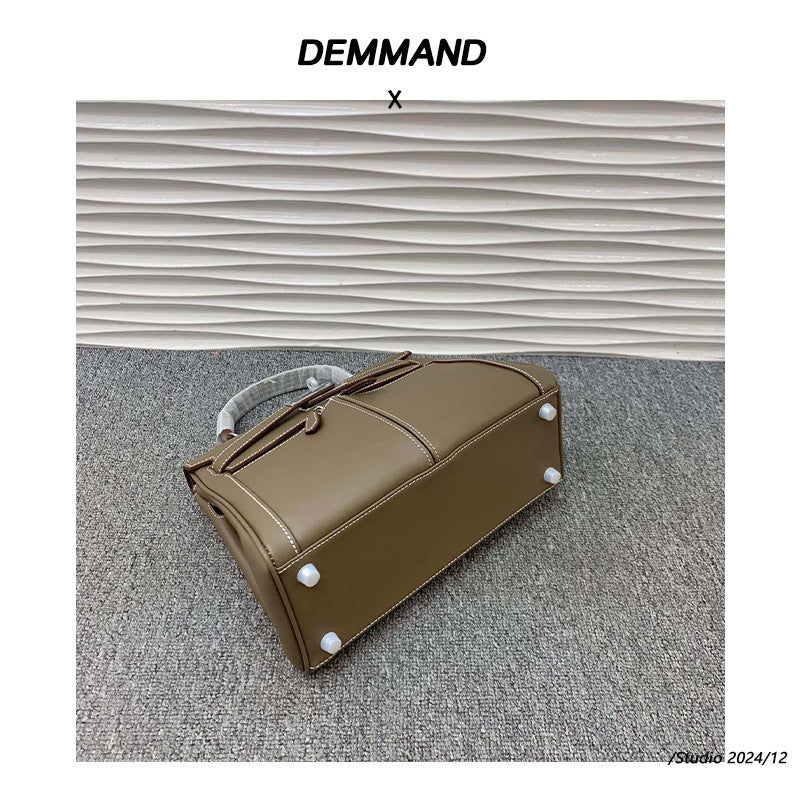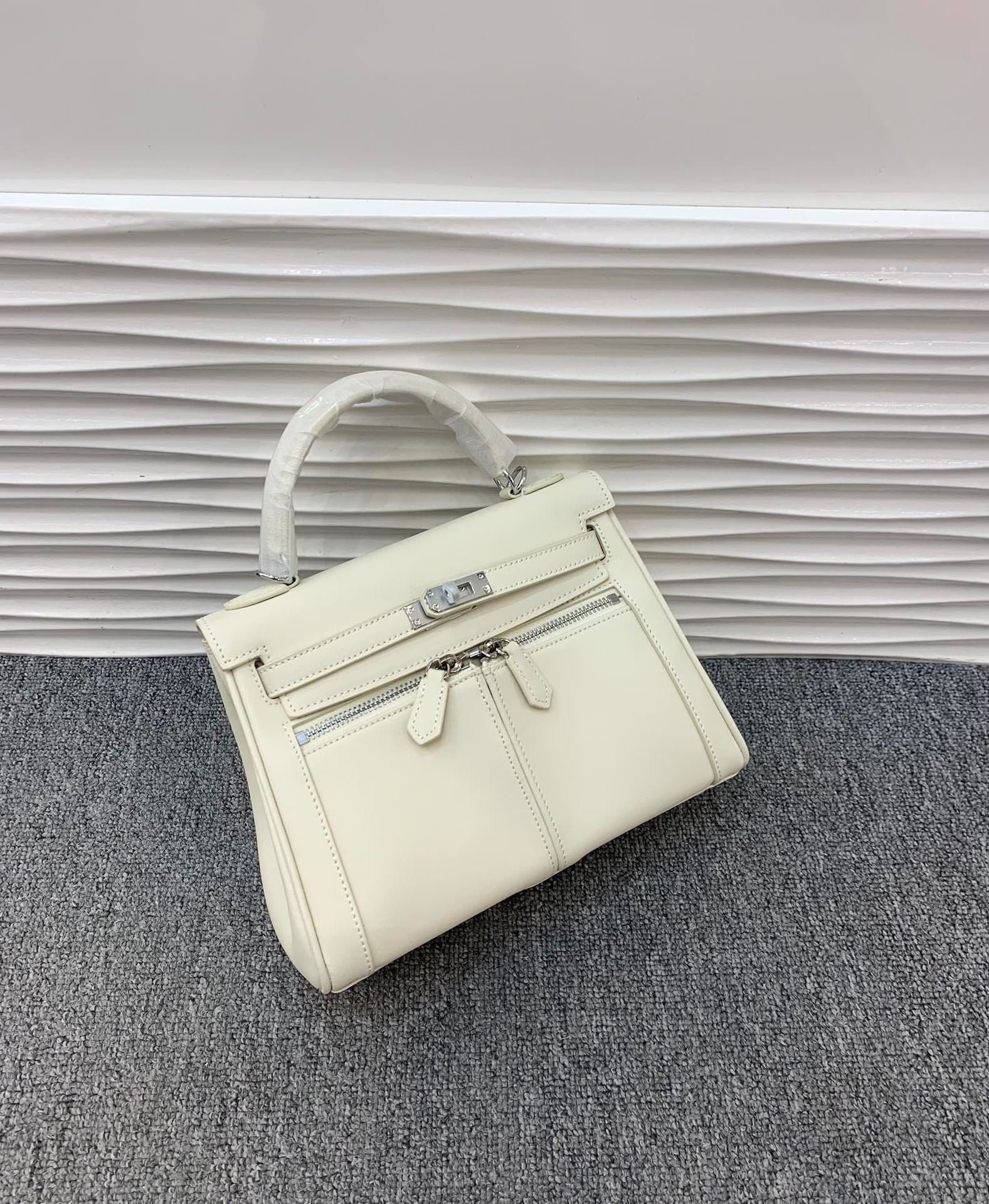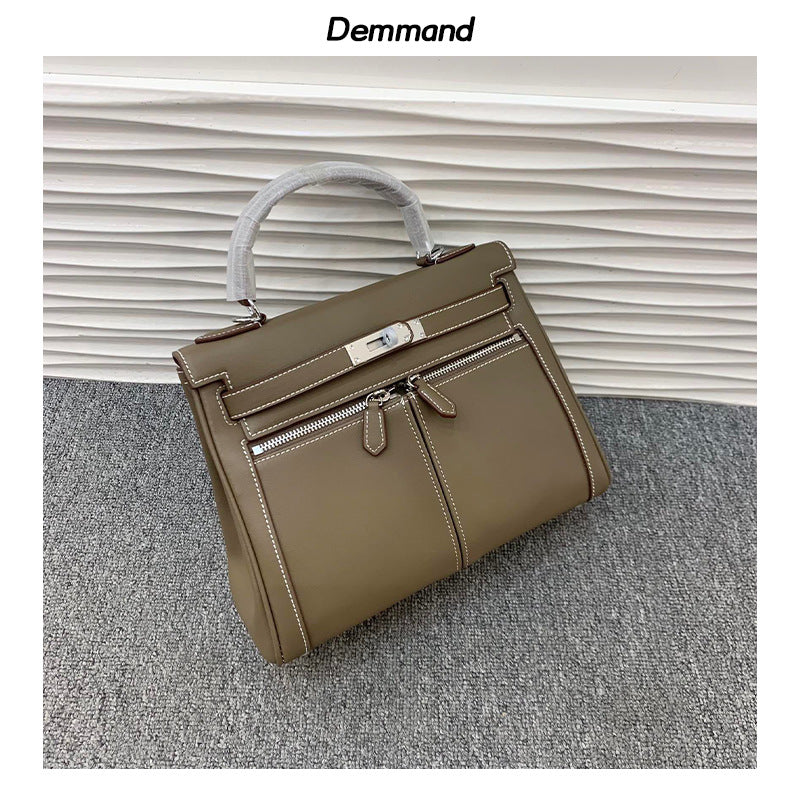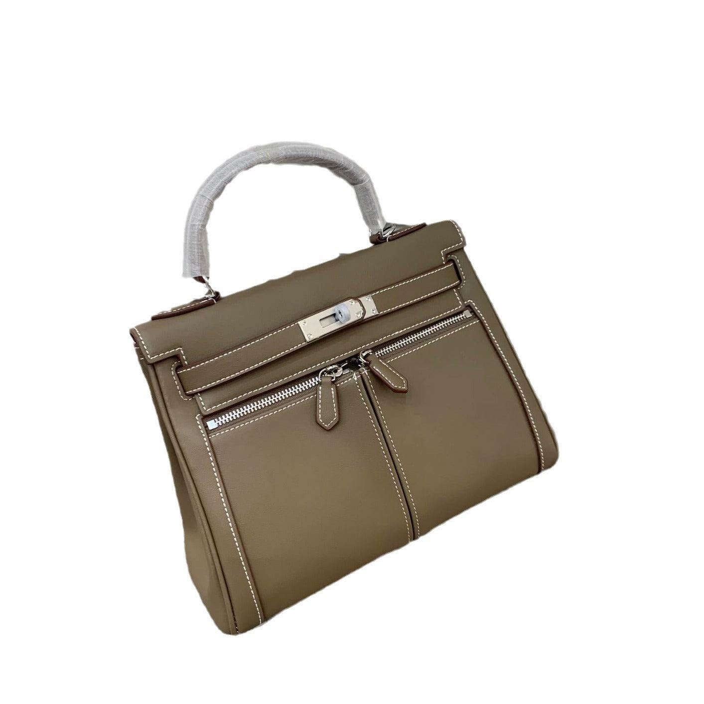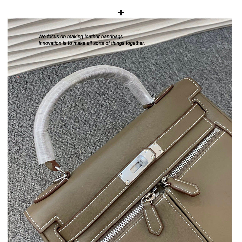 真皮复古双口袋凯莉包包女高级感大容量手提包百搭通勤单肩斜挎包