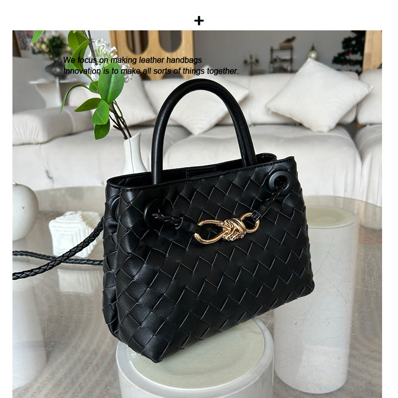 真皮手拎包外贸高级编织包跨境时尚羊皮手提包大容量单肩斜跨包女