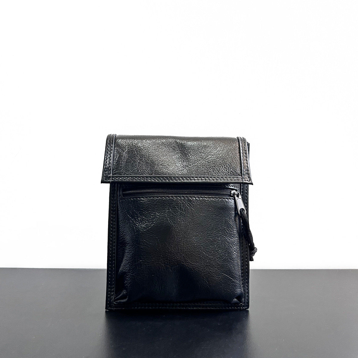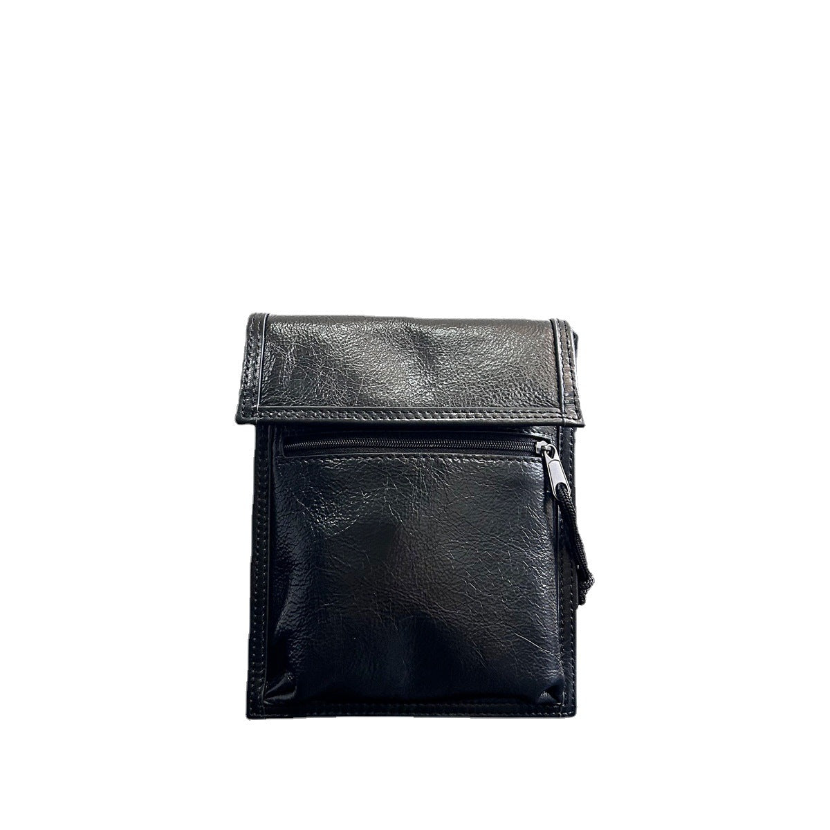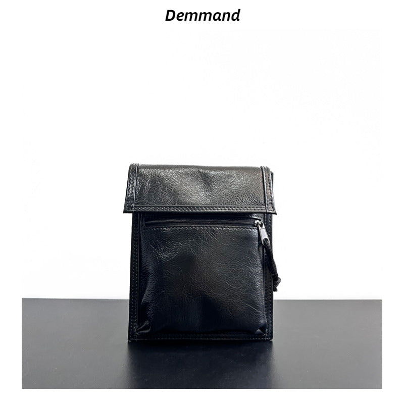 真皮手机包女斜挎包褶皱油蜡牛皮女包翻盖休闲时尚抽绳小包包竖款