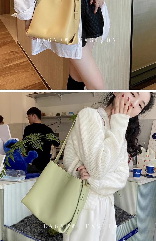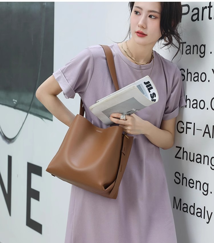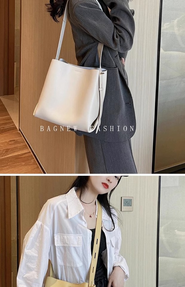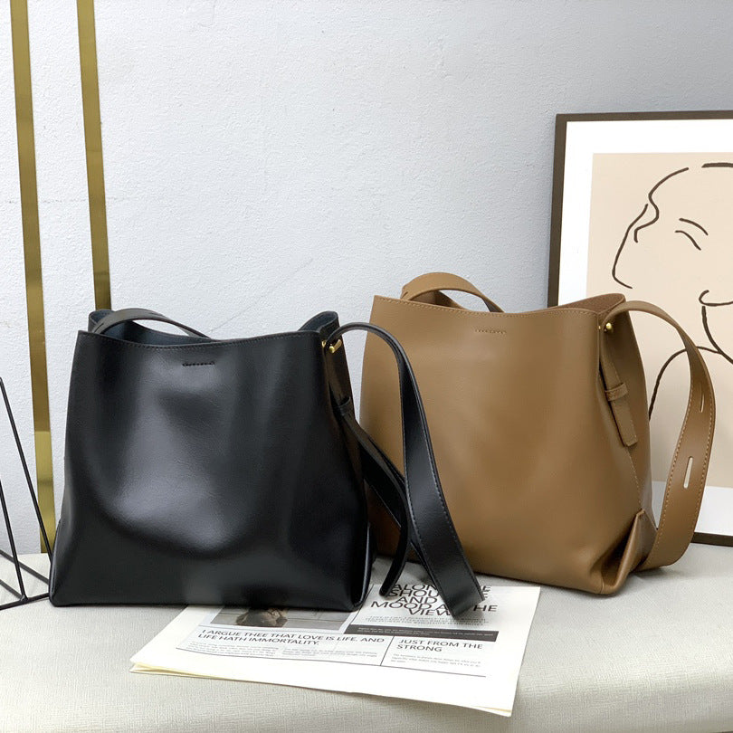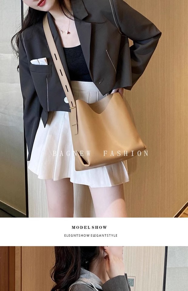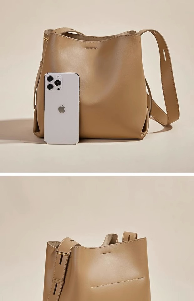 真皮水桶包女2023新款小众设计通勤女包单肩斜跨包时尚百搭托特包