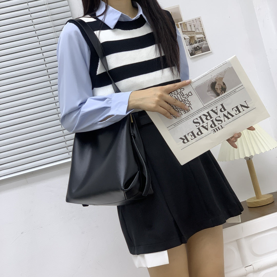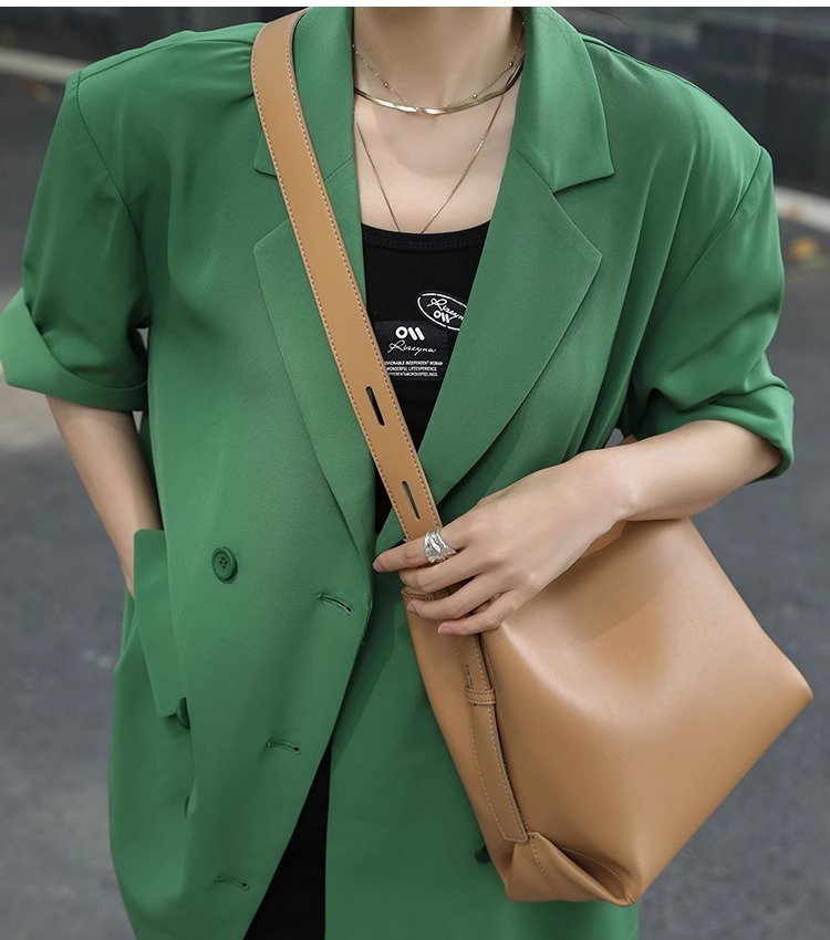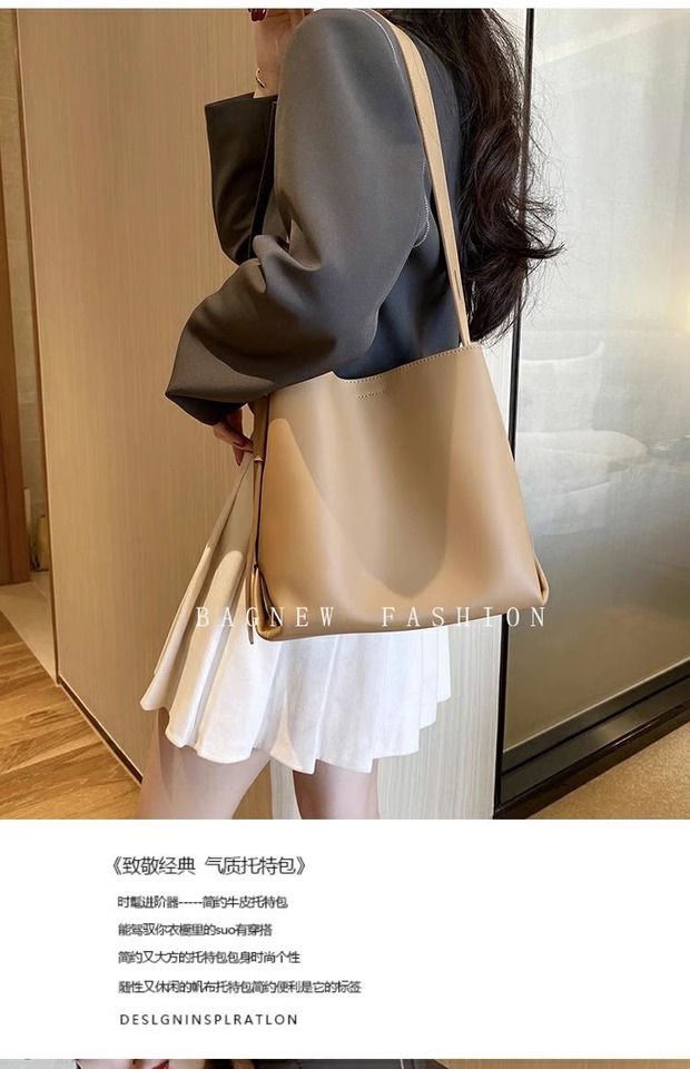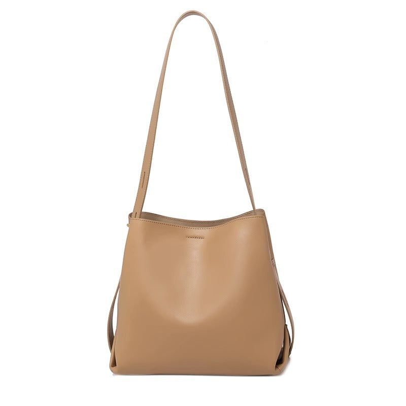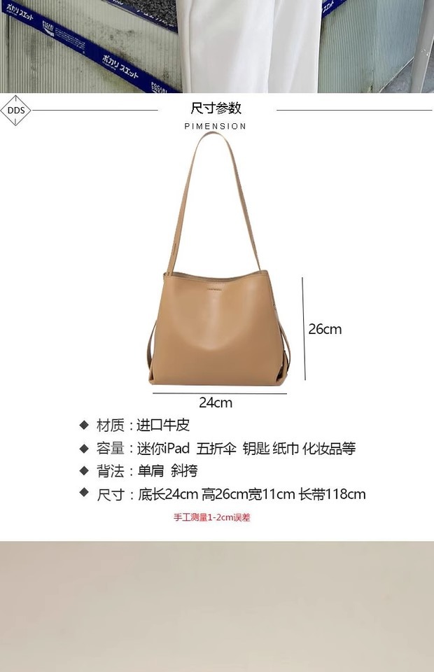 真皮水桶包女2023新款小众设计通勤女包单肩斜跨包时尚百搭托特包