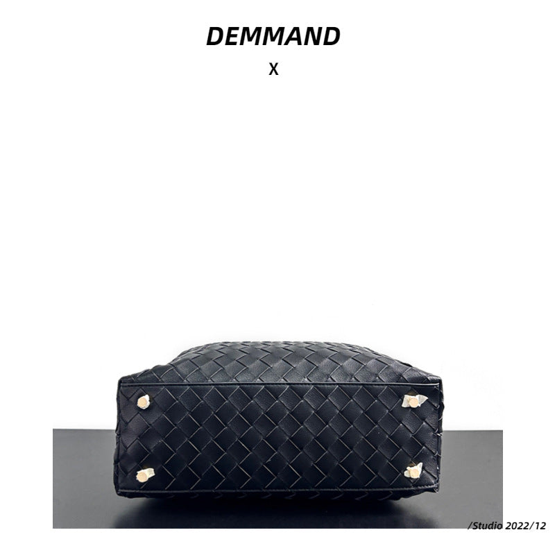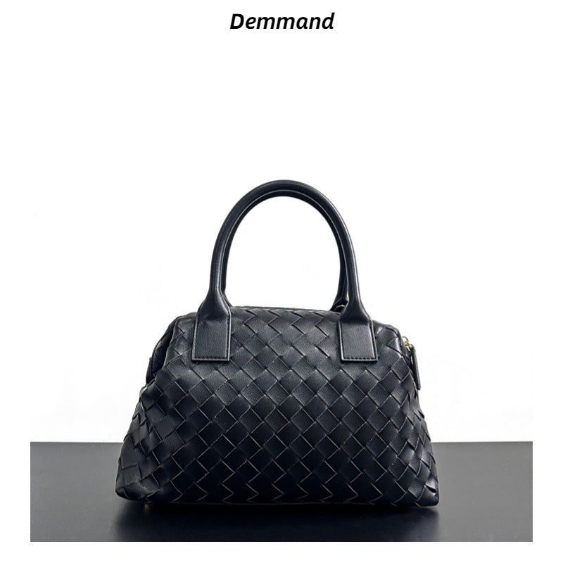 真皮编织女士手提包2023新款奢品时尚简约枕头包手提单肩斜挎女包
