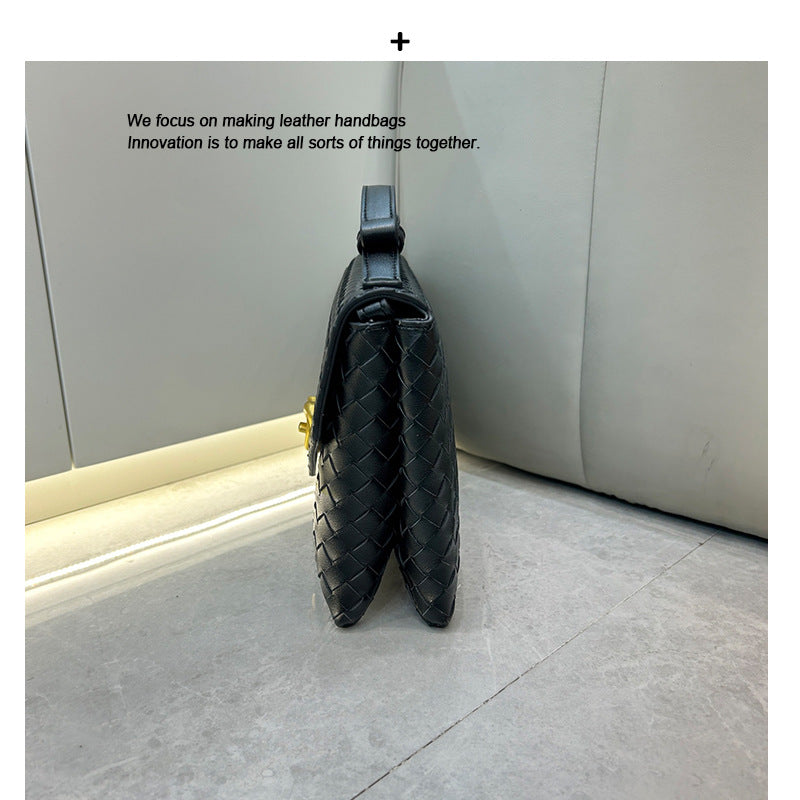 真皮编织小方盒女包2025春季新款时尚百搭锁扣大容量手提斜跨包女