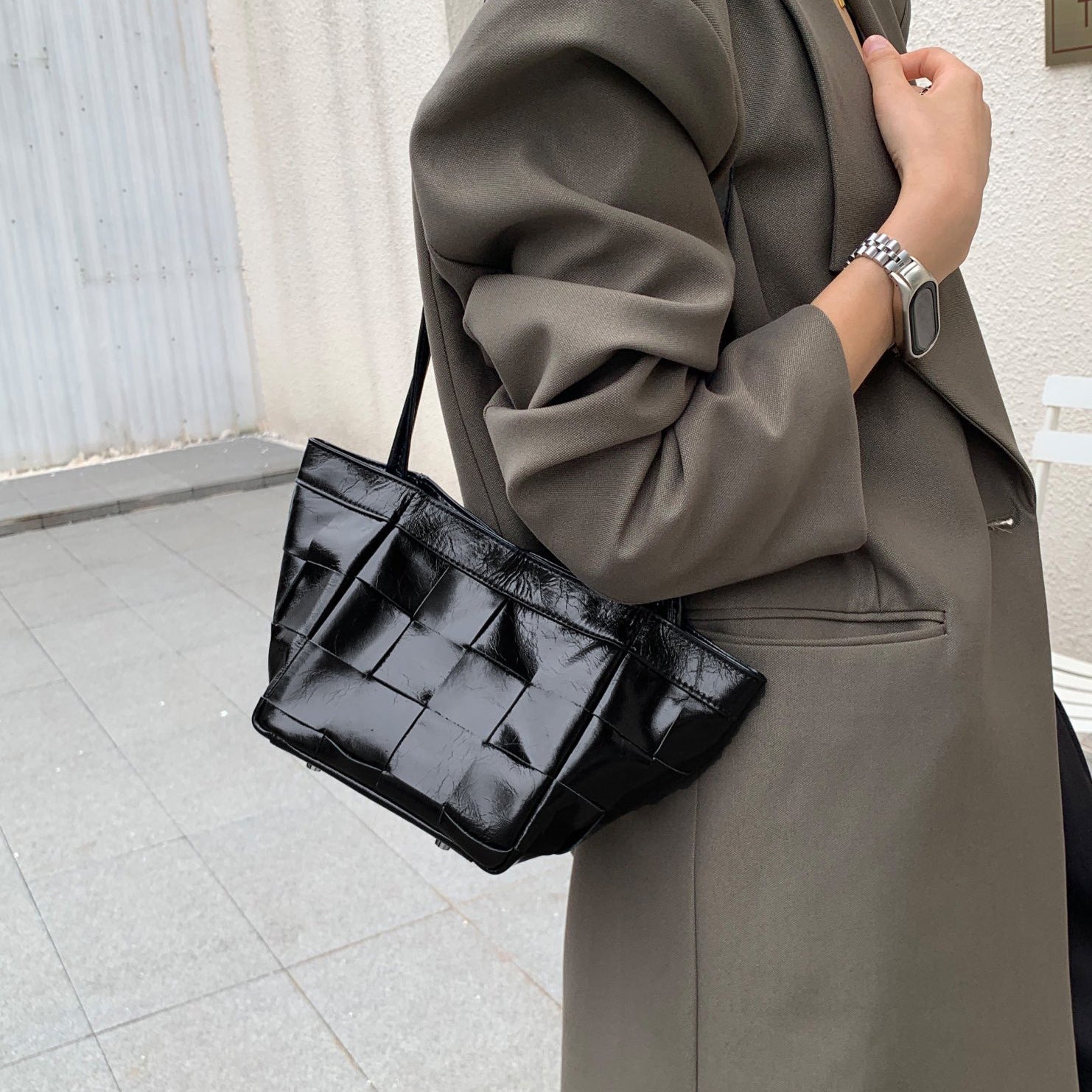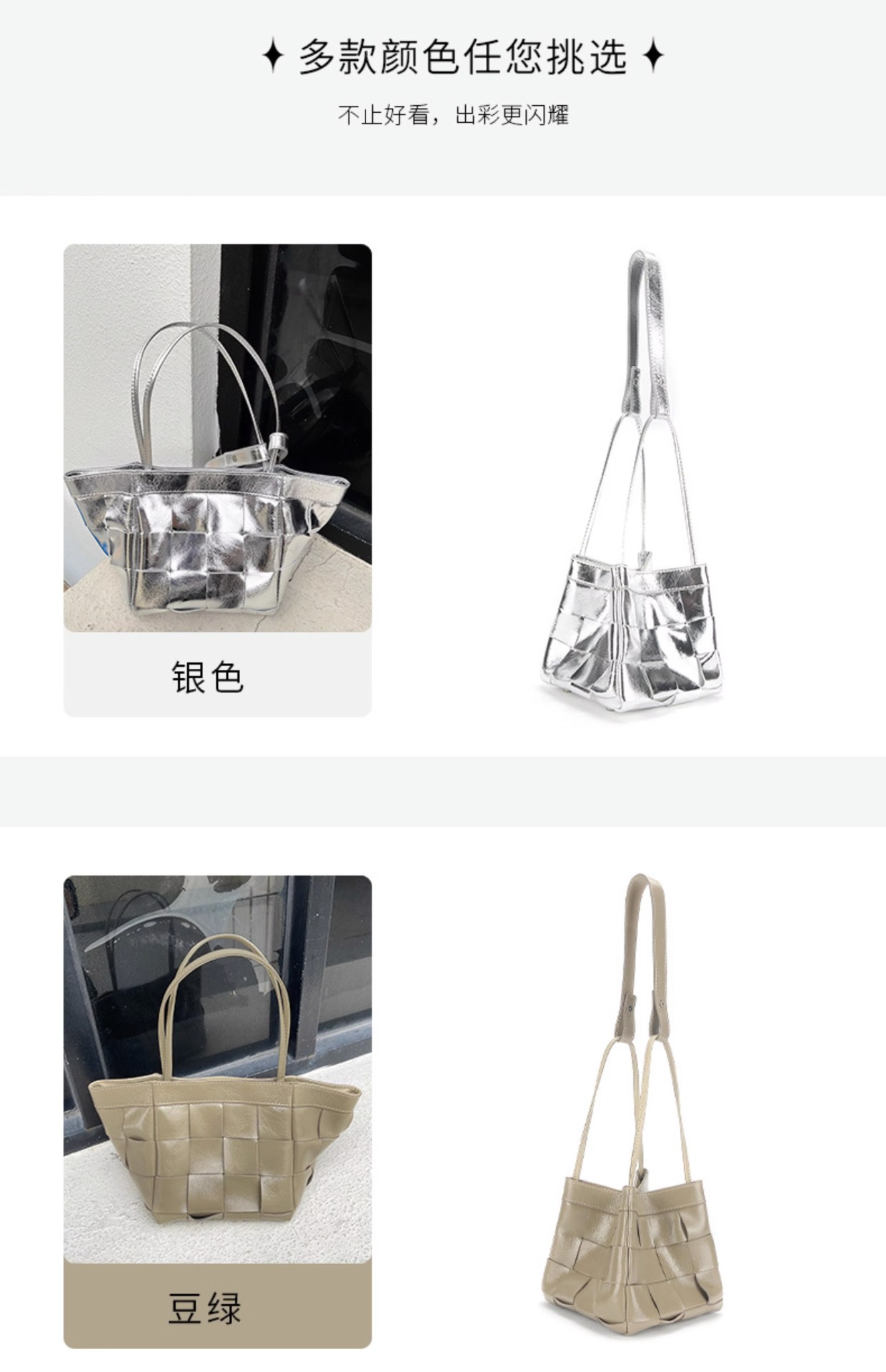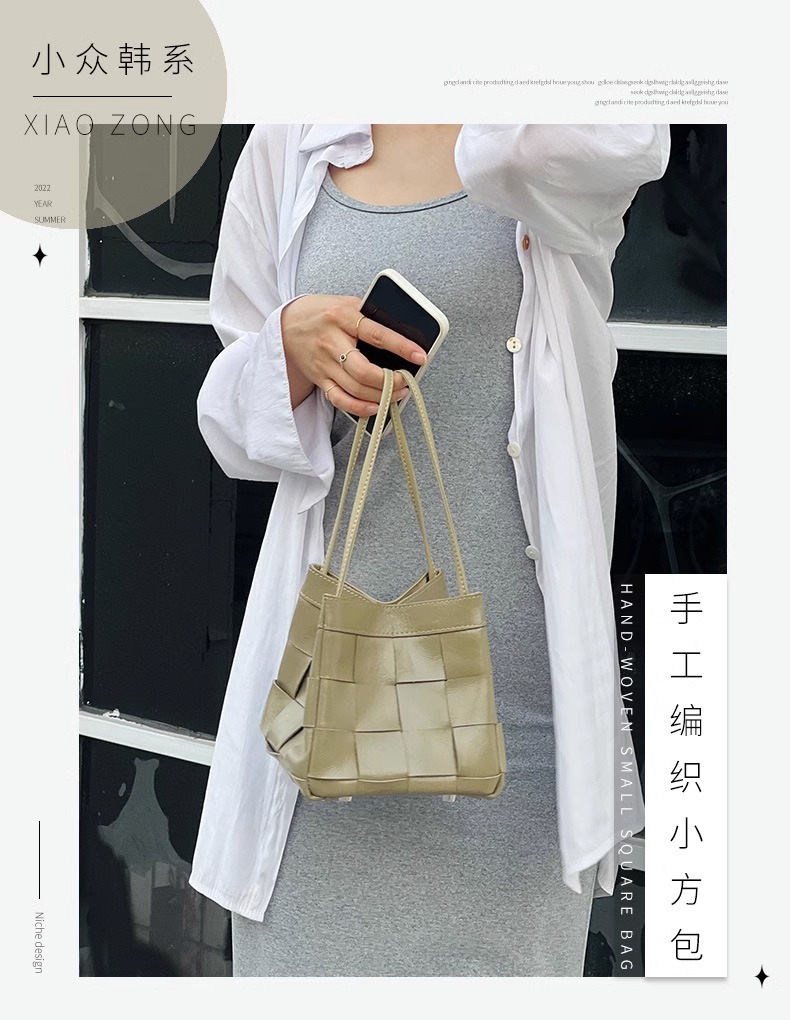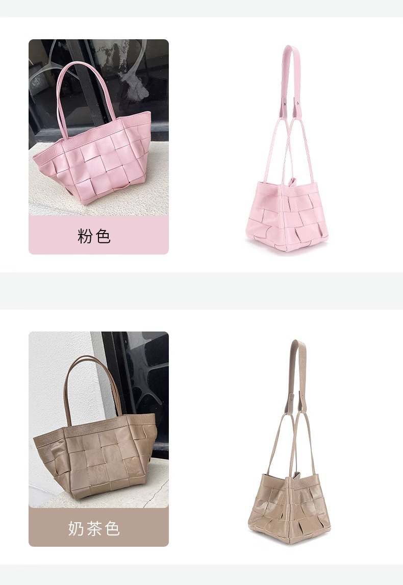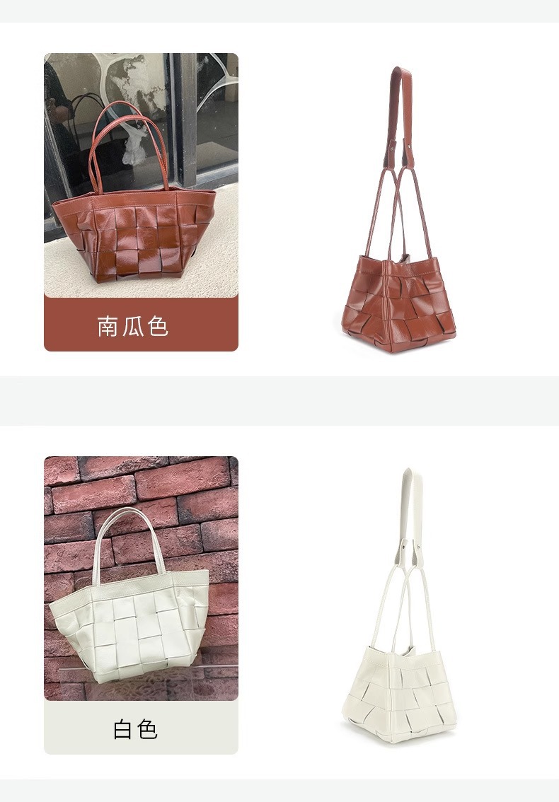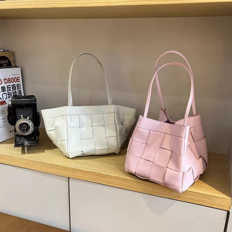 真皮编织菜篮子包女简约水桶包高级感手提翅膀包腋下小方单肩包
