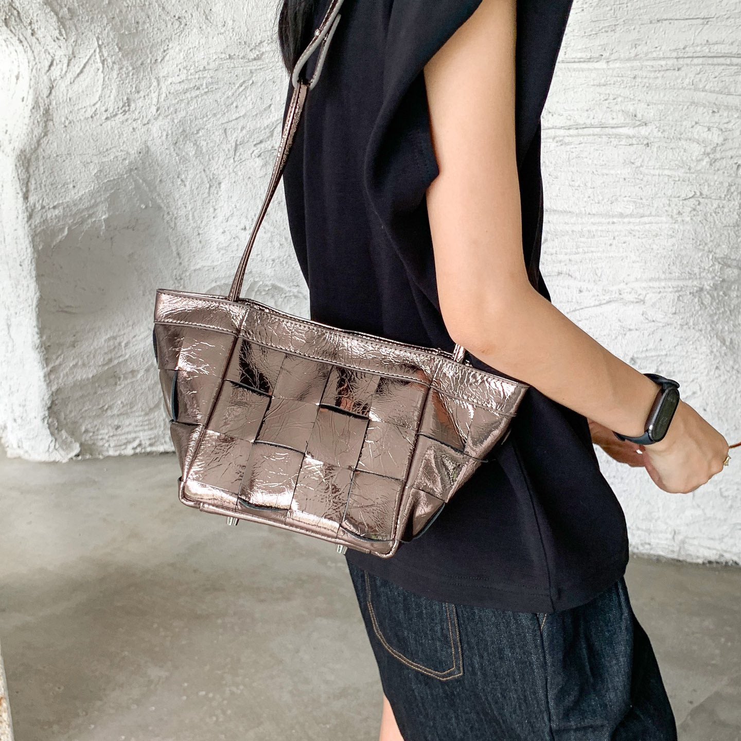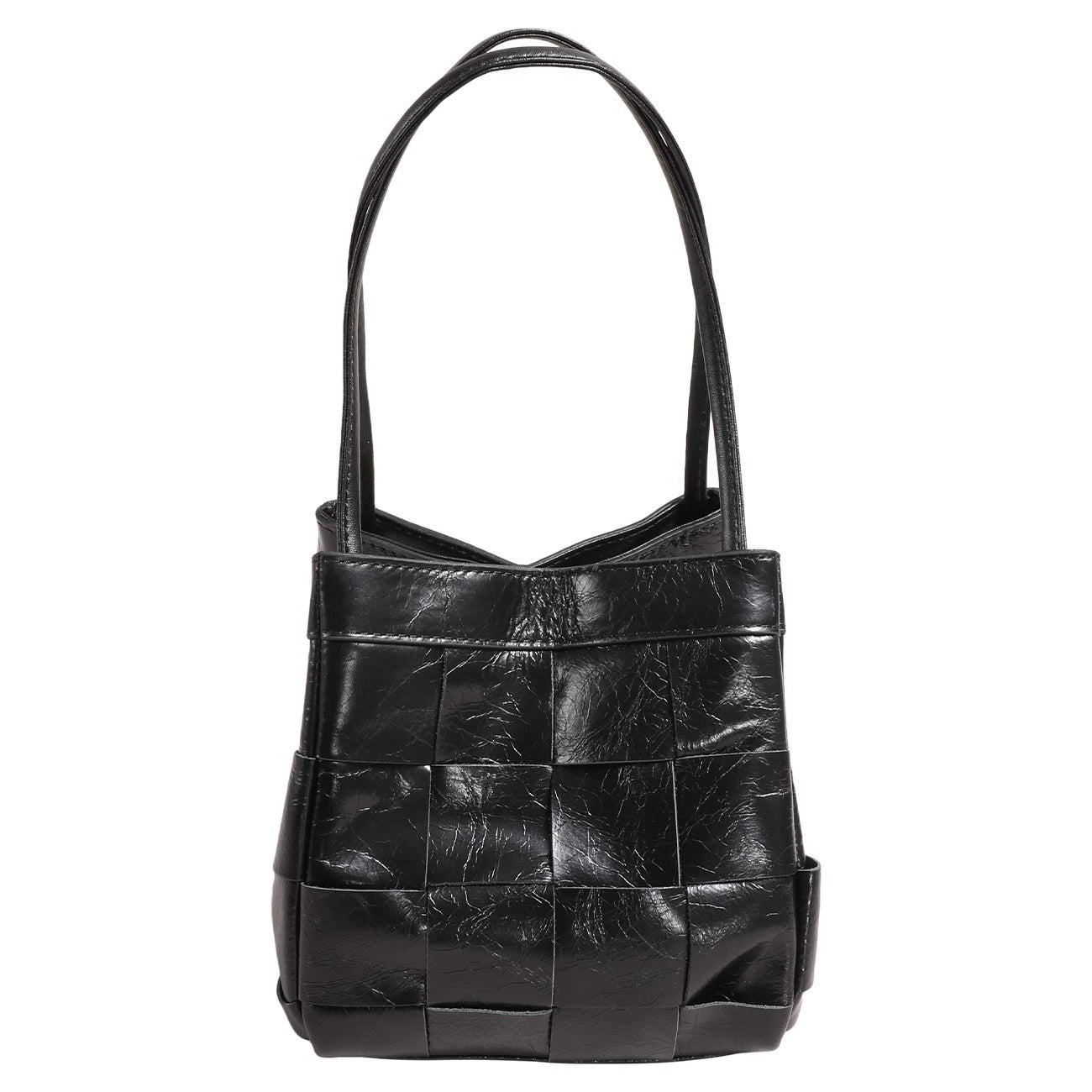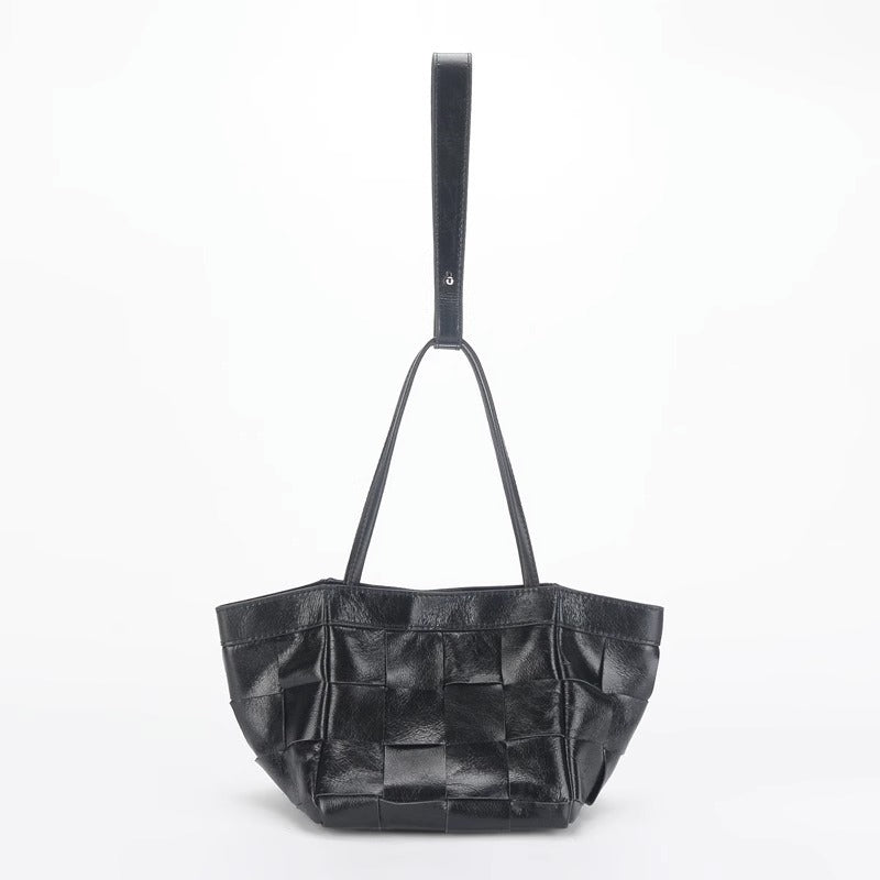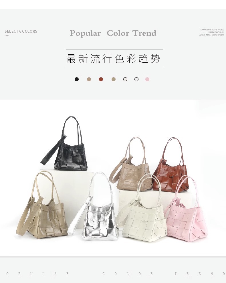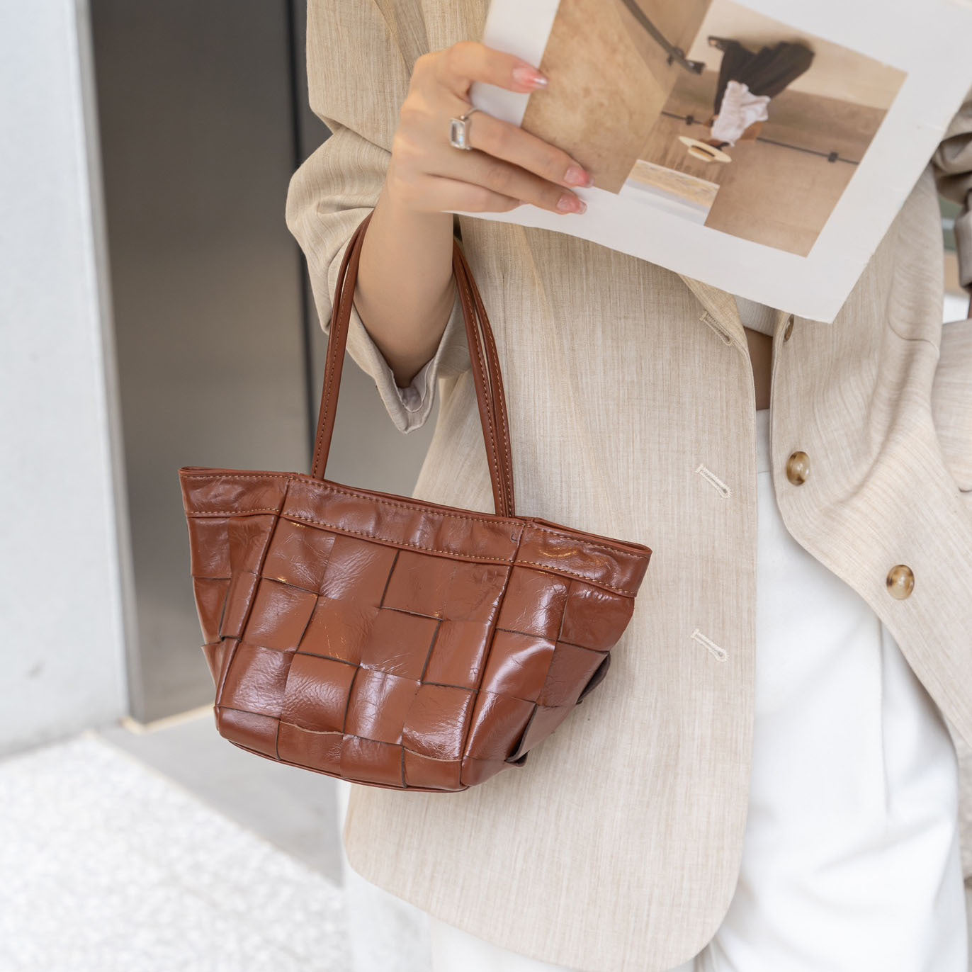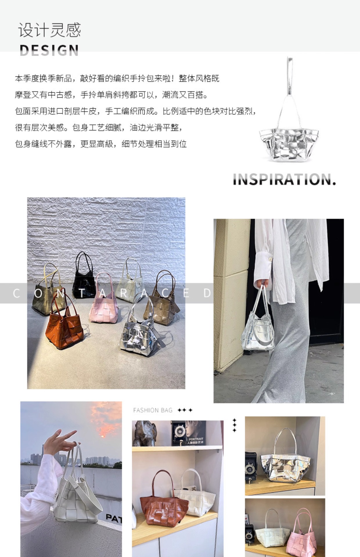 真皮编织菜篮子包女简约水桶包高级感手提翅膀包腋下小方单肩包