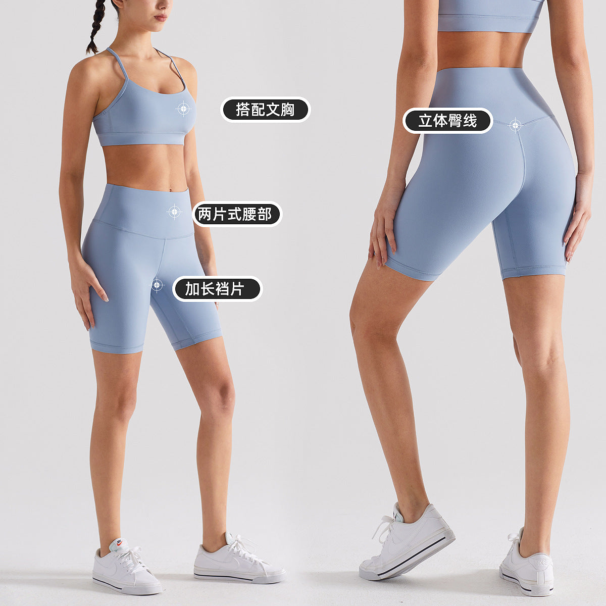 磨毛裸感lulu瑜伽短裤女高腰户外骑行健身裤短裤五分运动紧身裤