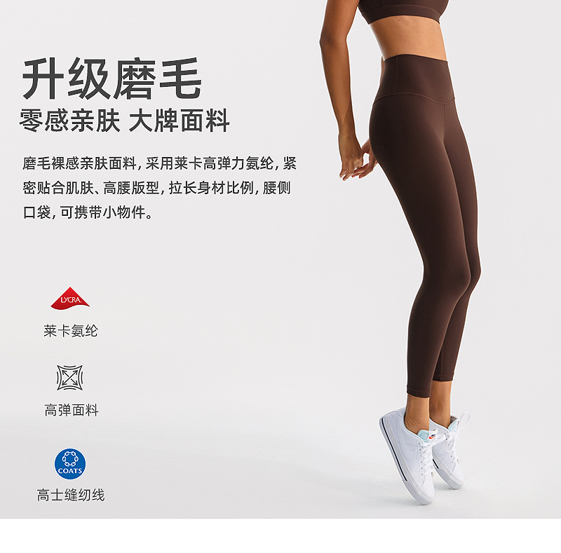 磨毛高腰lulu瑜伽裤女收腹提臀裸感健身裤透气弹力运动紧身裤24”
