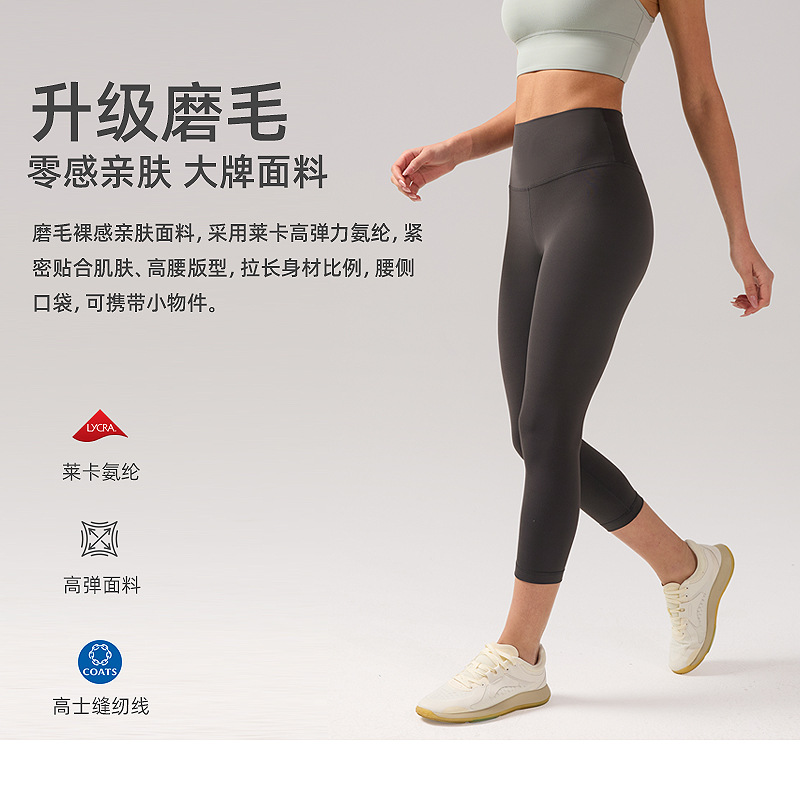 磨毛lulu瑜伽裤女高腰提臀莱卡弹力健身裤裸感八分运动紧身裤21"