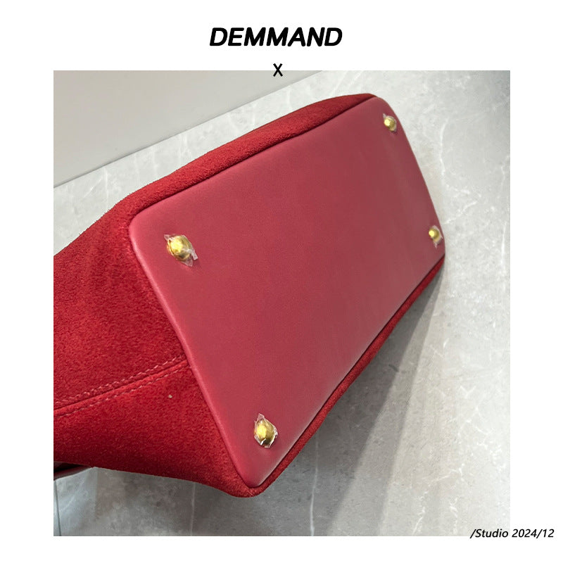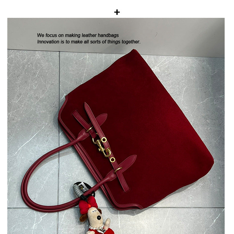 秋冬头层牛皮磨砂鹿皮托特包真皮大容量通勤单肩手提包女高级腋下